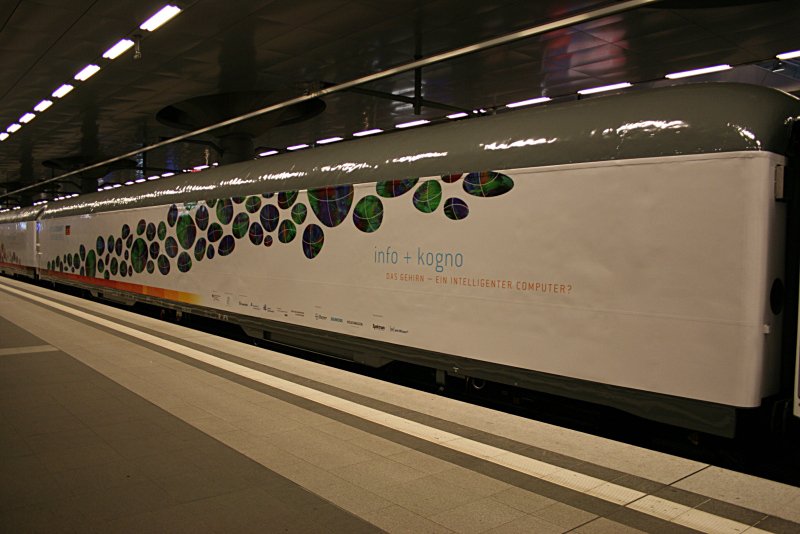 Kann das Gehirn für zukünftige Computergenerationen als Vorbild dienen? Dieser Frage wird in Wagen 4 (D-DB 50 80 92-33 302-2 D 997.3) unter dem Motto "info + kogno" nachgegangen (Berlin Hauptbahnhof, 23.04.2009). Frank Paukstat