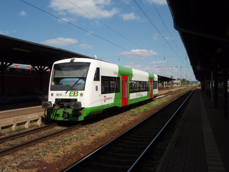 VT 001 der Erfurter Bahn als EB 1 Eichenberg - Erfurt Hbf in Leinefelde. 05.07.2008