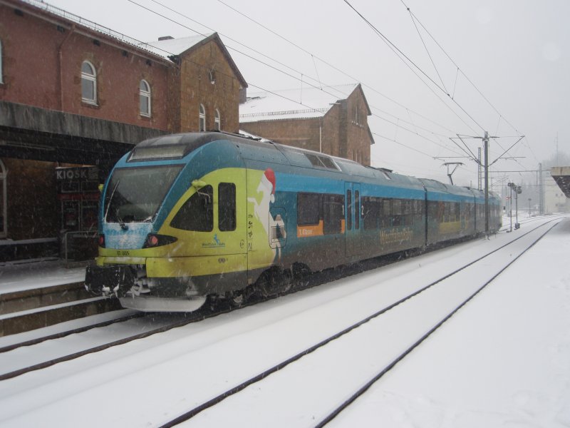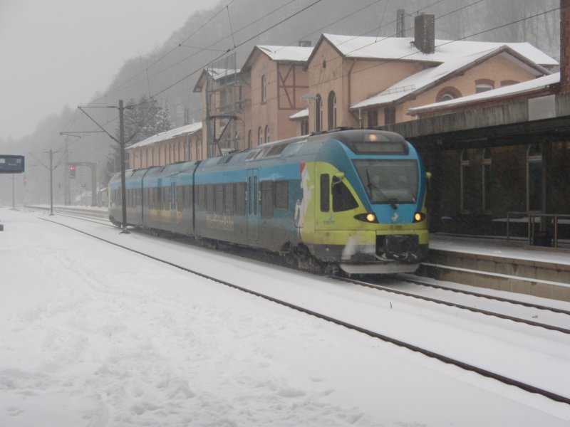 Stark gezoom, mit der Messmethode "Spot" wird der vor dem Tunnel stehende Zug einigermaßen korrekt belichtet.