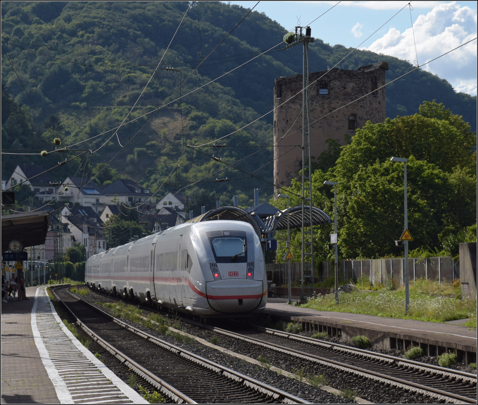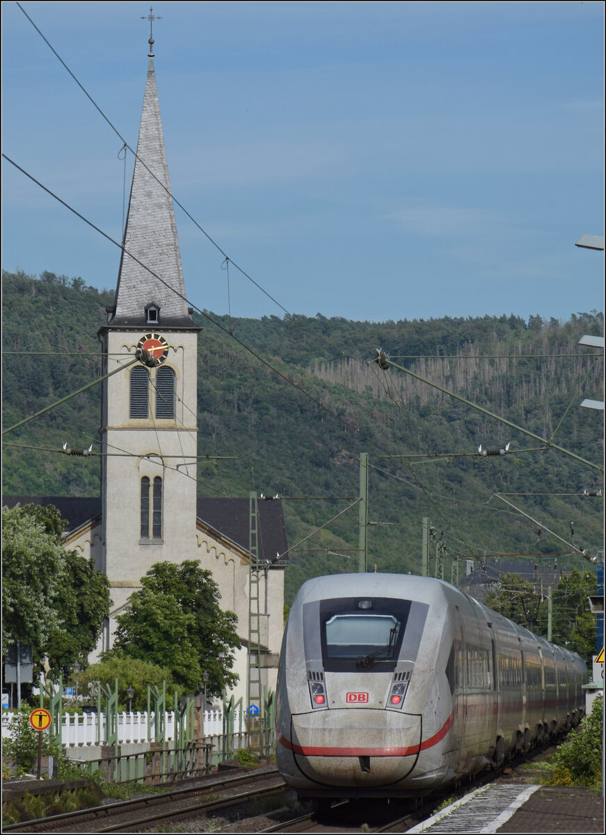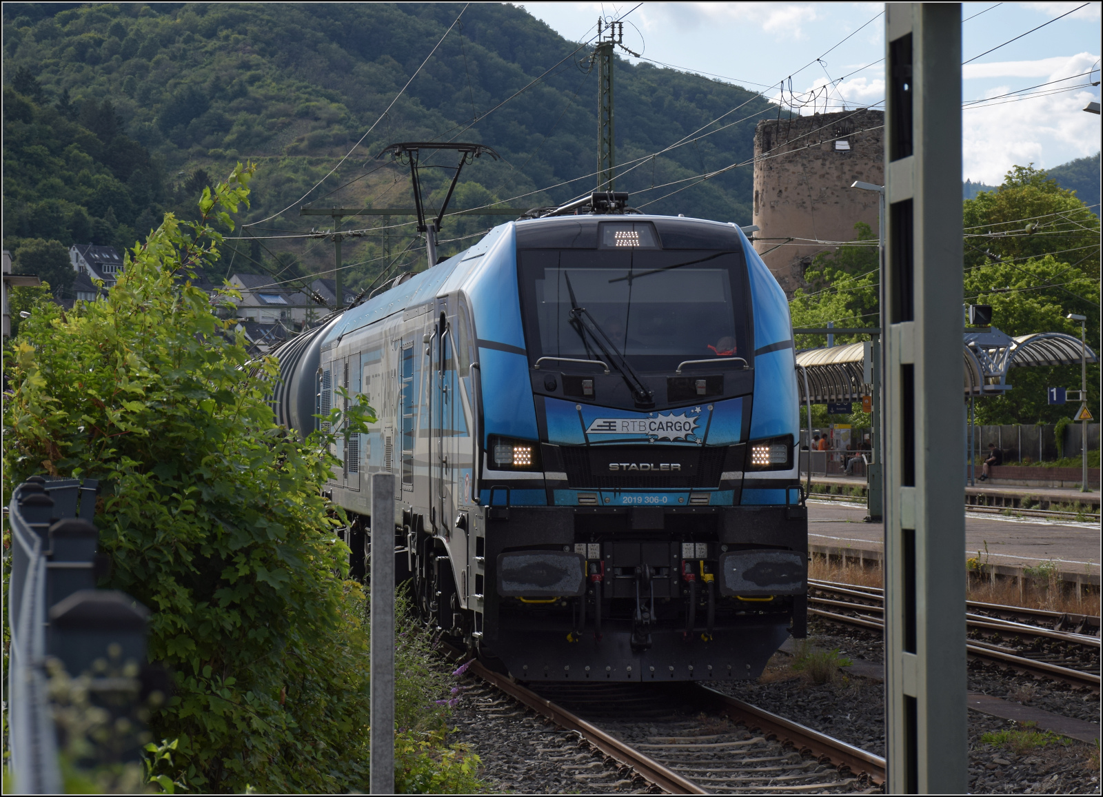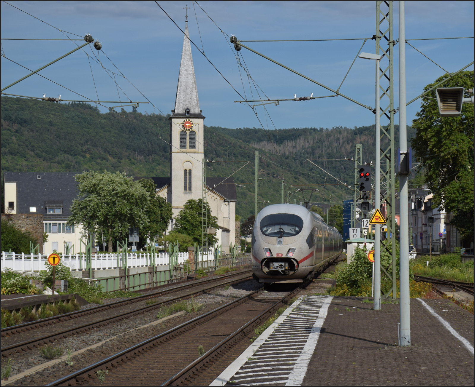 Gleis 3/4 hat als Maskottchen eine Dampflok mit der Achsfolge 1'B. Diese lässt sich als preußische P 31 identifizieren. Sie dürfte wohl der Rheinischen Eisenbahn-Gesellschaft erinnern. Die preußische P 31 war im Umnummerierungsplan für 34 7001-7012 vorgesehen. Tatsächlich wurden nur noch baugleiche mecklenburgische Loks der Gattung IV in 34 7301 bis 7308 und die etwas schwereren in 34 7351-7354 umgezeichnet. Wer auch immer das Schild designte, hatte offenbar einen etwas besseres Verständnis von Eisenbahn. Boppard, Juli 2024. km0