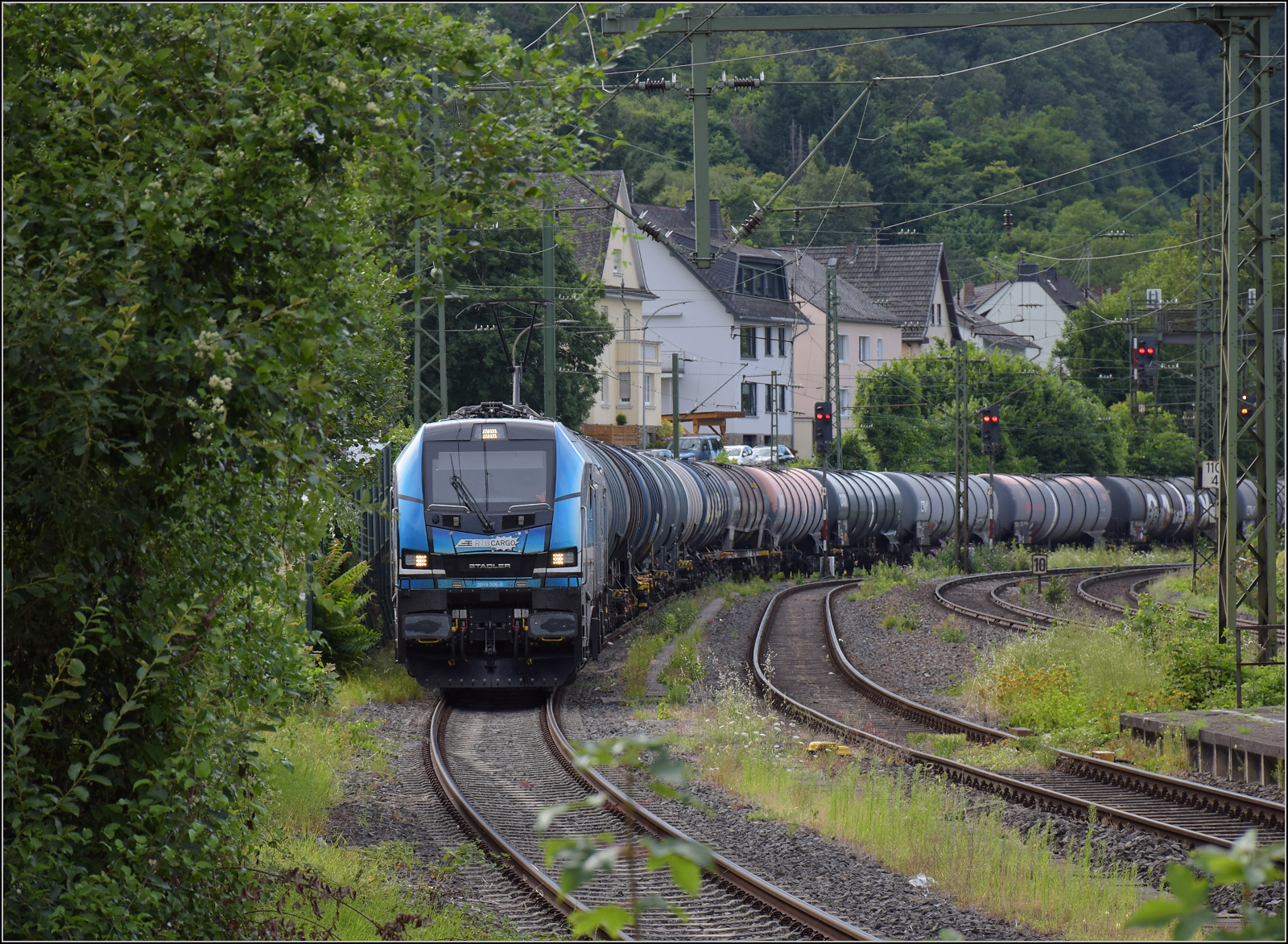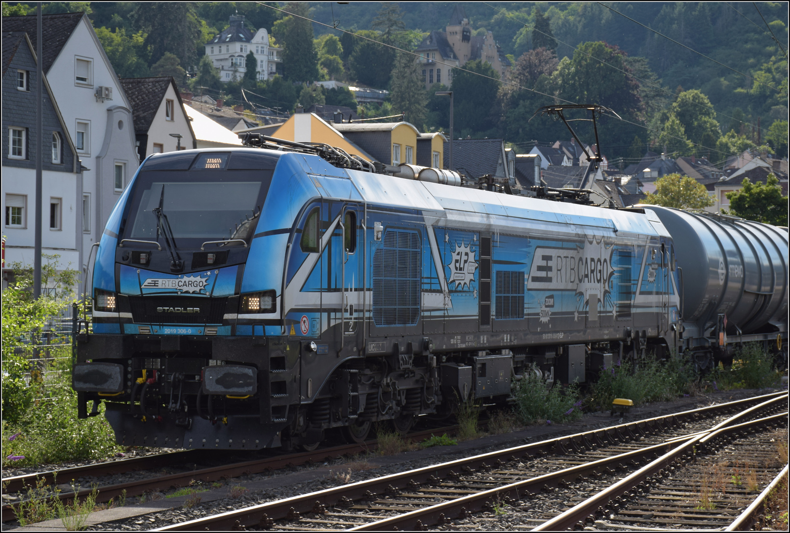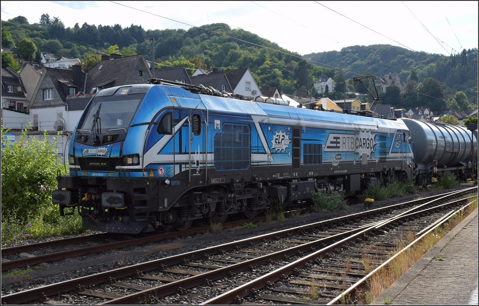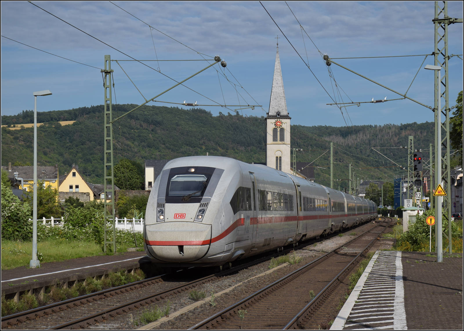 Gleis 3/4 hat als Maskottchen eine Dampflok mit der Achsfolge 1'B. Diese lässt sich als preußische P 31 identifizieren. Sie dürfte wohl der Rheinischen Eisenbahn-Gesellschaft erinnern. Die preußische P 31 war im Umnummerierungsplan für 34 7001-7012 vorgesehen. Tatsächlich wurden nur noch baugleiche mecklenburgische Loks der Gattung IV in 34 7301 bis 7308 und die etwas schwereren in 34 7351-7354 umgezeichnet. Wer auch immer das Schild designte, hatte offenbar einen etwas besseres Verständnis von Eisenbahn. Boppard, Juli 2024. km0