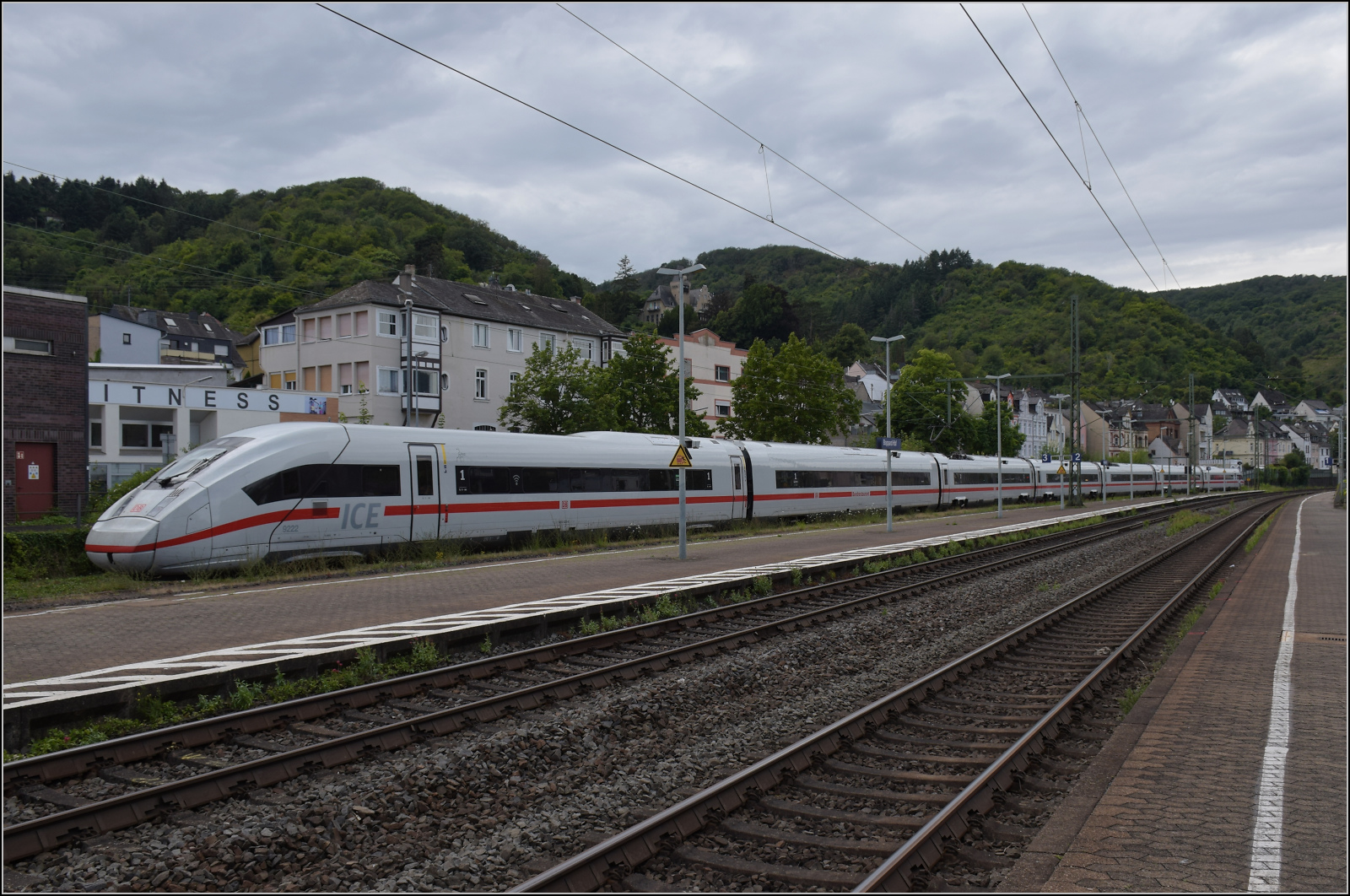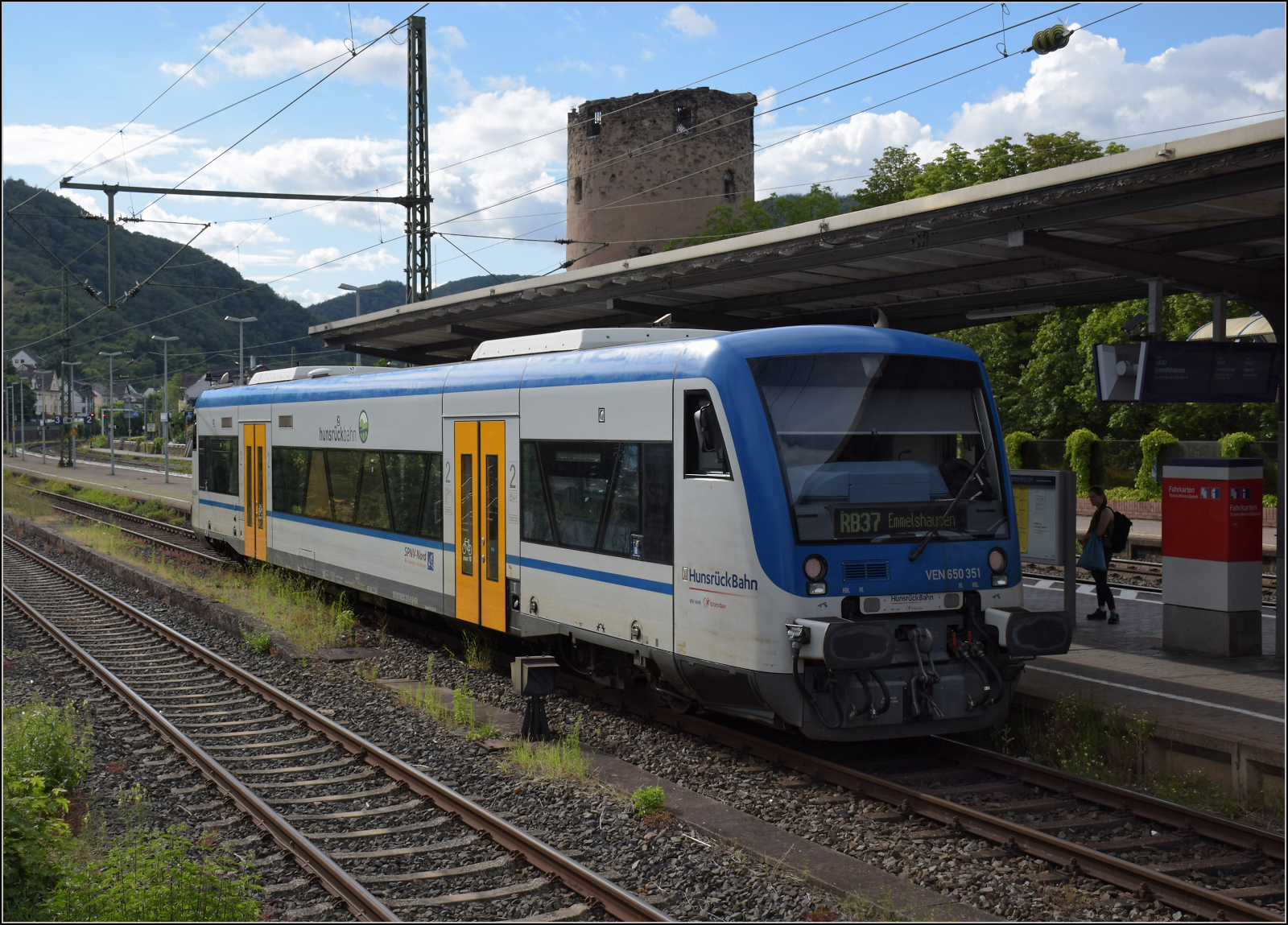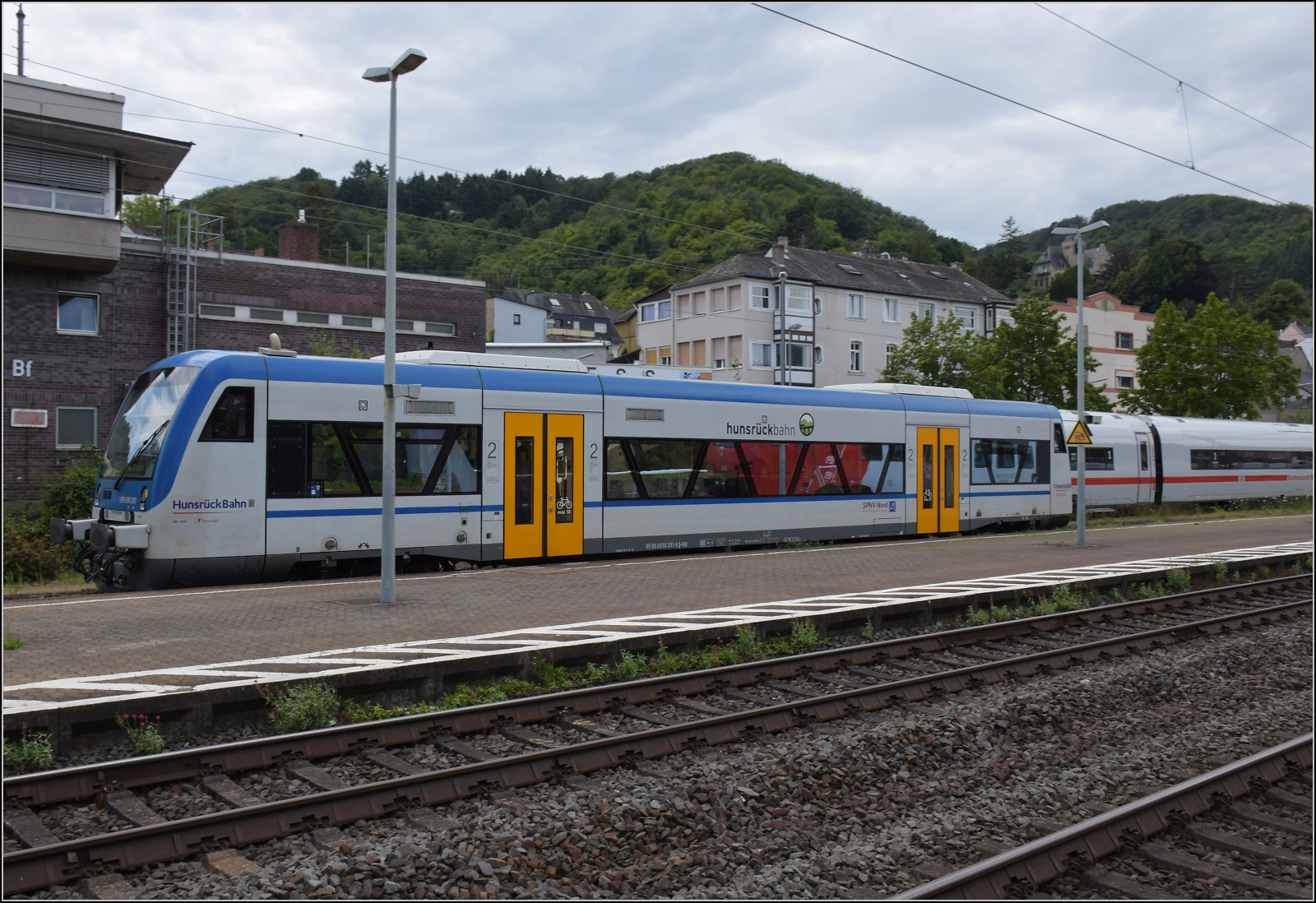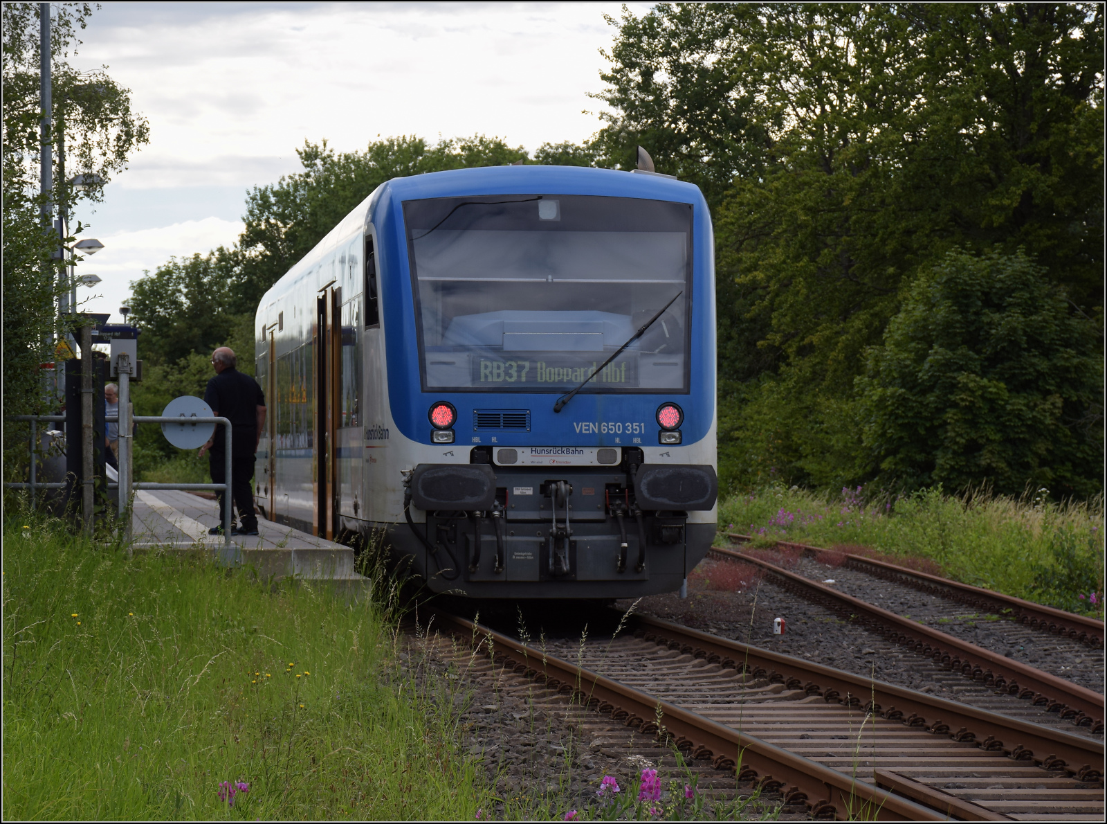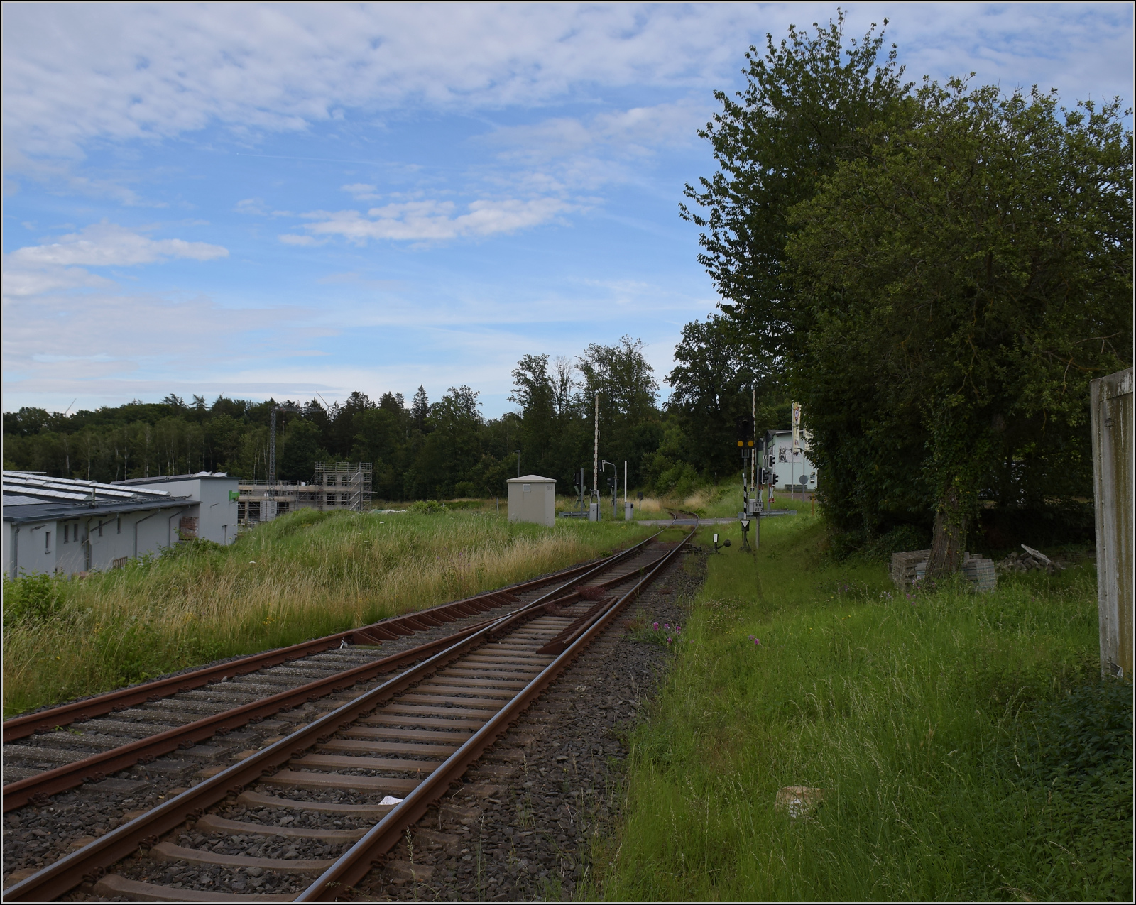 Blick auf die Hunsrückbahn von der heutigen Endstation Emmelshausen. Juli 2024.