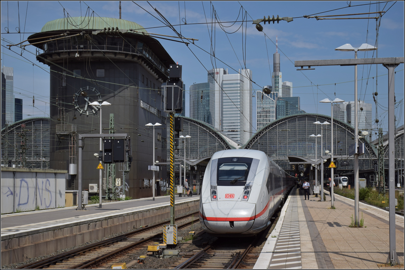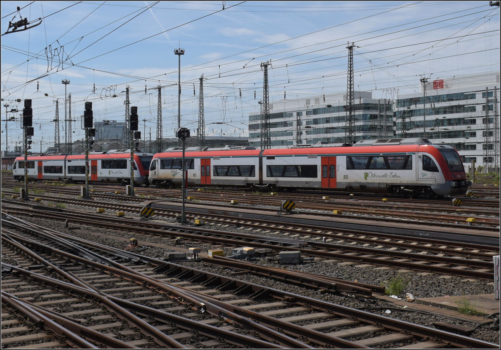 Die Odenwaldbahn mit 615 109 und 615 124 von Vias in Frankfurt. Juli 2024.