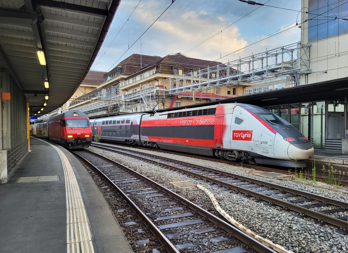 Der TGV Lyria 9264 bestehend aus dem Rame 4726 nach Paris Gare de Lyon verkehrt heute ausnahmsweise in Lausanne von Gleis 1.