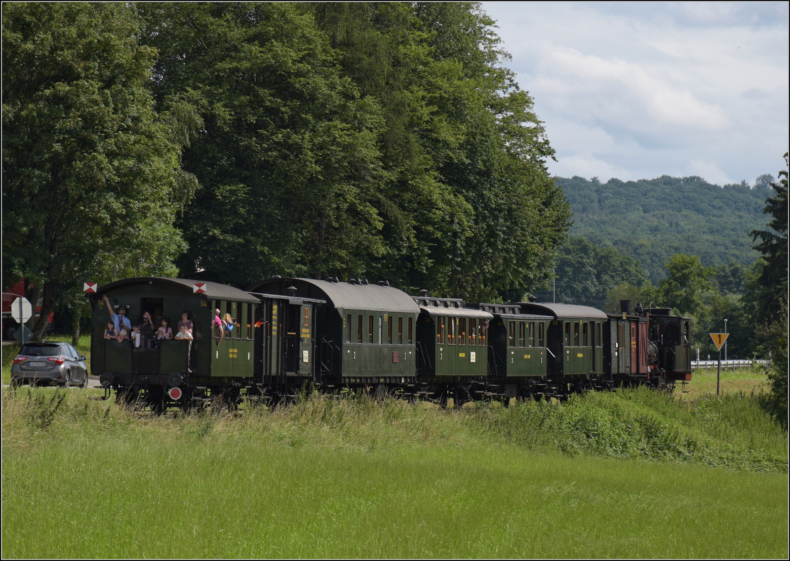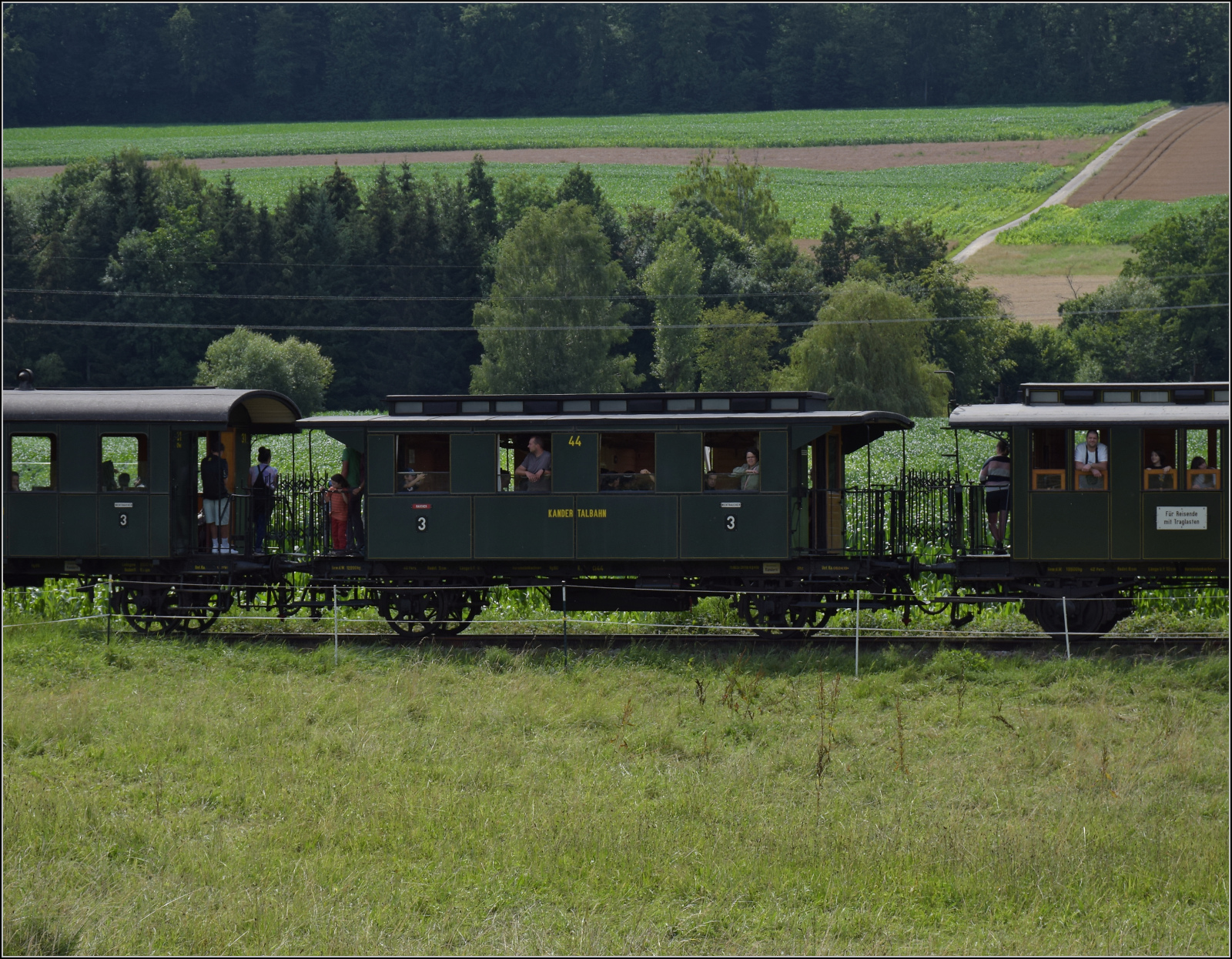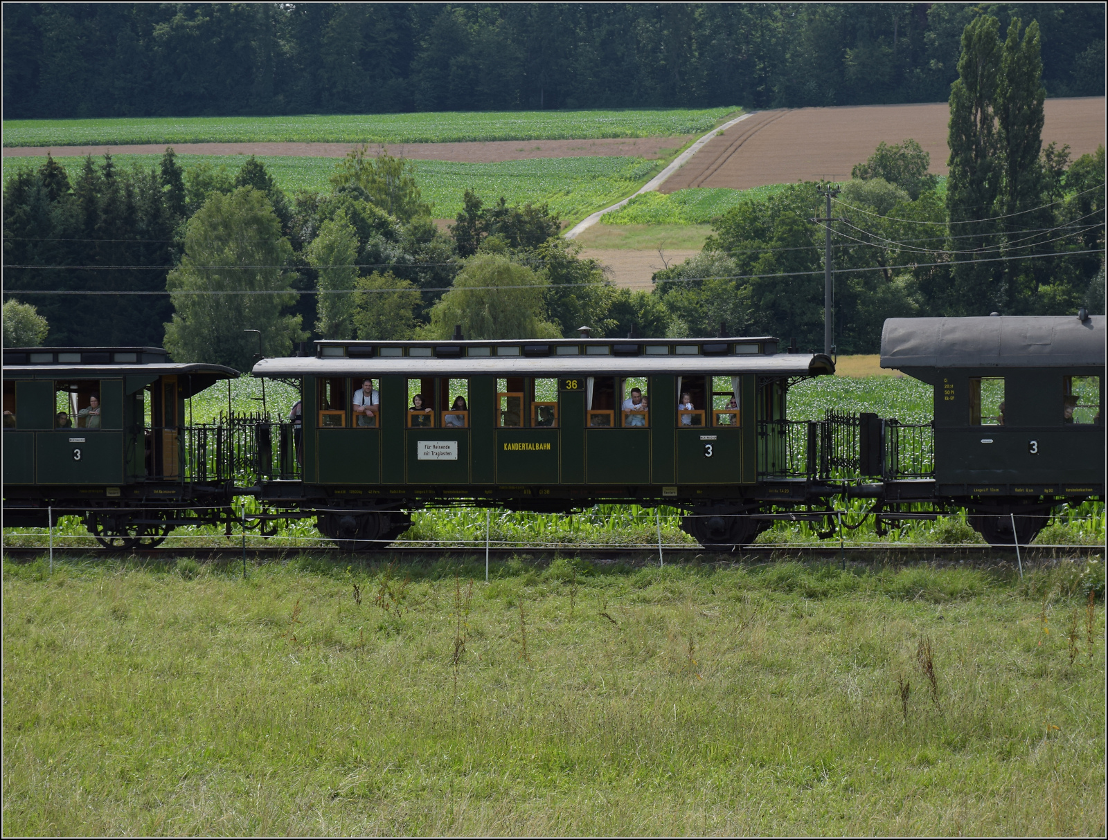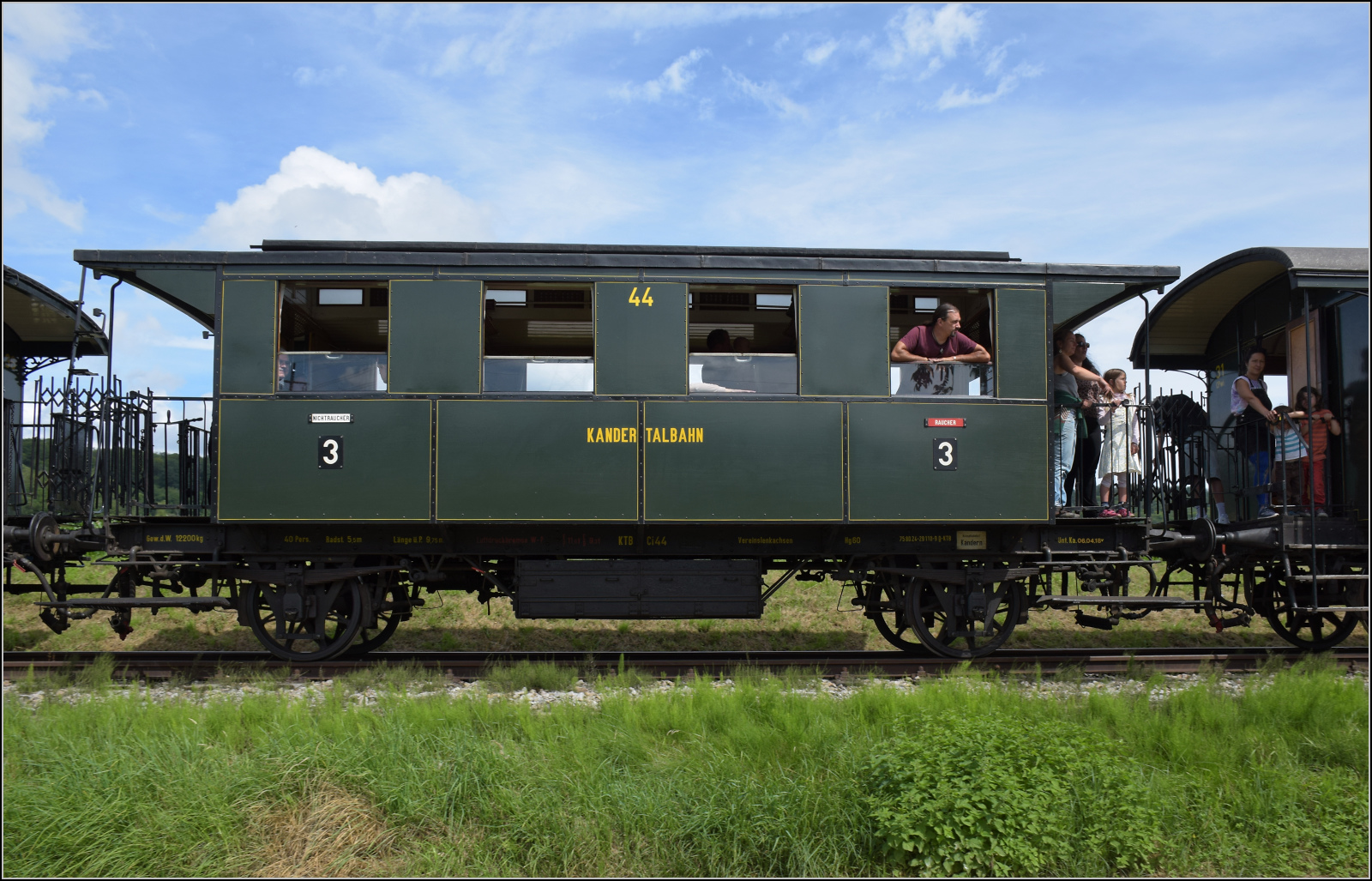 Wagen Ci 44 wurde von der Waggonfabrik Ludwigshafen als Erstausstattung 1894 an die Kaiserstuhlbahn geliefert. Außer den umgebauten Fenstern befindet sich der Wagen noch im Originalzustand. Hammerstein, Mai 2024. km0