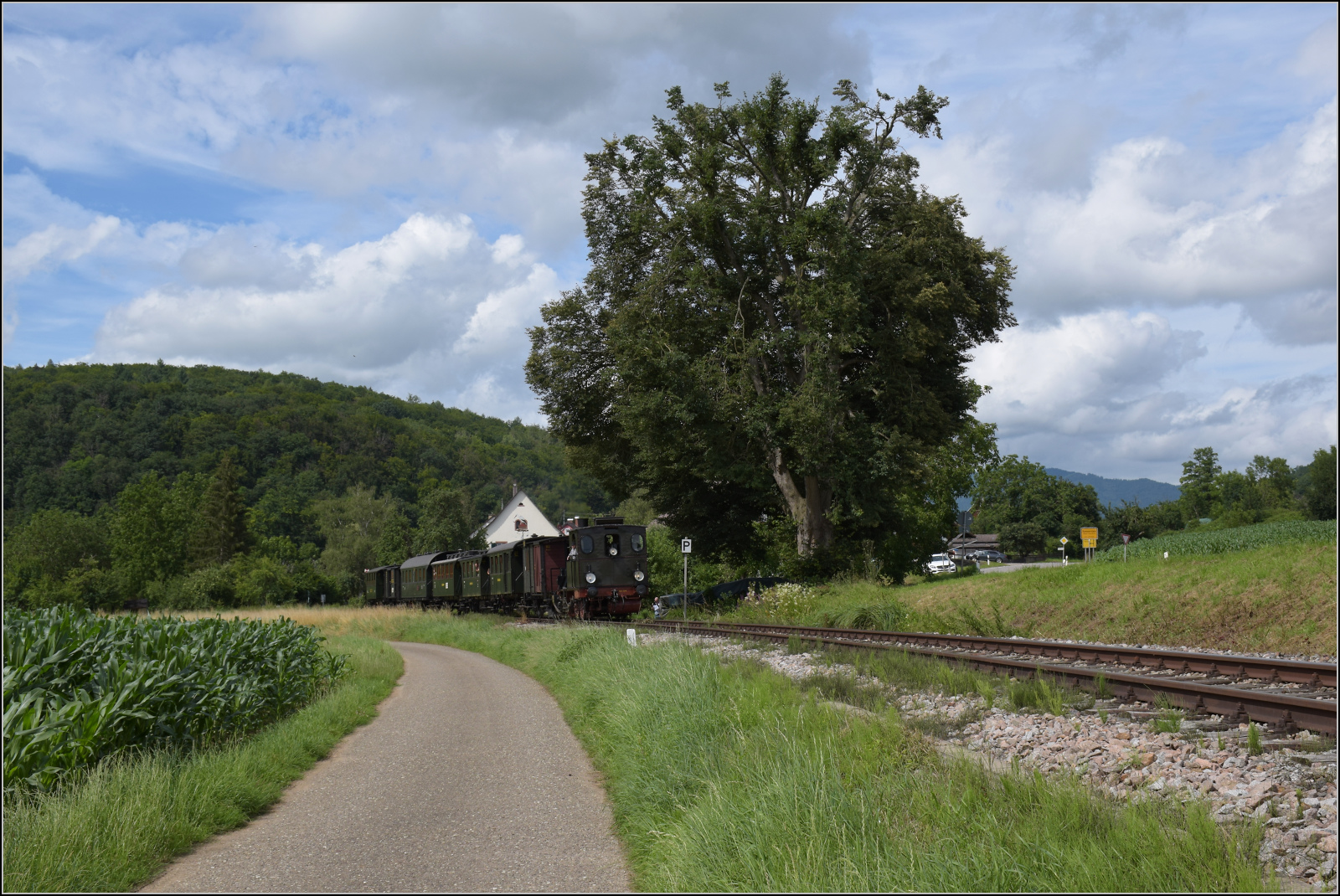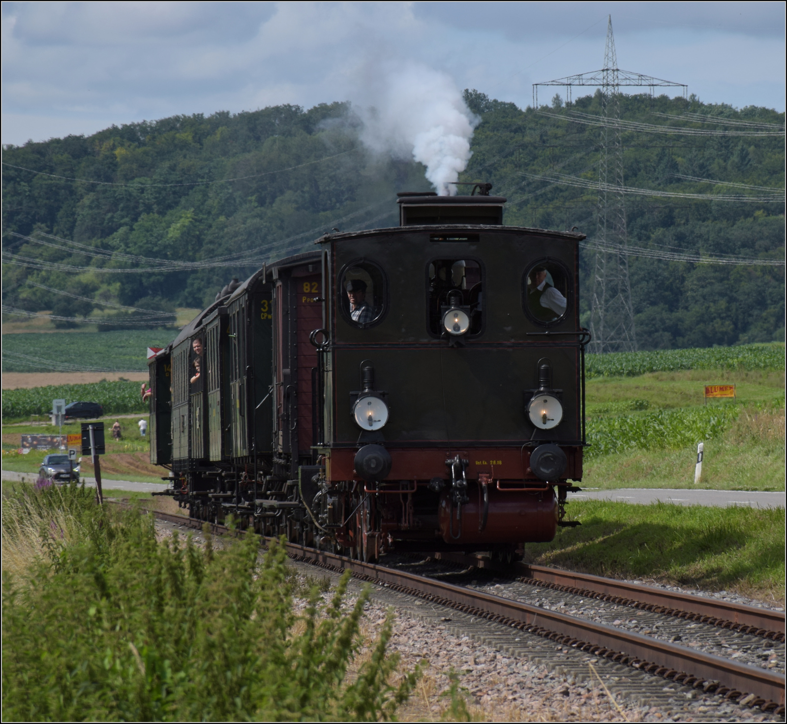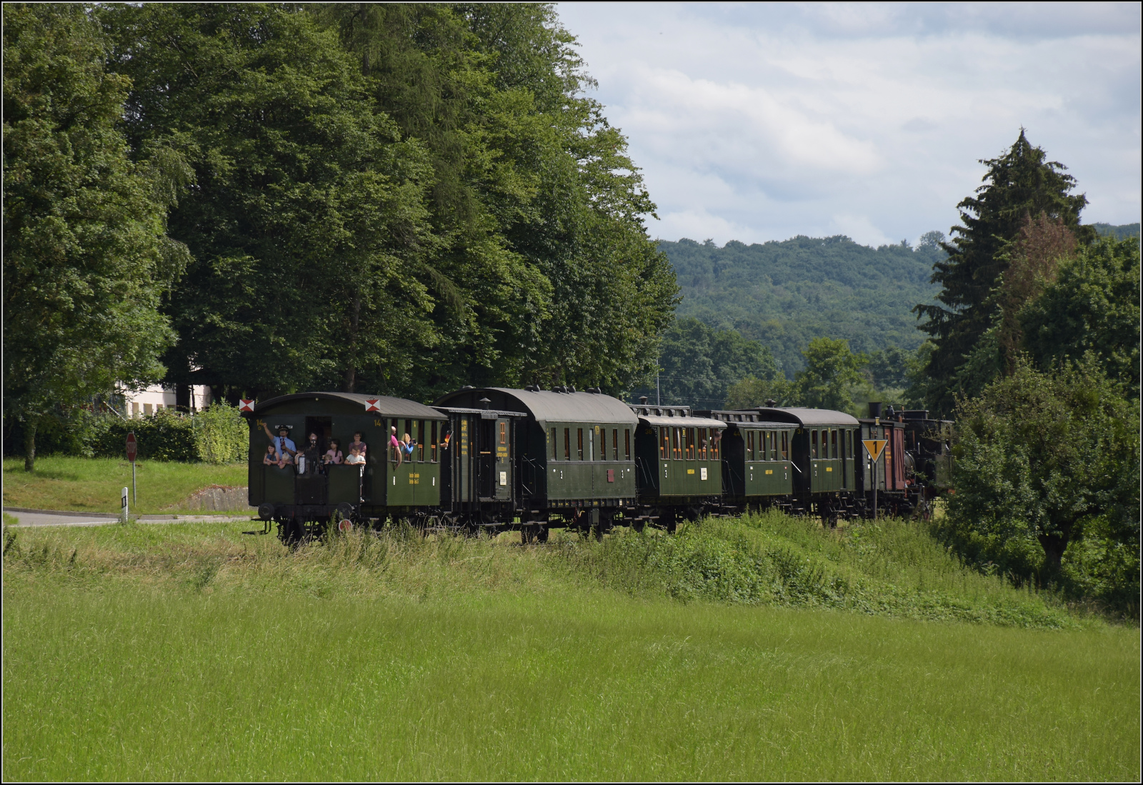 Wagen Ci 44 wurde von der Waggonfabrik Ludwigshafen als Erstausstattung 1894 an die Kaiserstuhlbahn geliefert. Außer den umgebauten Fenstern befindet sich der Wagen noch im Originalzustand. Hammerstein, Mai 2024. km0