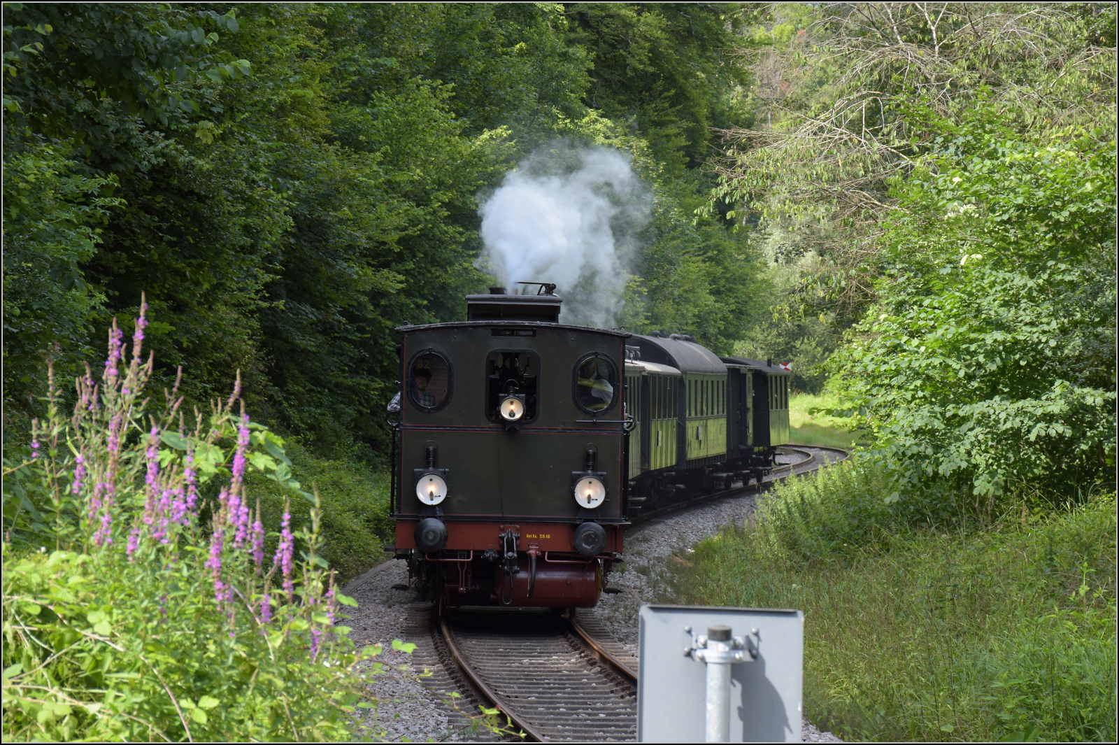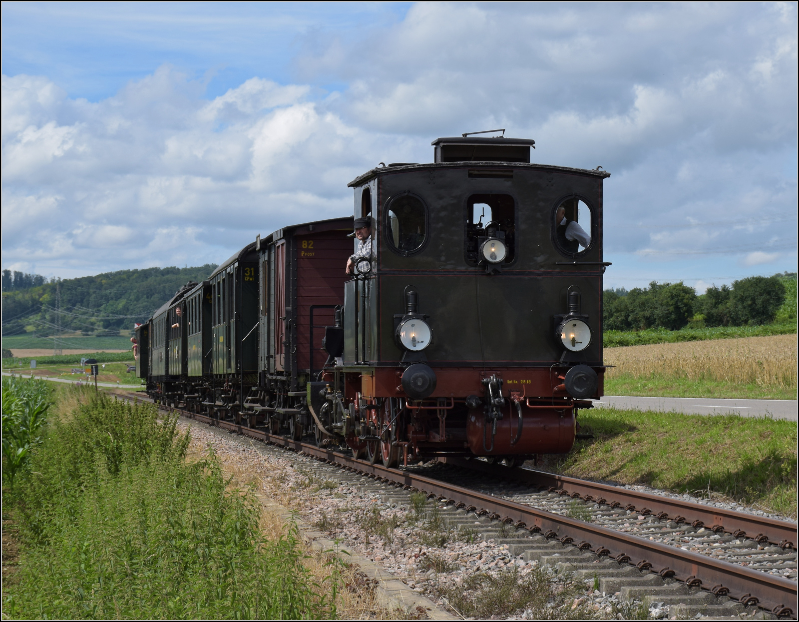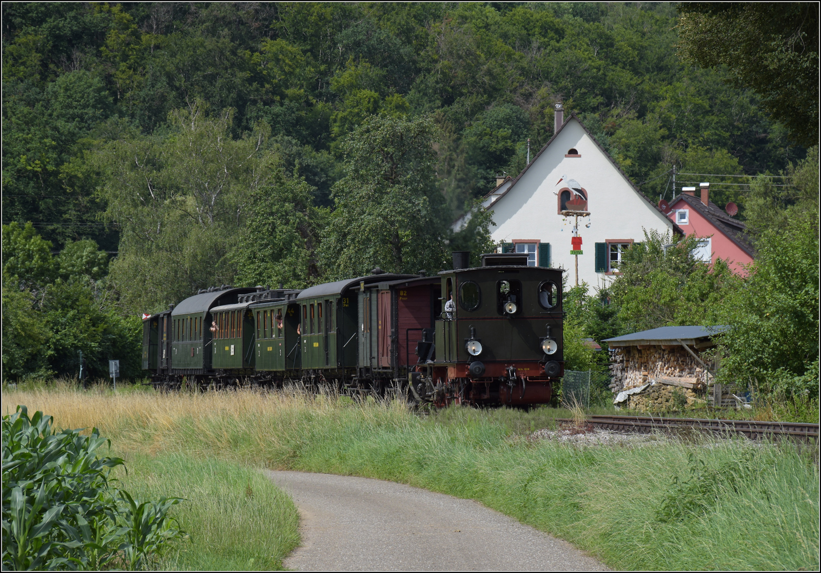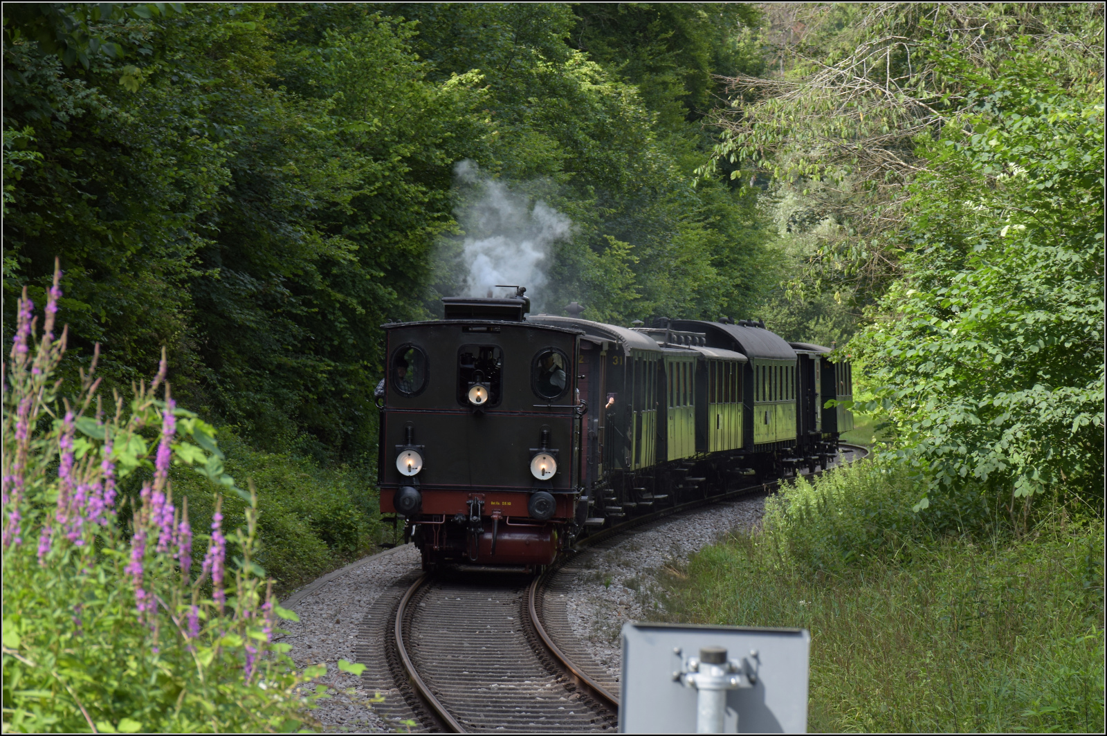 Wagen Ci 44 wurde von der Waggonfabrik Ludwigshafen als Erstausstattung 1894 an die Kaiserstuhlbahn geliefert. Außer den umgebauten Fenstern befindet sich der Wagen noch im Originalzustand. Hammerstein, Mai 2024. km0