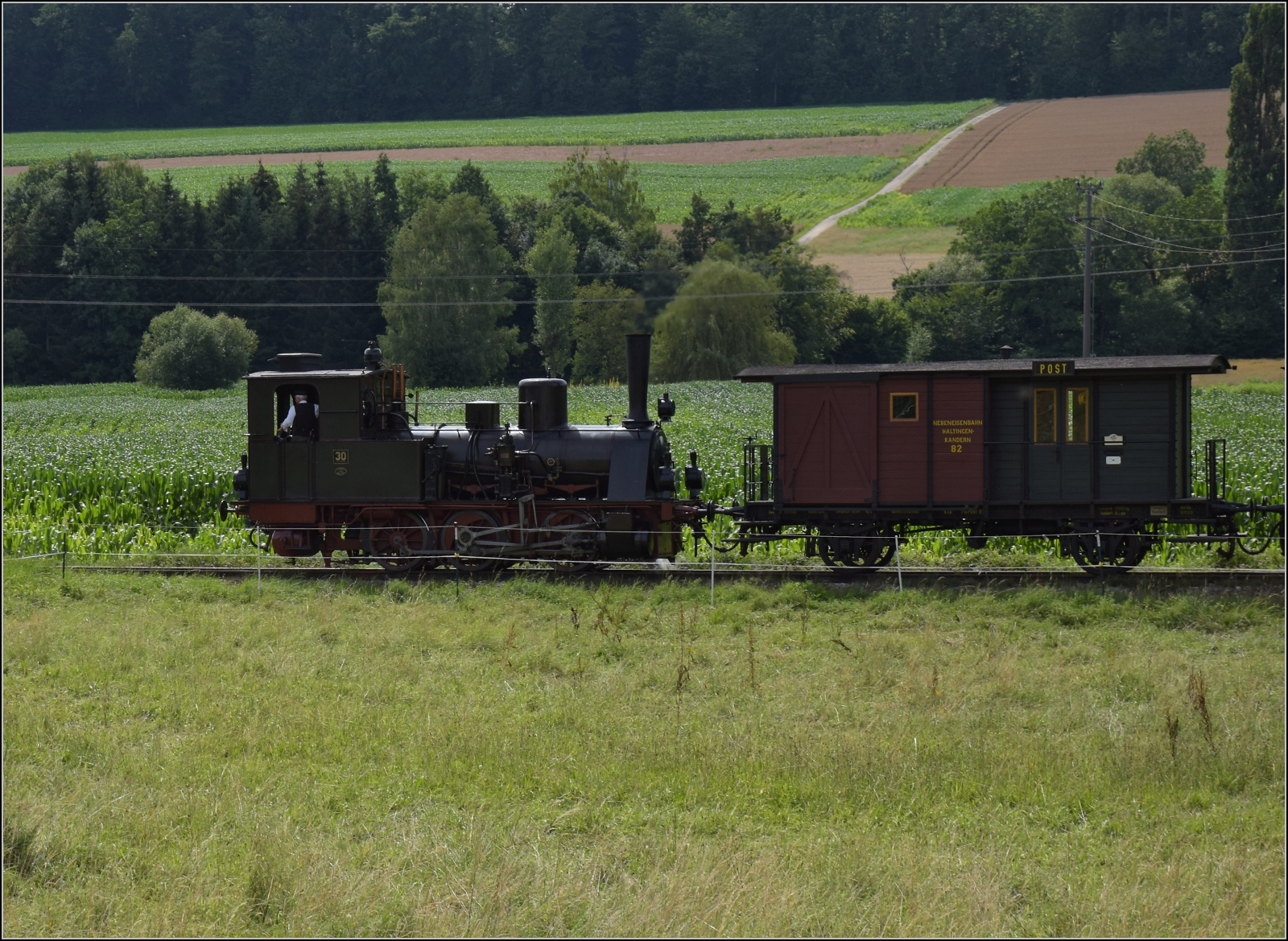 Wagen CPwi 31 ist ein Halbgepäckwagen und kommt von der Wohlen-Meisterschwanden-Bahn in der Schweiz. Er wurde 1916 von der SIG in Neuhausen zur Erstausstattung der Bahn geliefert und bekam die Bezeichnung CF 31. Wollbach, Mai 2024.