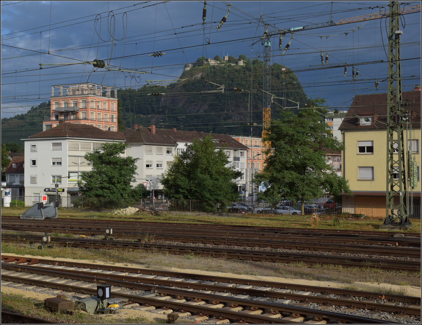Einfahrt Bahnhof Singen ohne Zug. August 2024.