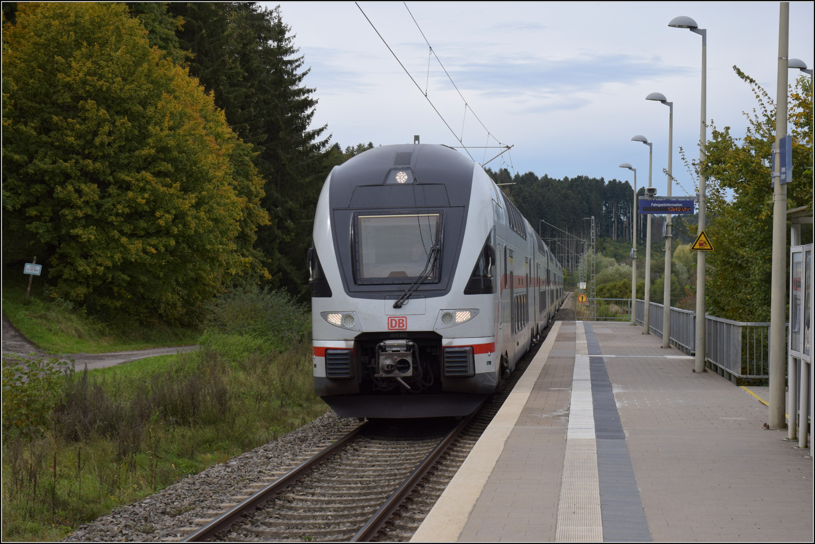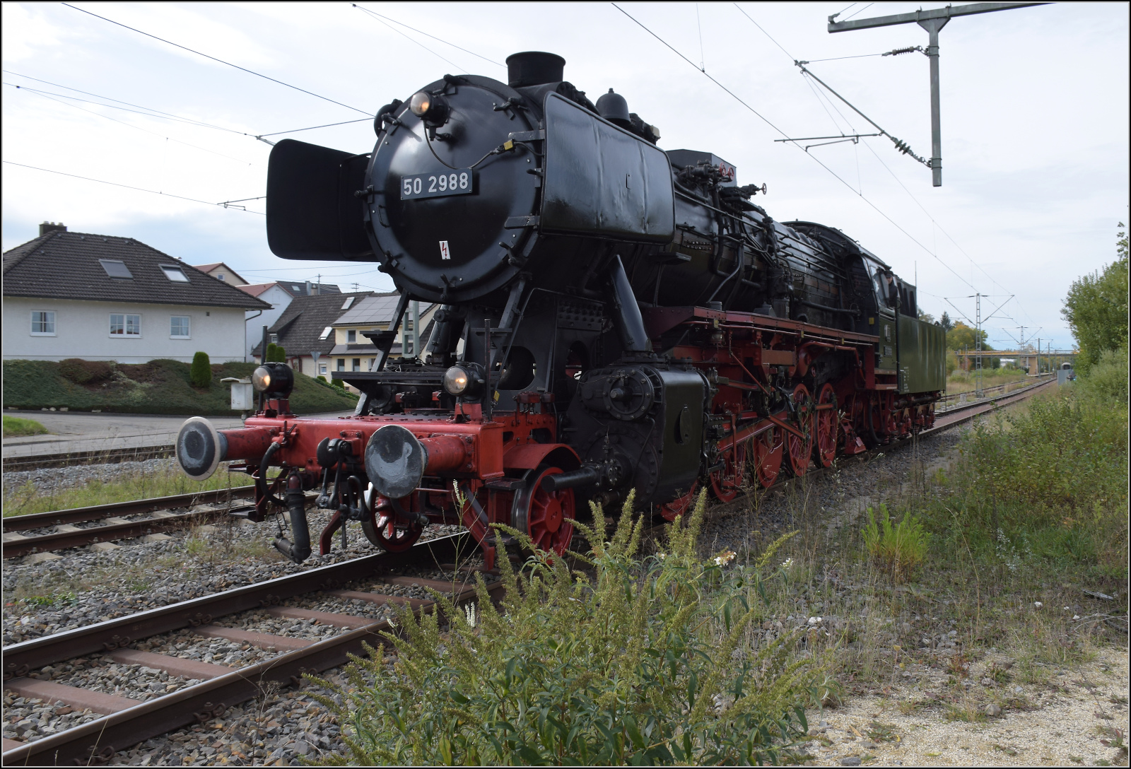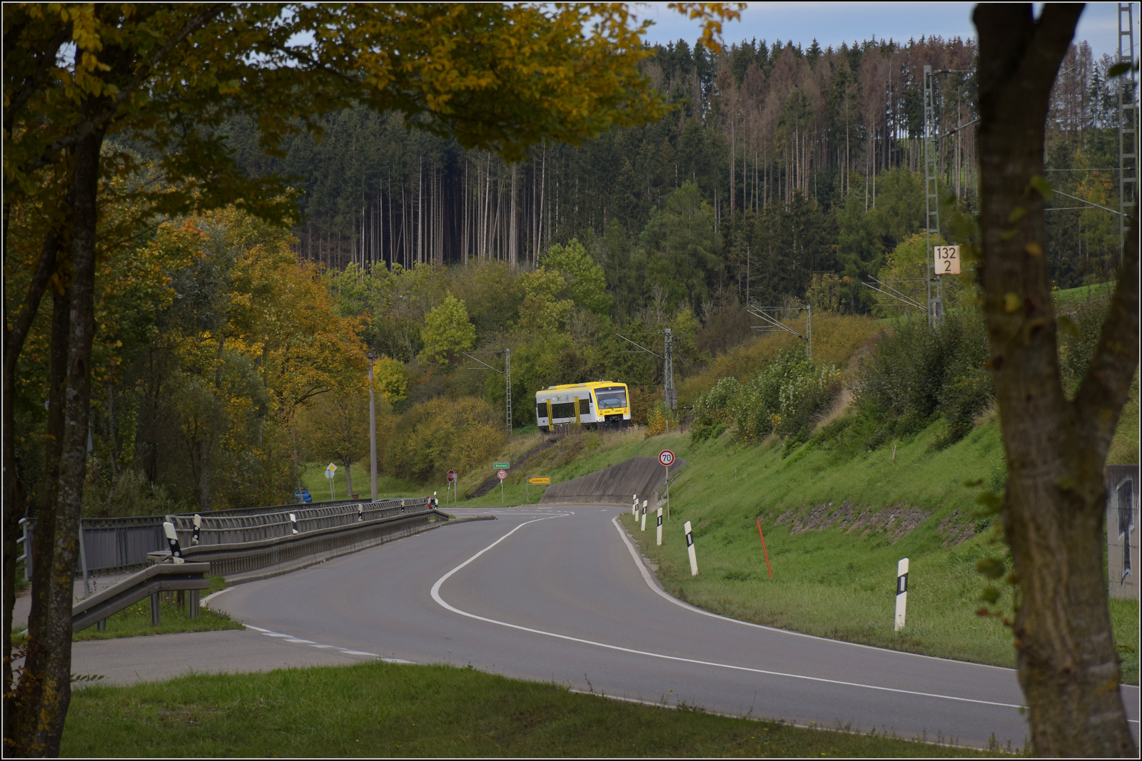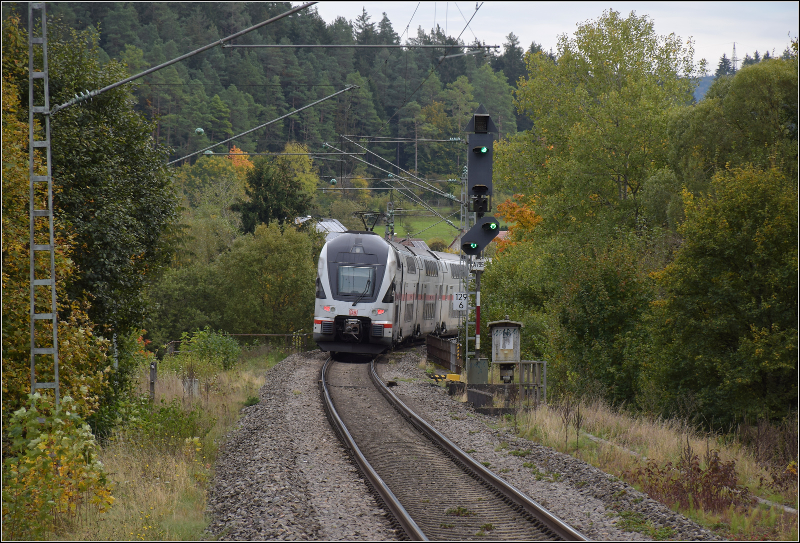 Zurück nach Rottweil geht es bergab, so hätte 50 2988 wenig zu tun, wären da nicht die zwei Kreuzungshalte in Aldingen und Neufra. Zwischen Aldingen und Neuhaus war man allerdings längst in Reisegeschwindigkeit unterwegs. Oktober 2024. km0