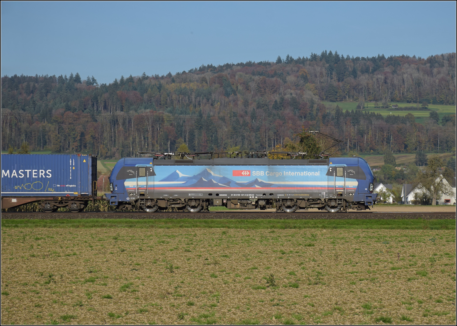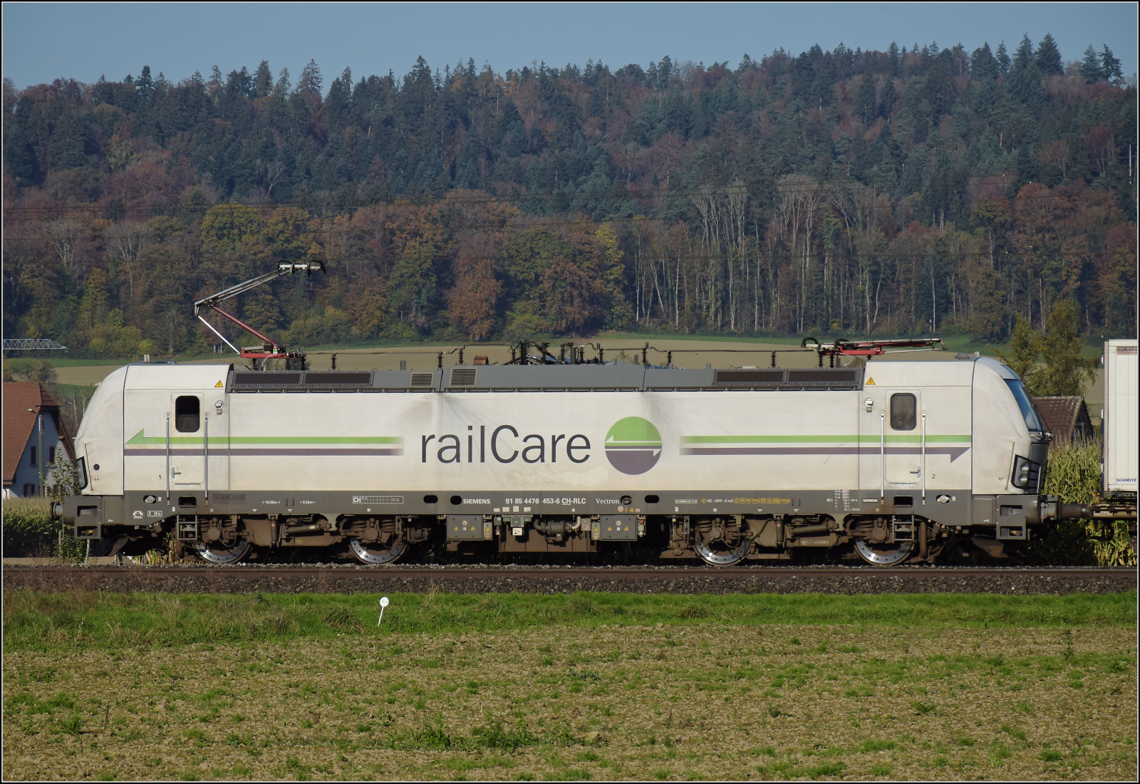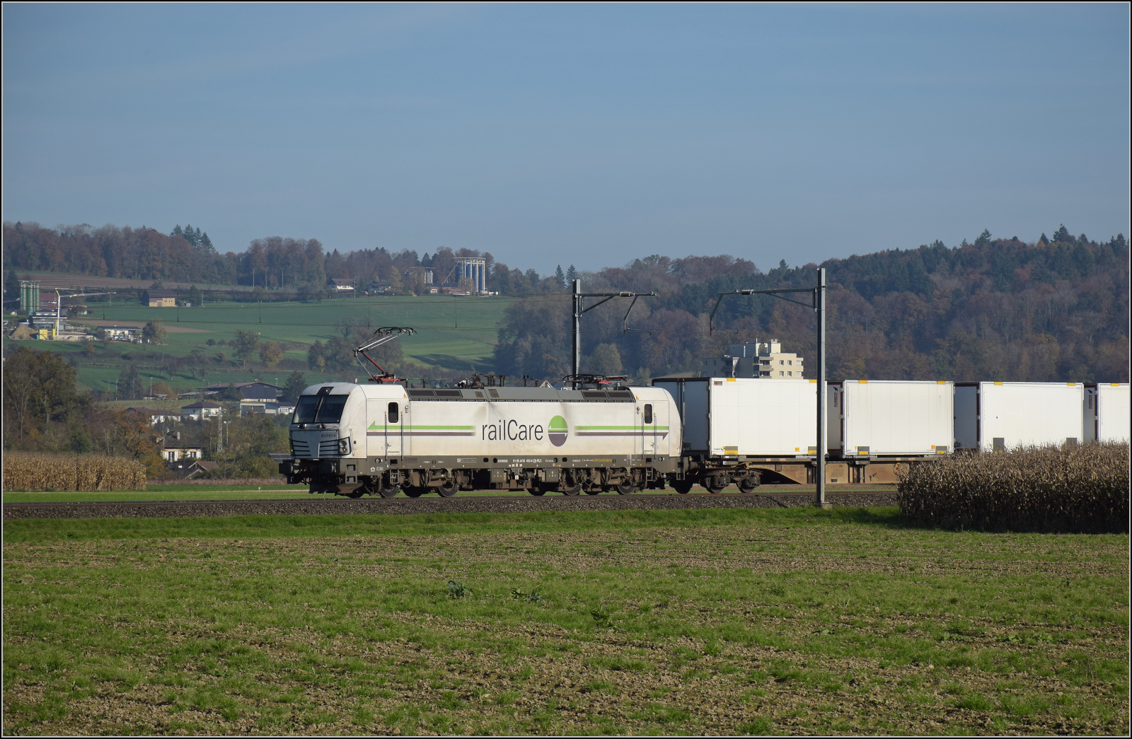 Moment: Containertragwagen 33 RIV 68 D-AAEC 4961 520-6 Sggmrss, in welches Land zum Henker sortier ich dieses Bild ein, Schweiz, Holland, Deutschland oder Afganistan? Hendschiken, November 2024. km0