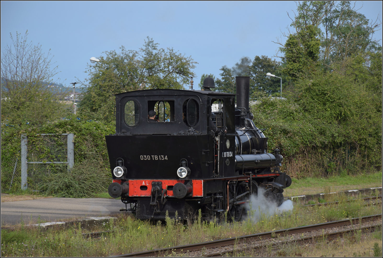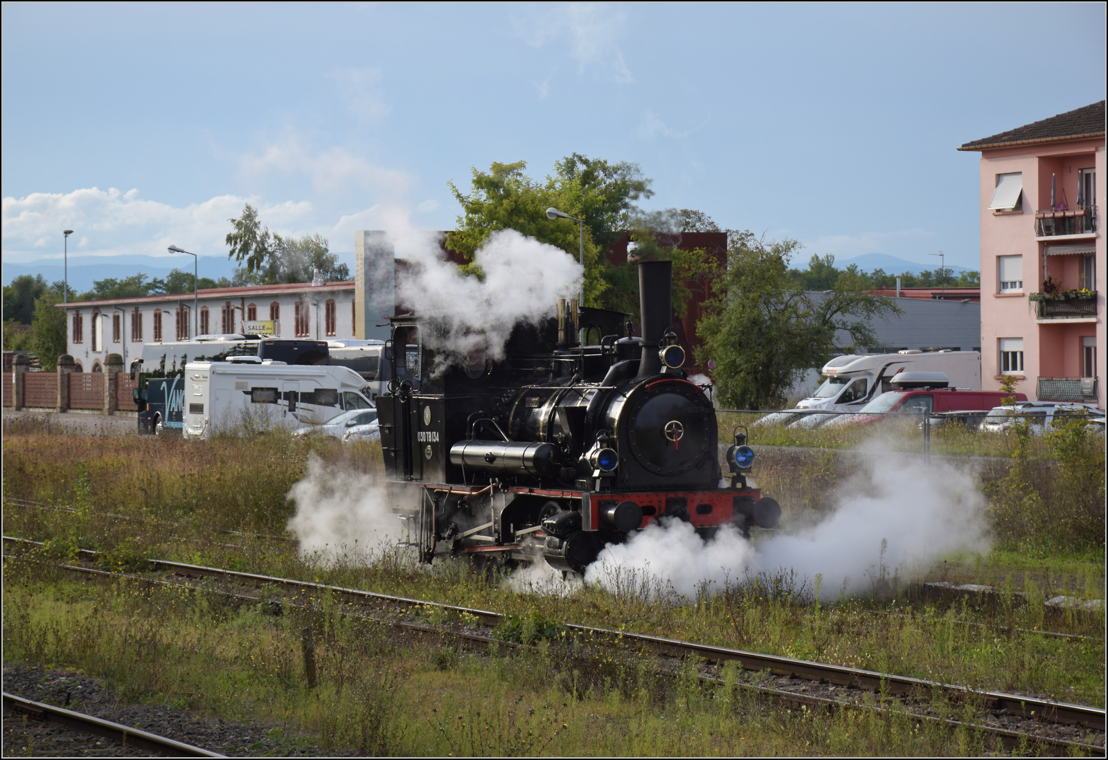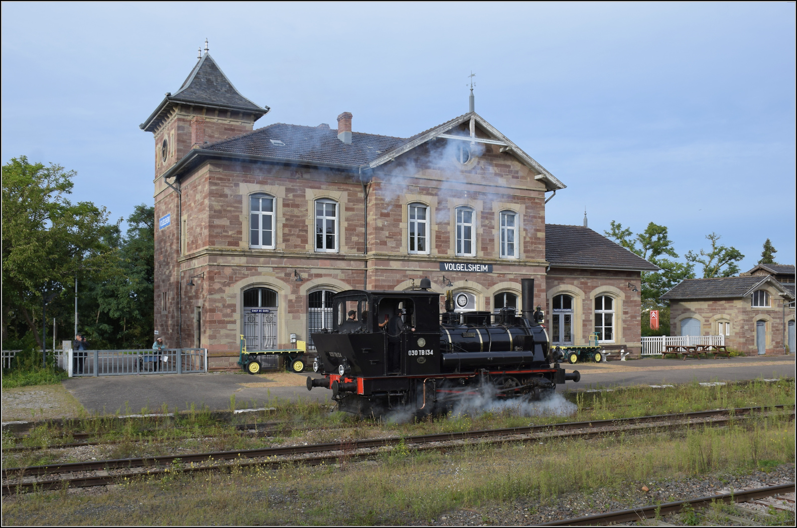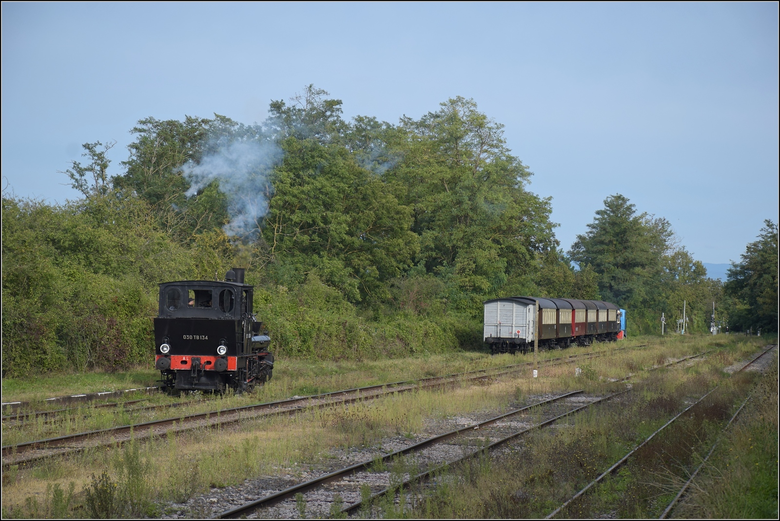 030 TB 134 "Theodor" am Bahnübergang nahe des Abzweigs von der ehemaligen Colmarer/Breisacher-Bahn. Volgelsheim, September 2024. km0