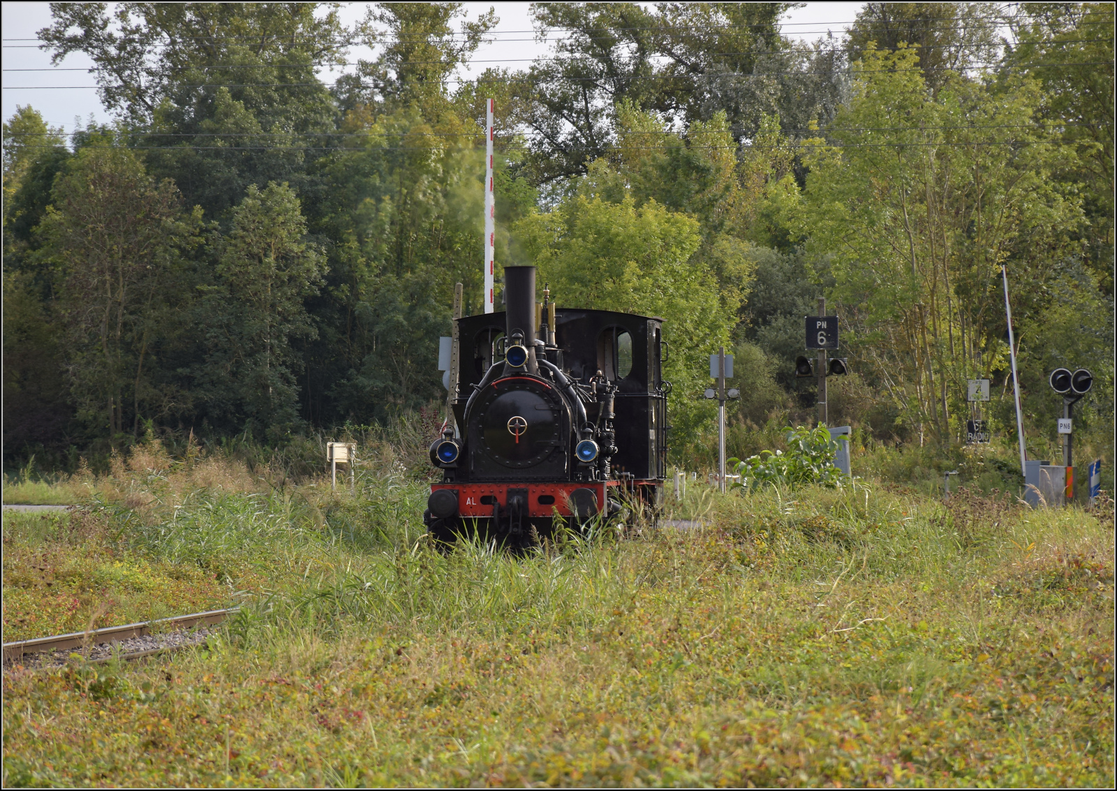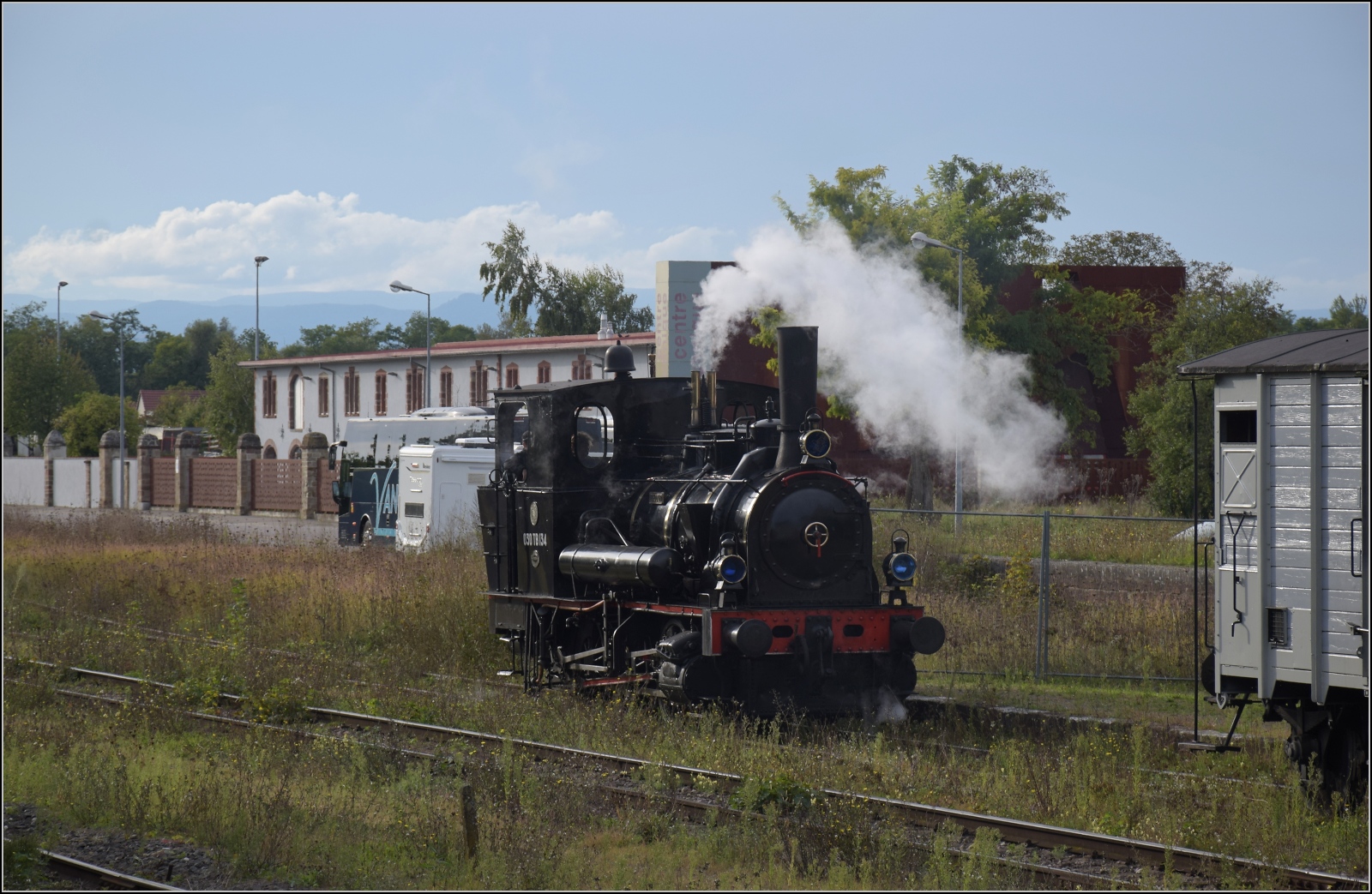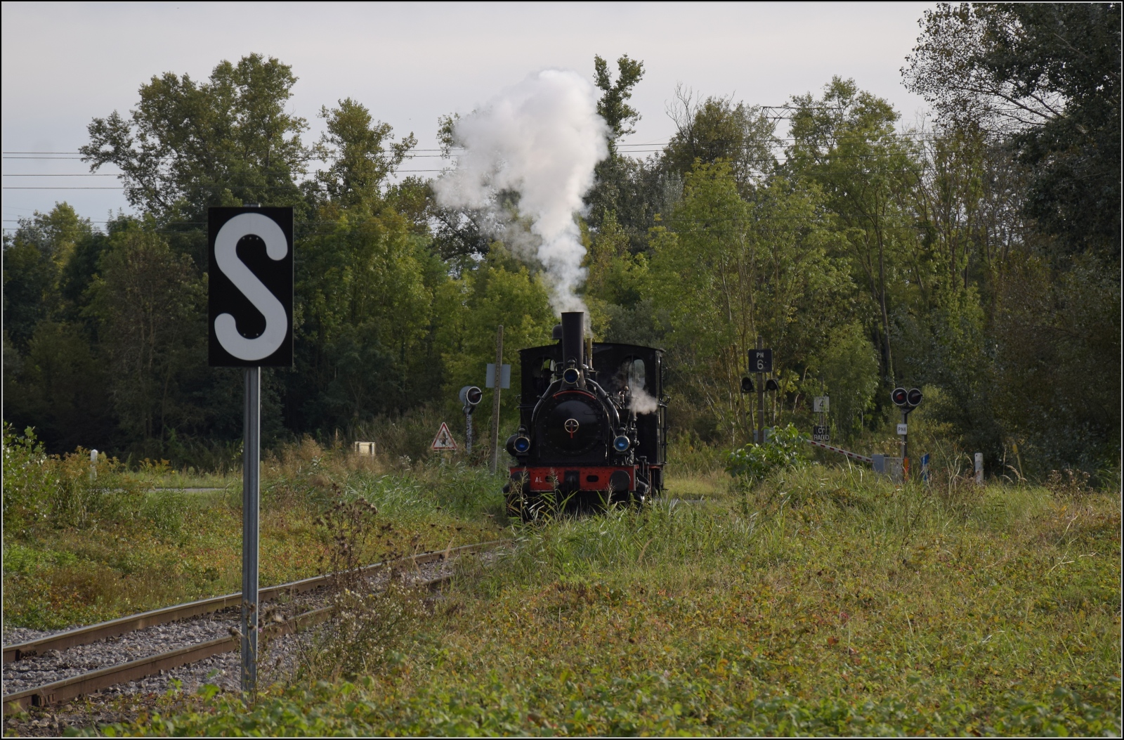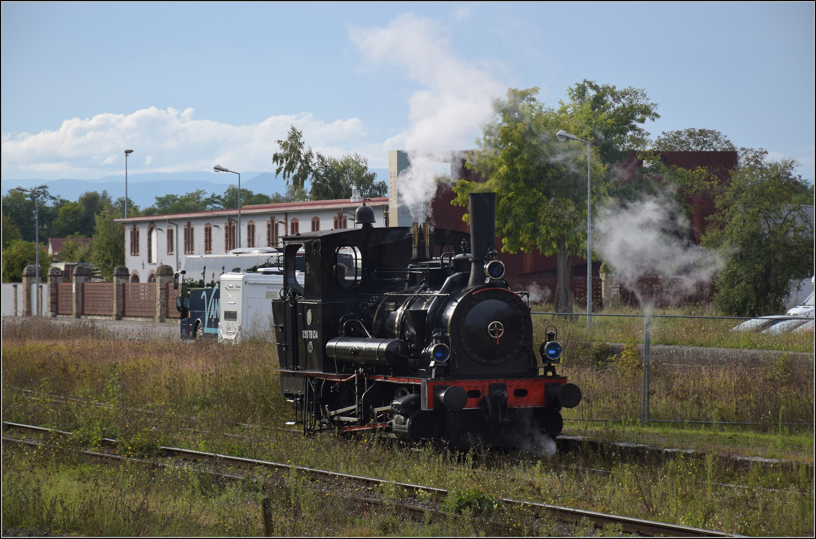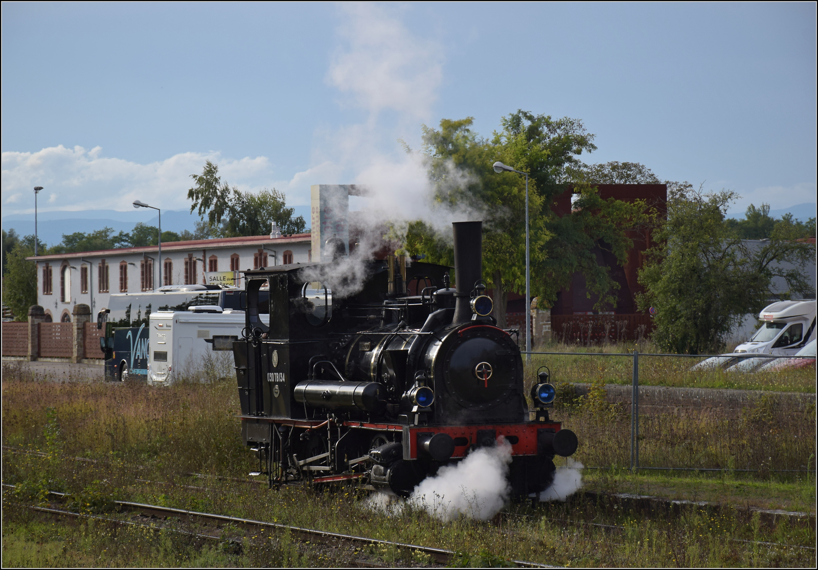 030 TB 134 "Theodor" am Bahnübergang nahe des Abzweigs von der ehemaligen Colmarer/Breisacher-Bahn. Volgelsheim, September 2024. km0