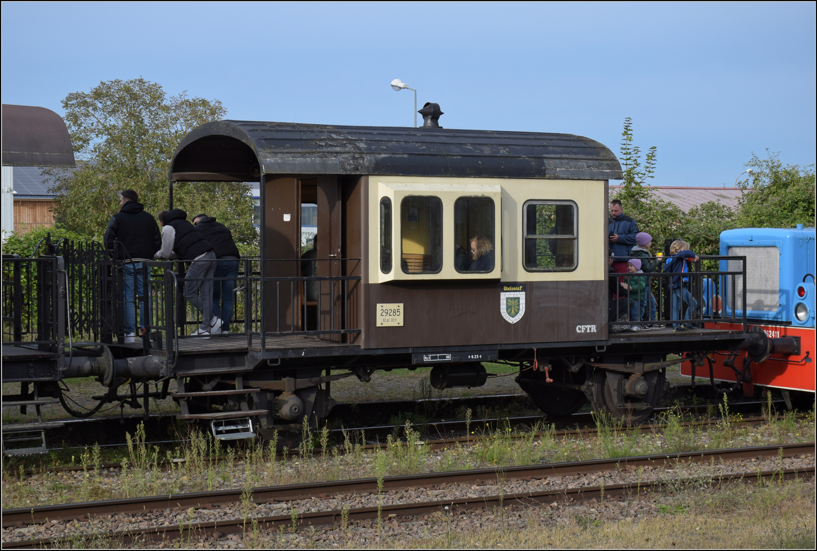 LKM V 22 Nr. 262411 hat die Aufgabe, den Museumszug mit den deutschen Fahrgästen wieder zum Depot zu bringen, wo es eine Besichtigung gibt und anschließend die Schifffahrt zurück nach (Alt-) Breisach. Volgelsheim, April 2019. km0