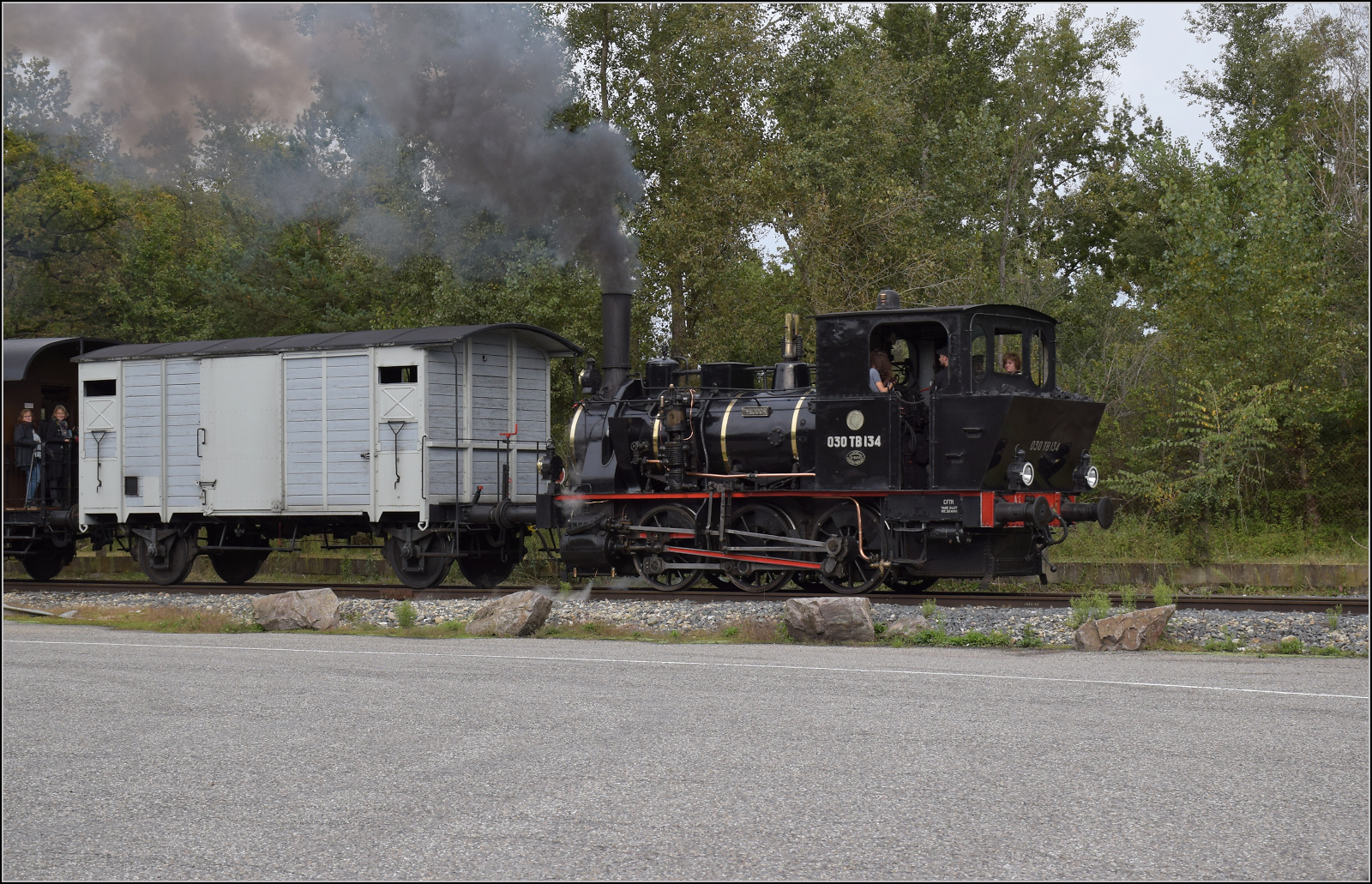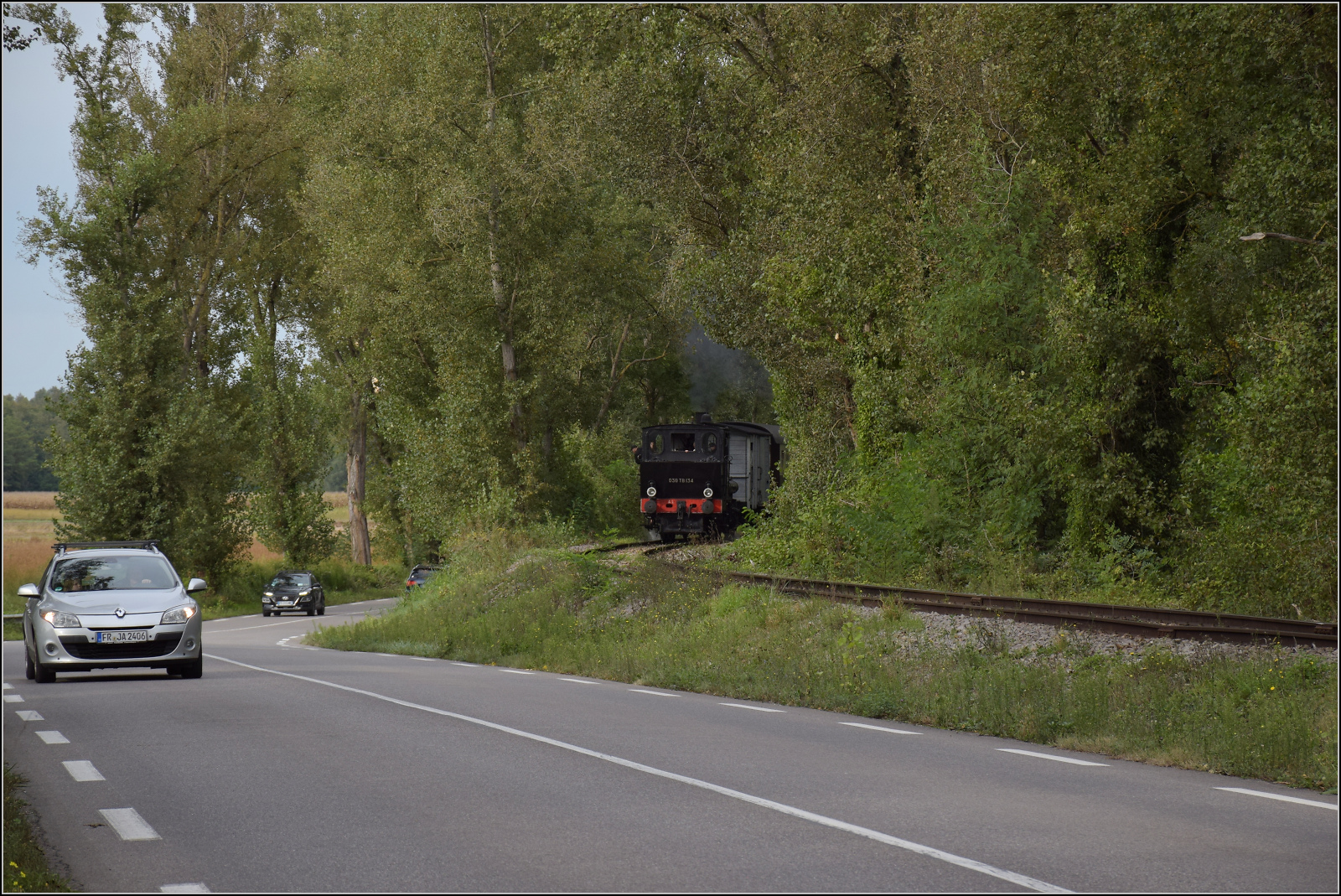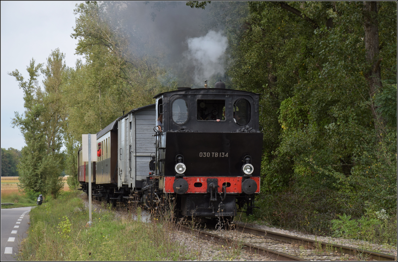 030 TB 134 "Theodor" bezwingt die einzige nennenswerte Steigung zur Brücke über den Colmarer Kanal. Biesheim, September 2024. km0