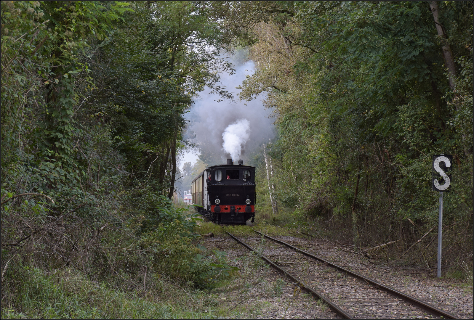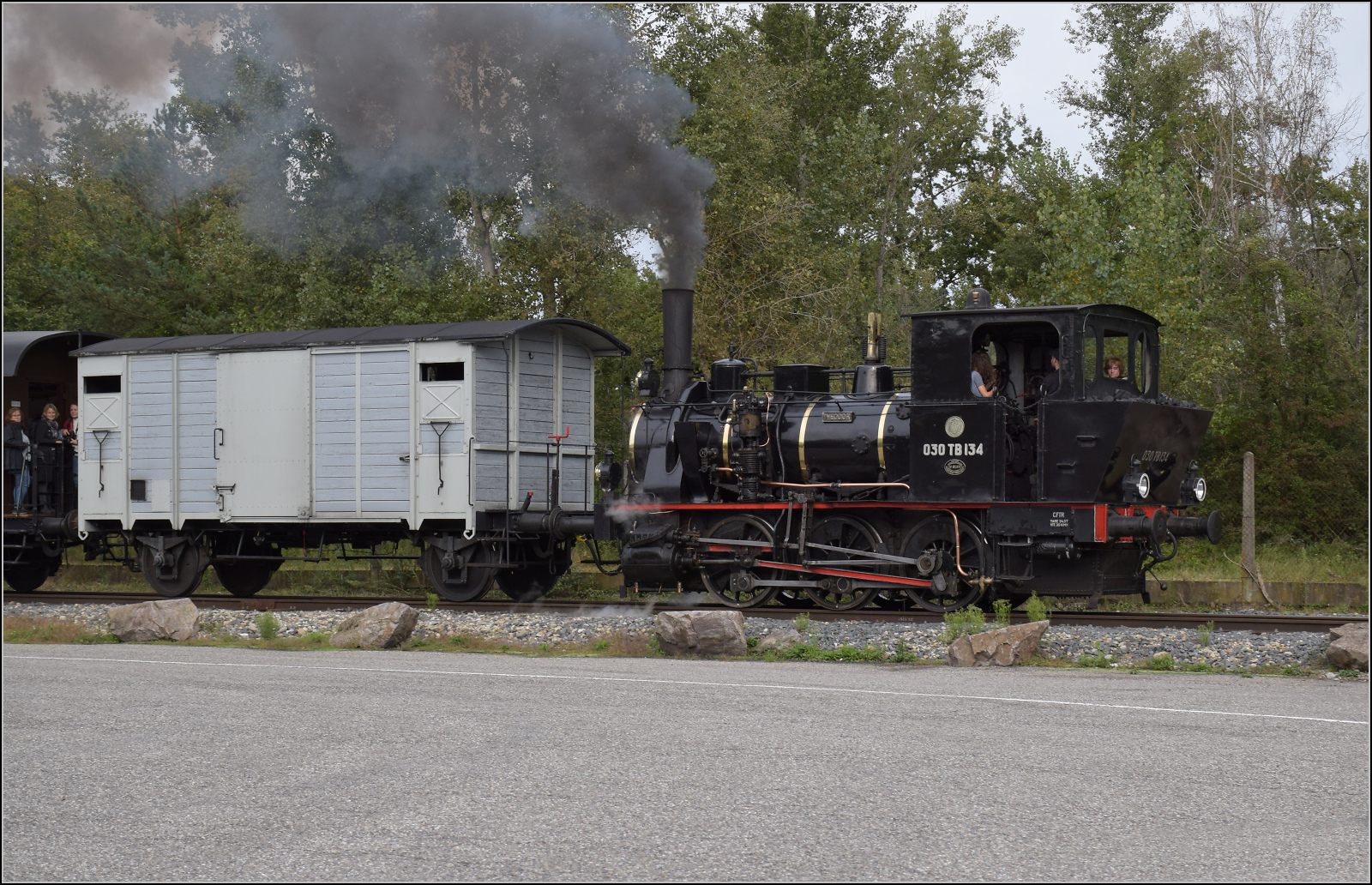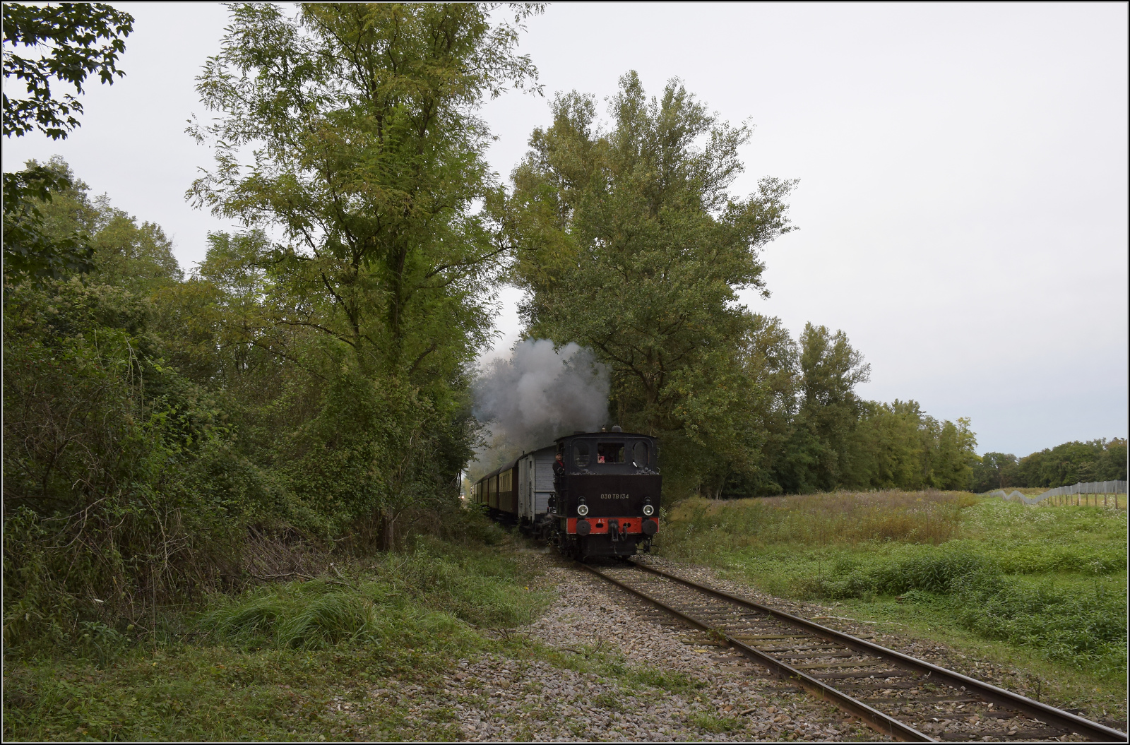 030 TB 134 "Theodor" bezwingt die einzige nennenswerte Steigung zur Brücke über den Colmarer Kanal. Biesheim, September 2024. km0