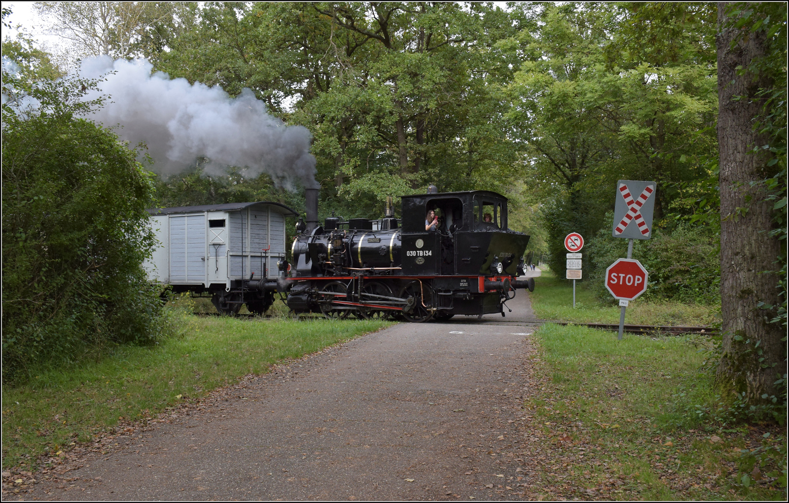 030 TB 134 "Theodor" überquert den Weg ins Grün nahe der Hygieneartikelfabrik Georgia Pacific. Kunheim, September 2024. km0
