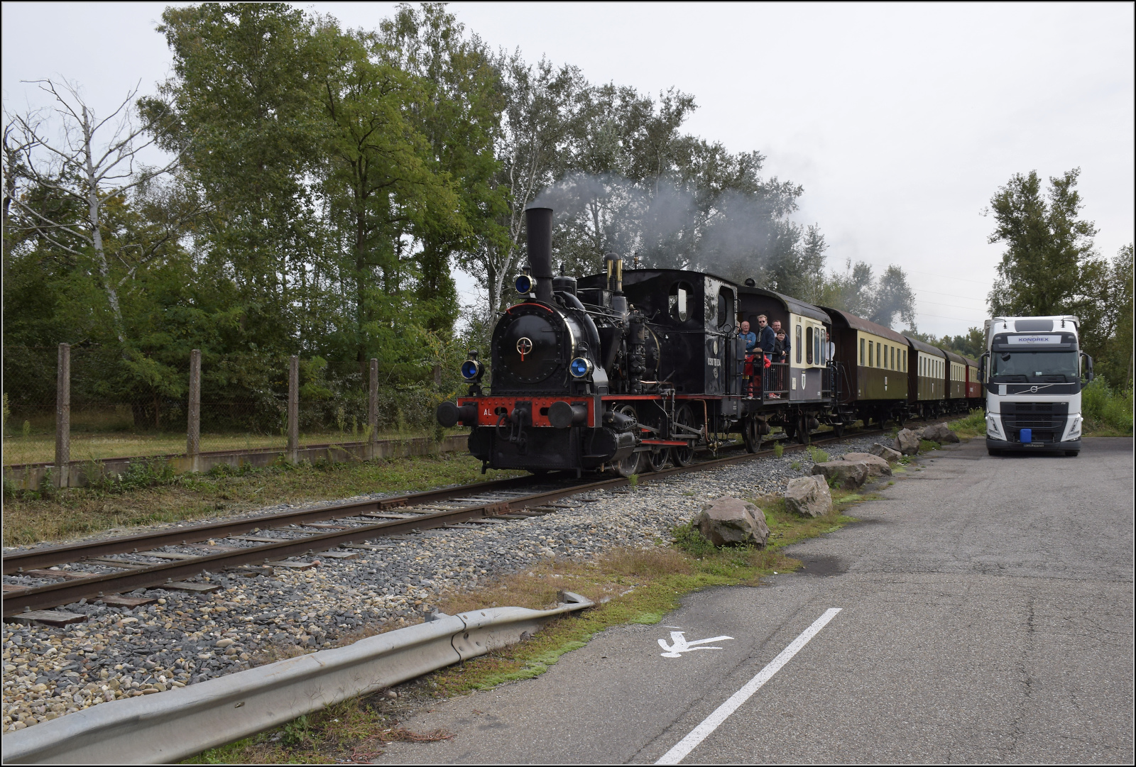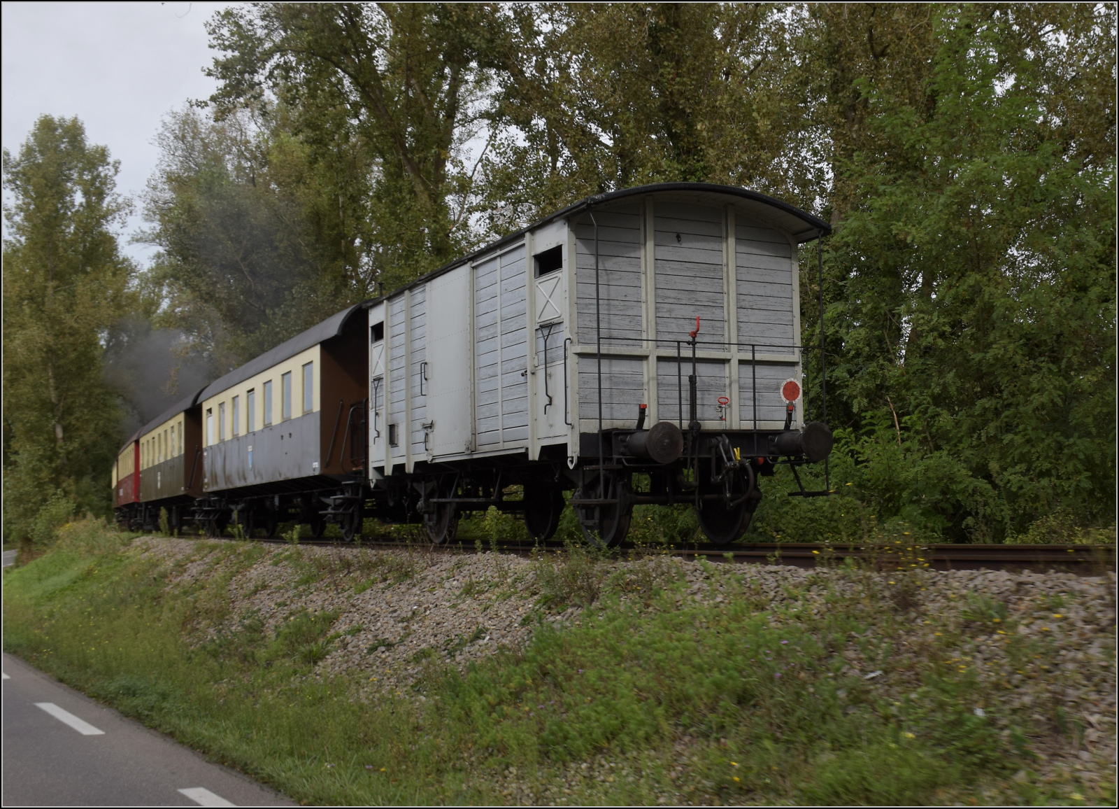 Am Ende des Museumszugs lugt nur noch K 369 hervor. Mit der gespachtelten Stelle am Heck ist die Ente authentischer als so manch ein Hochglanzoldie. Kunheim, September 2024. km0