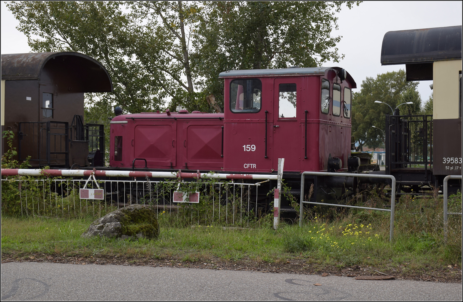Lok 159 rangierte einst im Schöpflin-Werk Lörrach und kam über die Kandertalbahn zur CFTR. Sie wurde 1959 von Deutz als Deutz A8L 614 R mit der Fabriknummer 56946 geliefert. Hier steht sie im Freien im CTFR-Depot. Volgelsheim, April 2019. km0