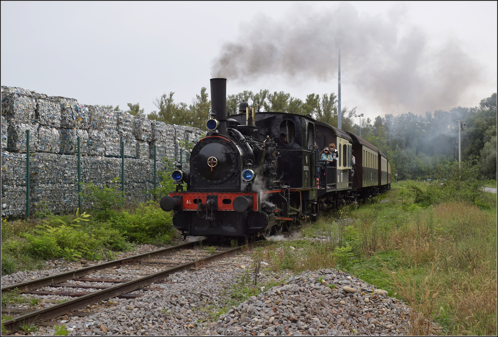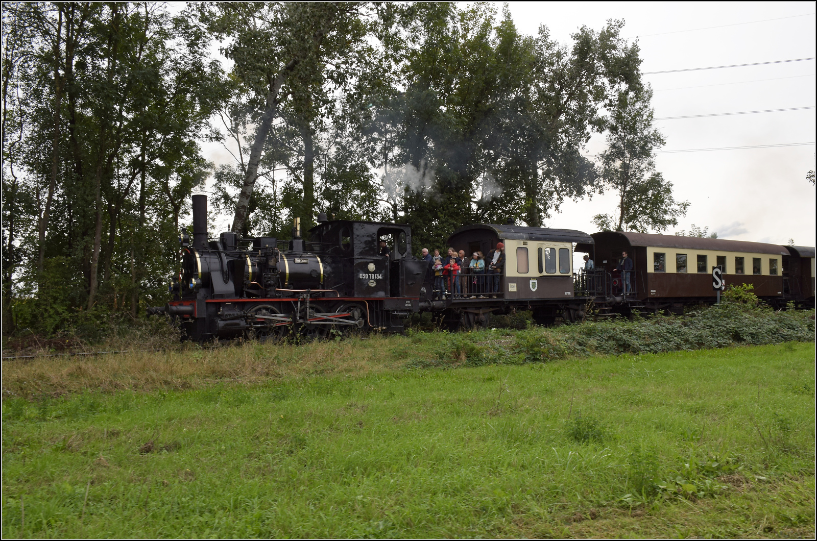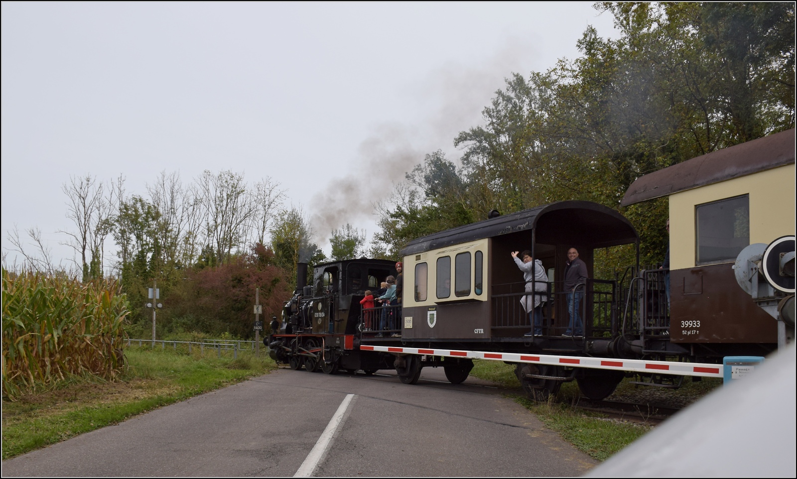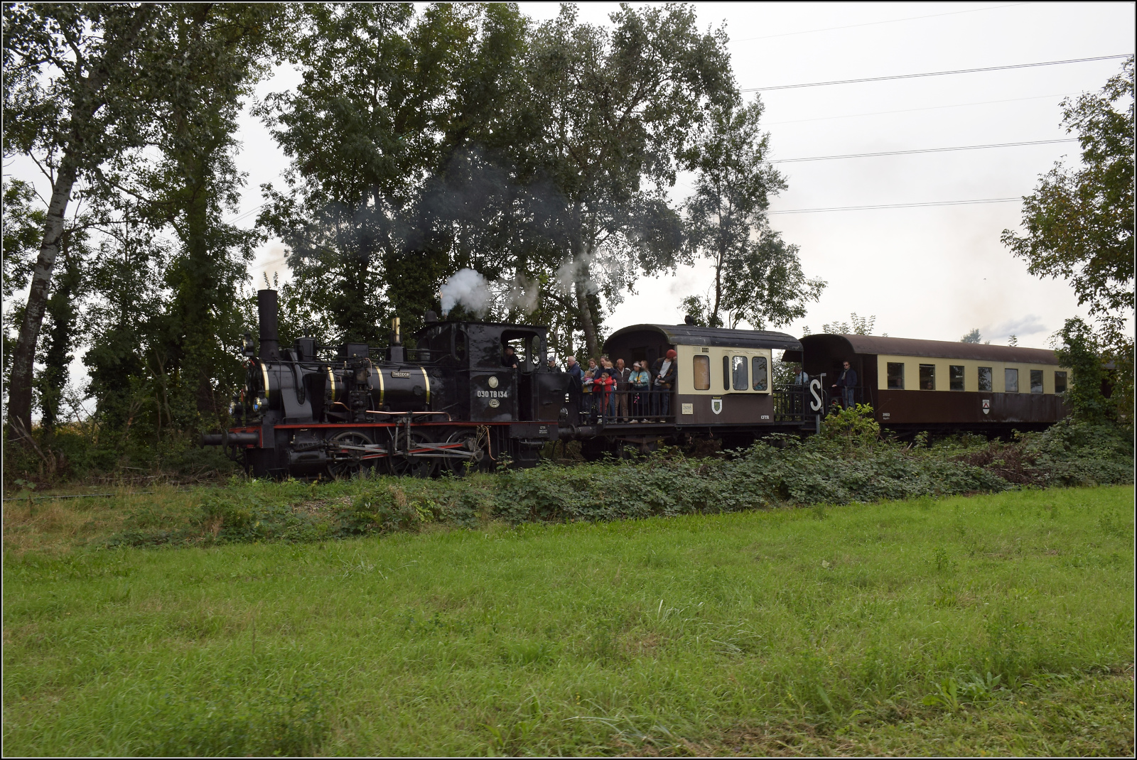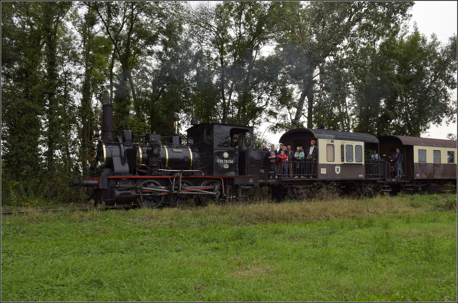 Abfahrt von 030 TB 134 "Theodor" aus dem in Volgelsheim umbenannten "Neu-Breisacher Feldbahnhof". Volgelsheim, September 2024. km0