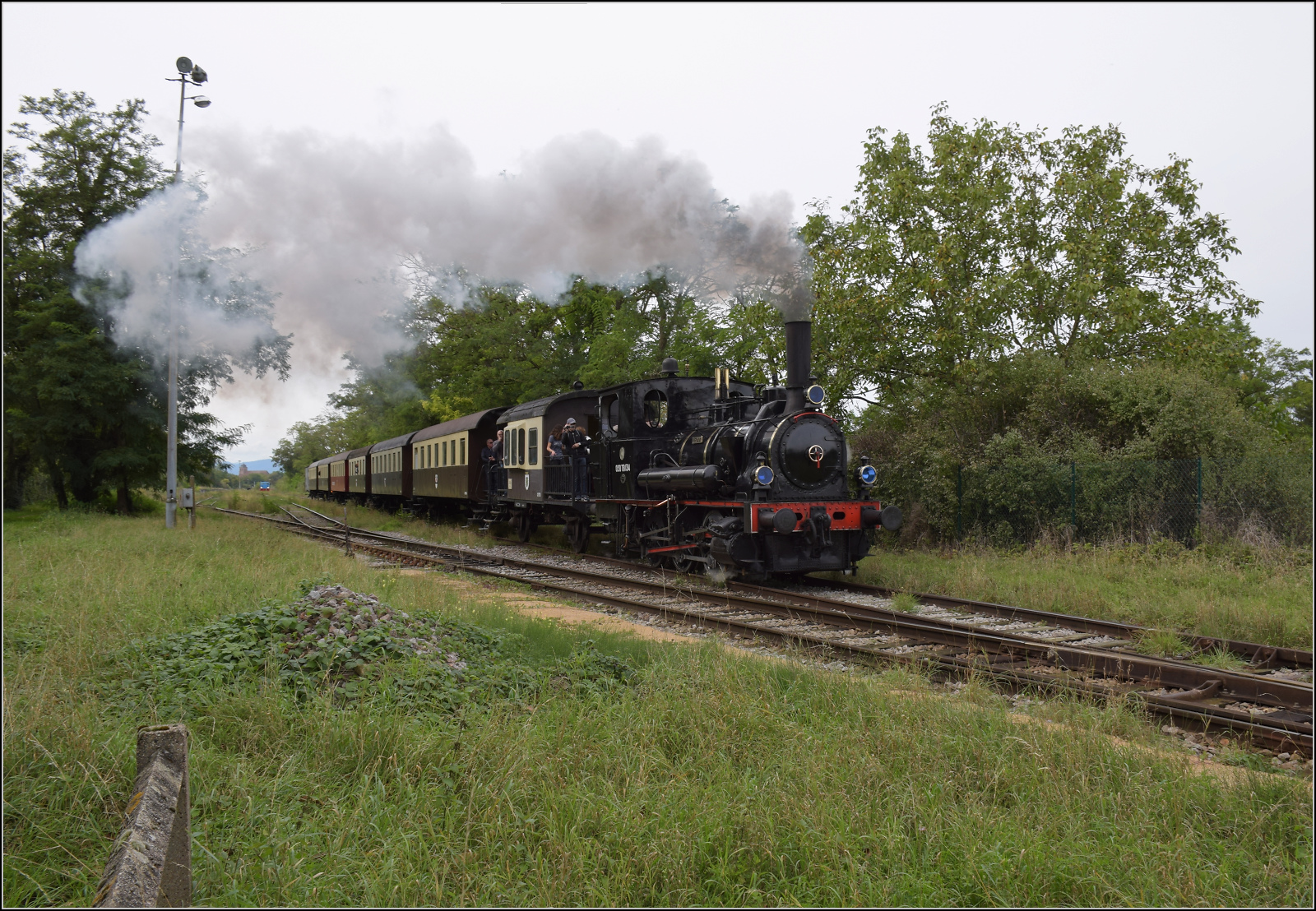 Abfahrt von 030 TB 134 "Theodor" aus dem in Volgelsheim umbenannten "Neu-Breisacher Feldbahnhof". Volgelsheim, September 2024. km0