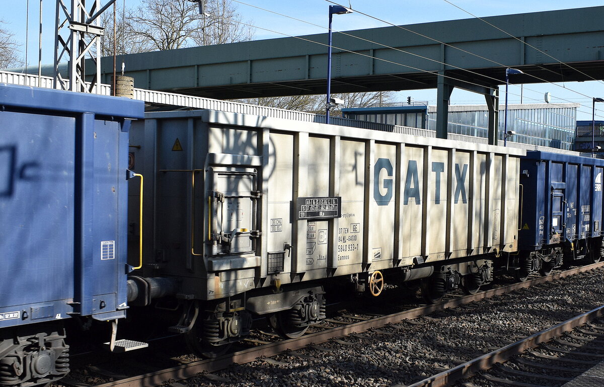 Drehgestell-Hochbordwagen vom Einsteller GATX Rail Germany GmbH mit niederländischer Registrierung mit der Nr. 37 TEN 84 NL-GATXD 5840 933-1 Eamnos (GE) in einem Ganzzug am 07.03.25 Durchfahrt Bahnhof Berlin Hohenschönhausen. Lothar Stöckmann
