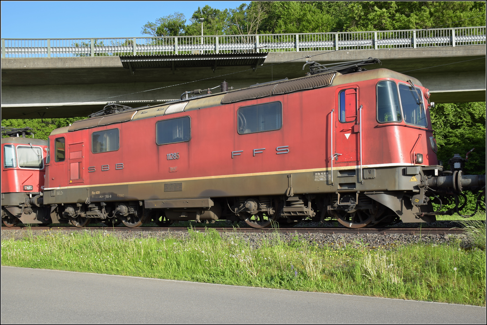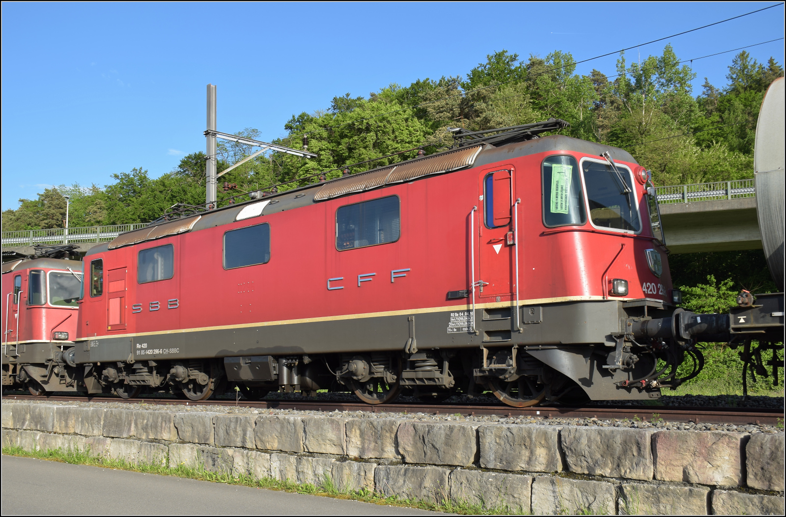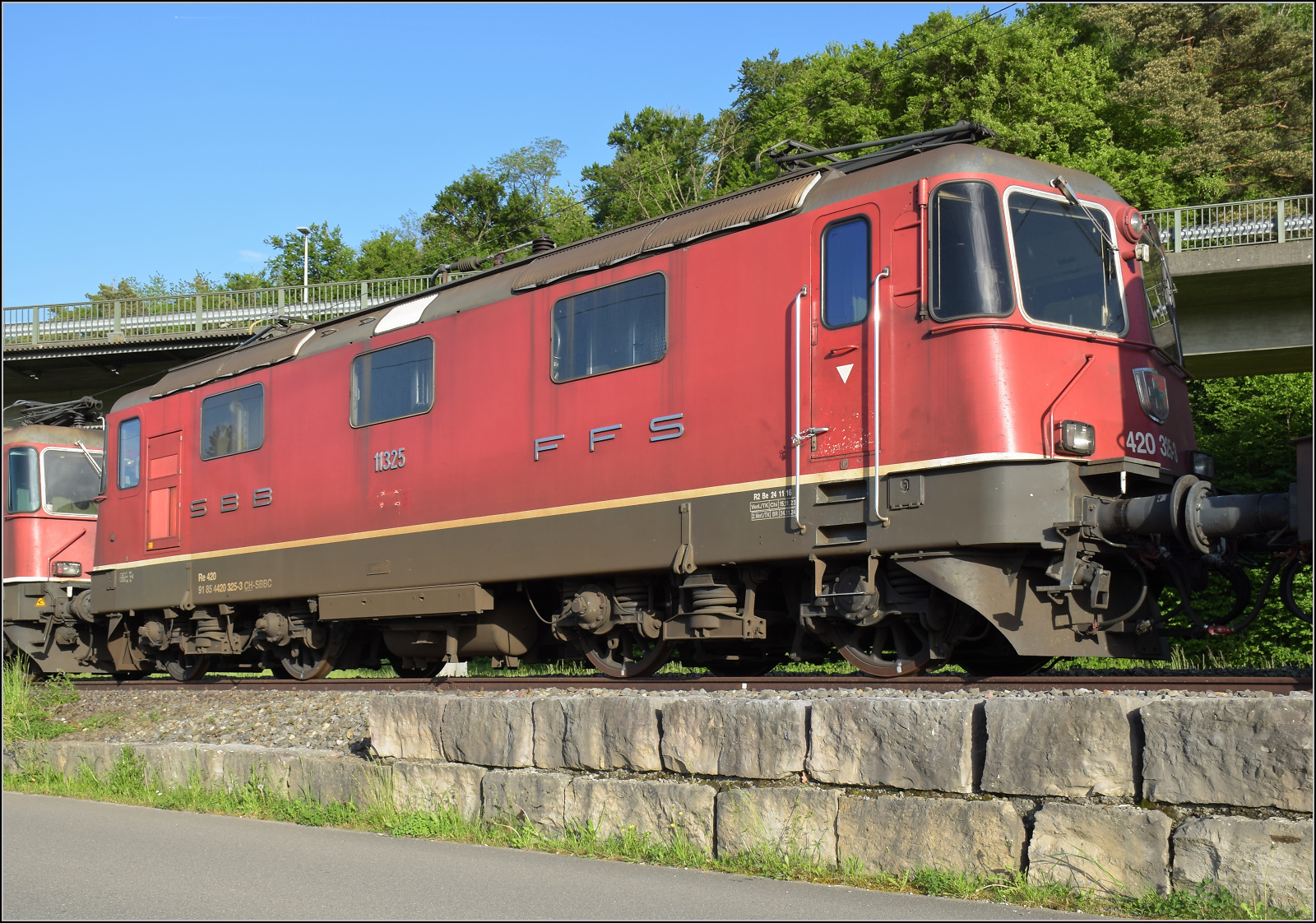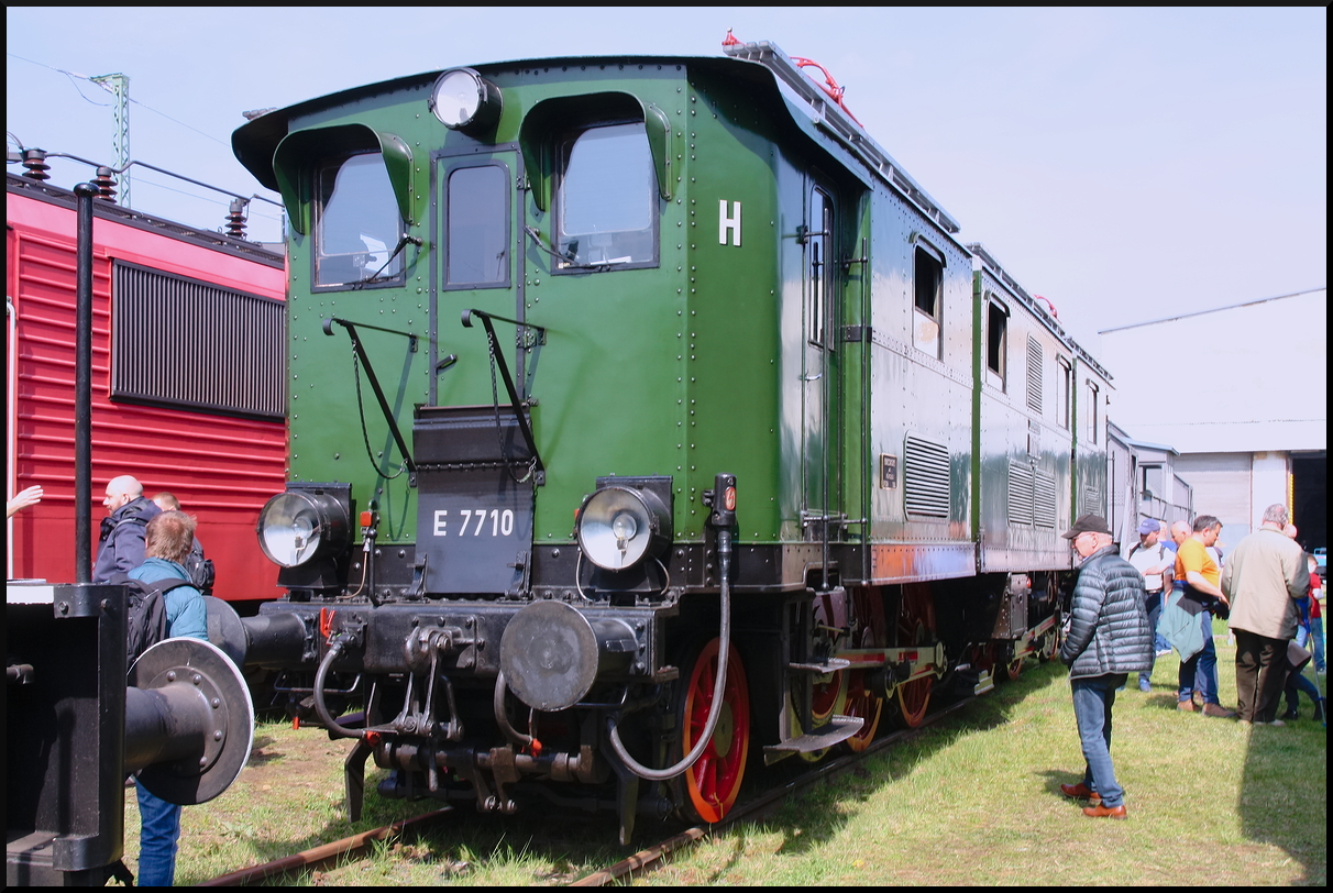 Die dreiteilige Gelenklok E 77 10 hatte während des 17. Dresdner Dampflokfest 100jährigen Geburtstag (nicht auf den den Tag festlegen :-) ) und konnte von den Besuchern genauer betrachtet werden. Die alte Dame stand mit anderen Loks an der Schiebebühne der IG Bw Dresden-Altstadt e.V. am 12.04.2025 auf dem Museumsgelände. Sie zeigte sich im museal aufgearbeiteten Zustand und obwohl sie betriebsfähig ist, hatte ihre letzte Verlängerung der HU 2012. Sie wird wohl nicht mehr fahren, was aufgrund ihrer konstruktionsbedingten schlechten Laufeigenschaften ohnehin selten erfolgte (NVR-Nummer 97 80 8177 010-6 D-IGDA).