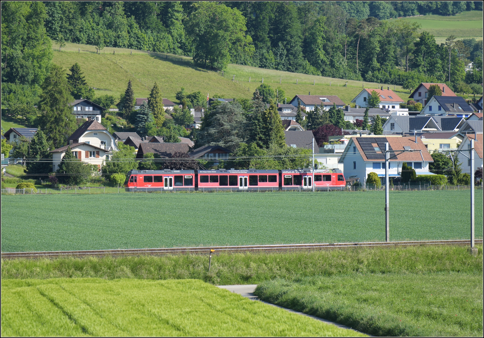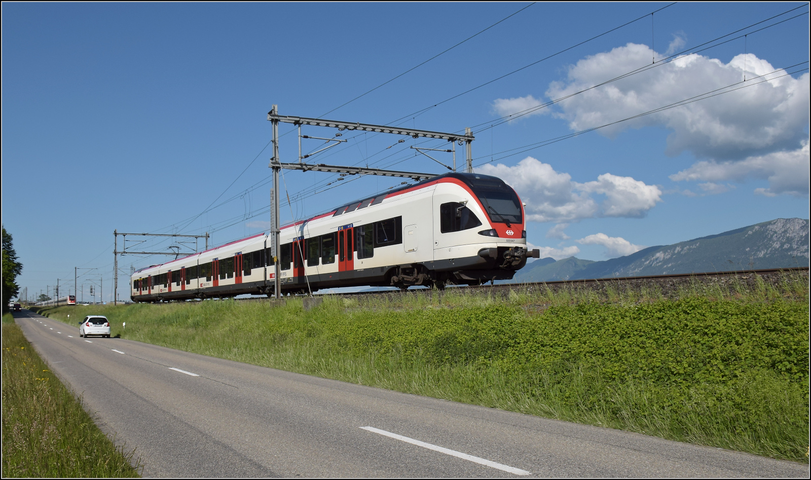 Holprig geht der Museumstag los, zwischen Deitingen und Wangen an der Aare gibt es mit einer Begegnung von RABe 523 047 mit den ICN RABDe 500 011 'Blaise Cendrars' und RABDe 500 029 'Eduard Spelterini' nur Regelverkehr zu sehen. Mai 2025,. km0