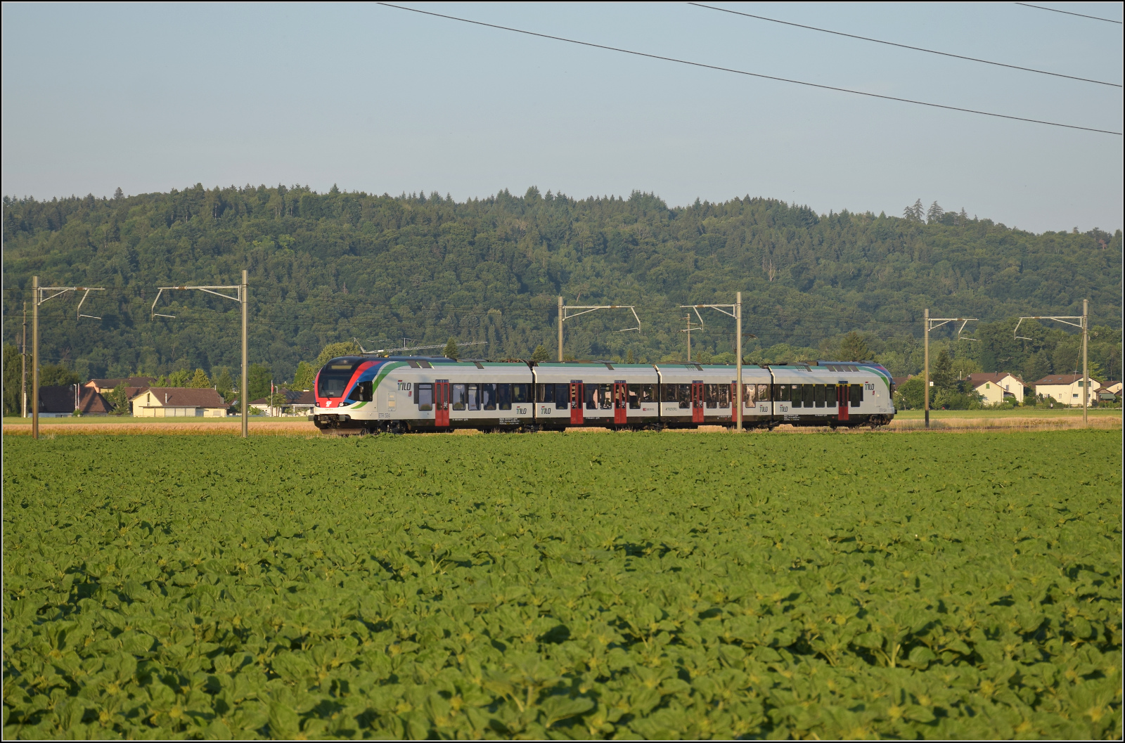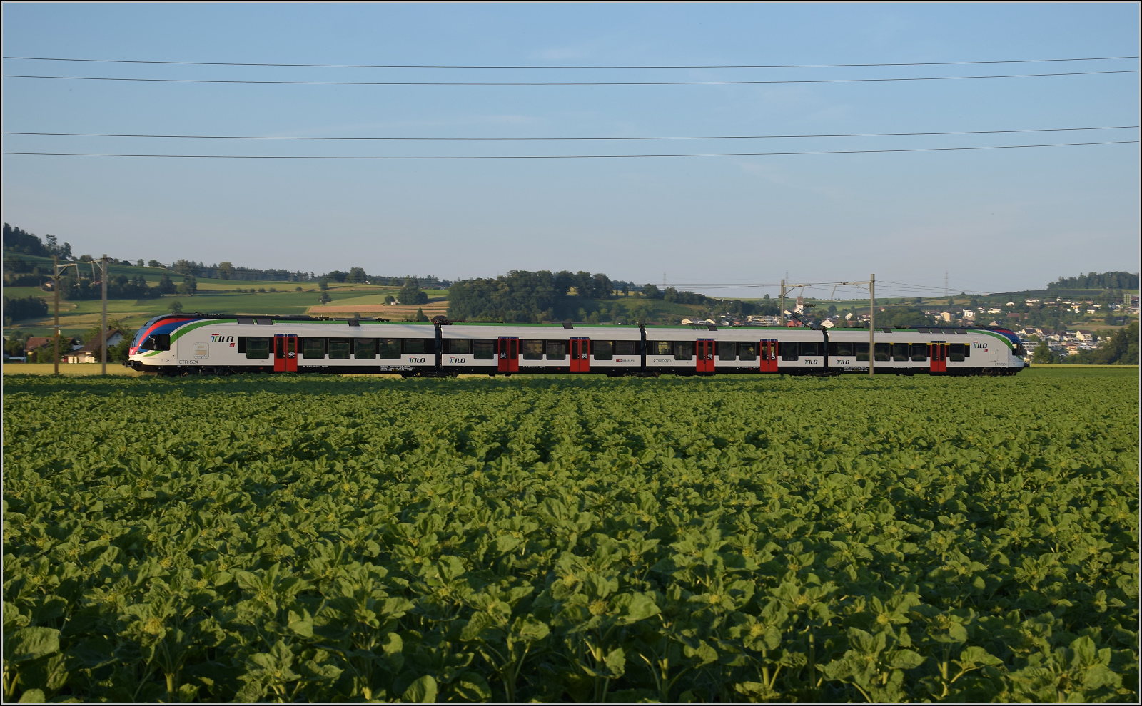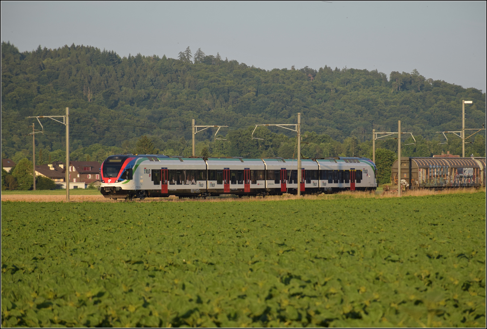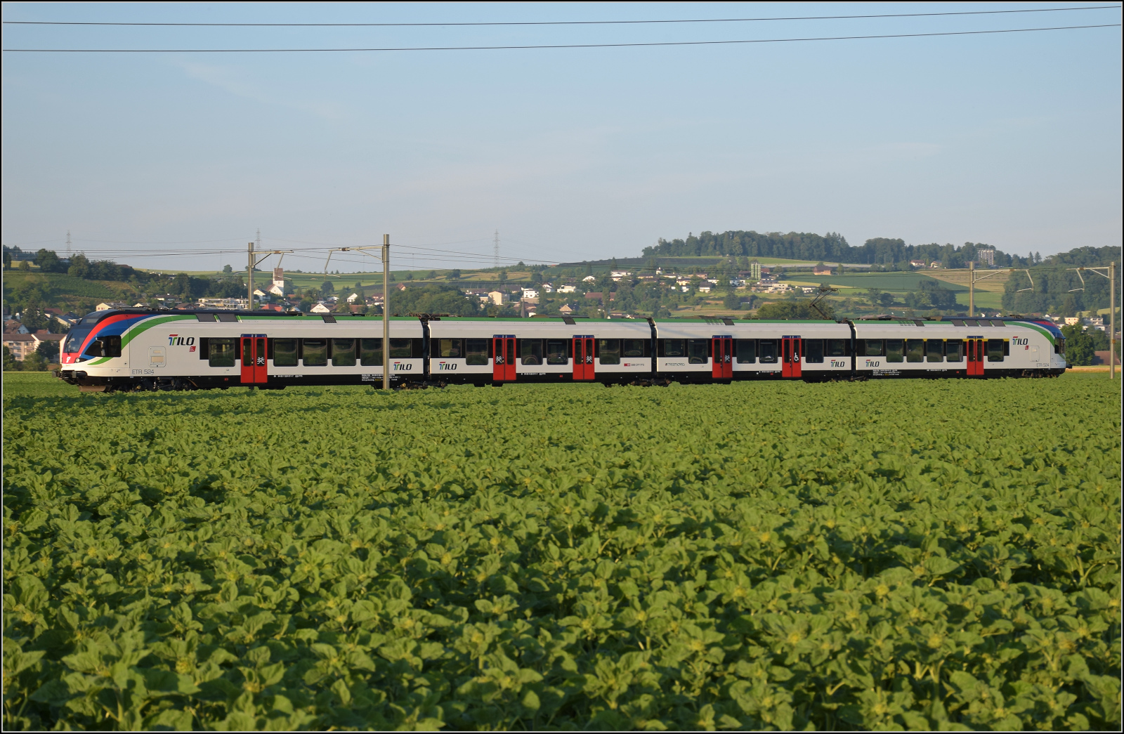 Blick auf den vermutlich ehemaligen Eurofimawagen A-RALP WLABmz 61 81 75-71 454-1 in der Rola mit 193 533 'Rhone der SBBCI bei Henschiken. Juni 2025.