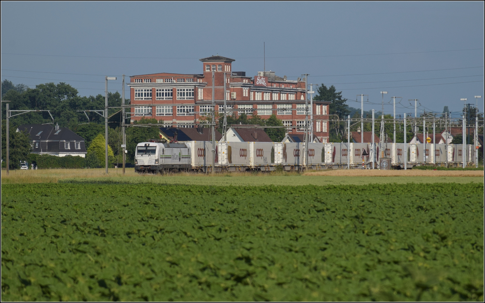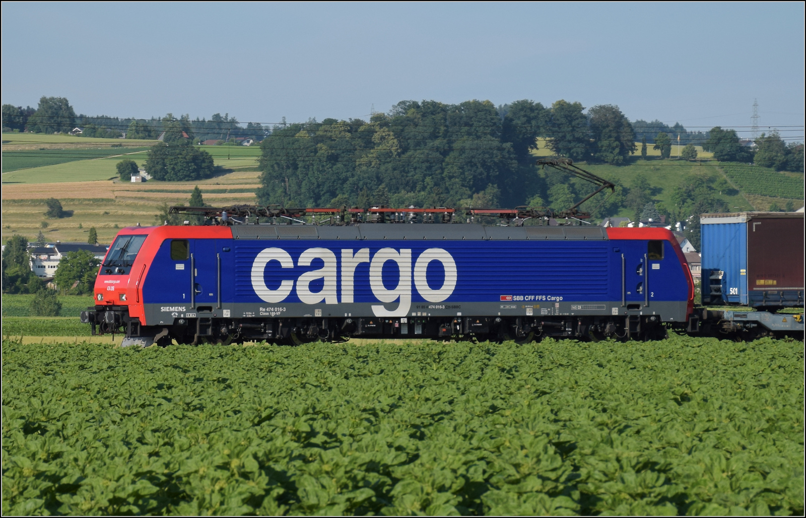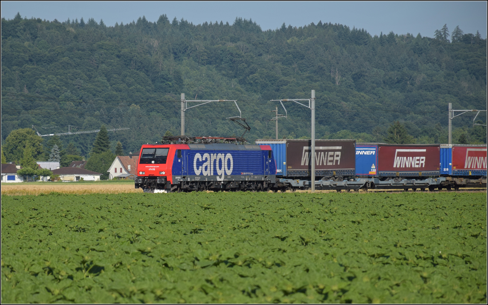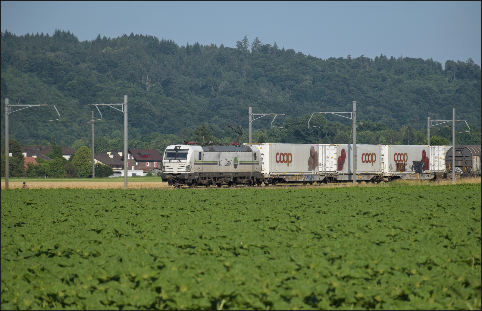 Für Abwechslung bei Hendschiken sorgt ein umgeleiteter Fernverkehrszug mit RABe 501 020 'Luzern' und RABe 501 025 'Geneve'. Juni 2025