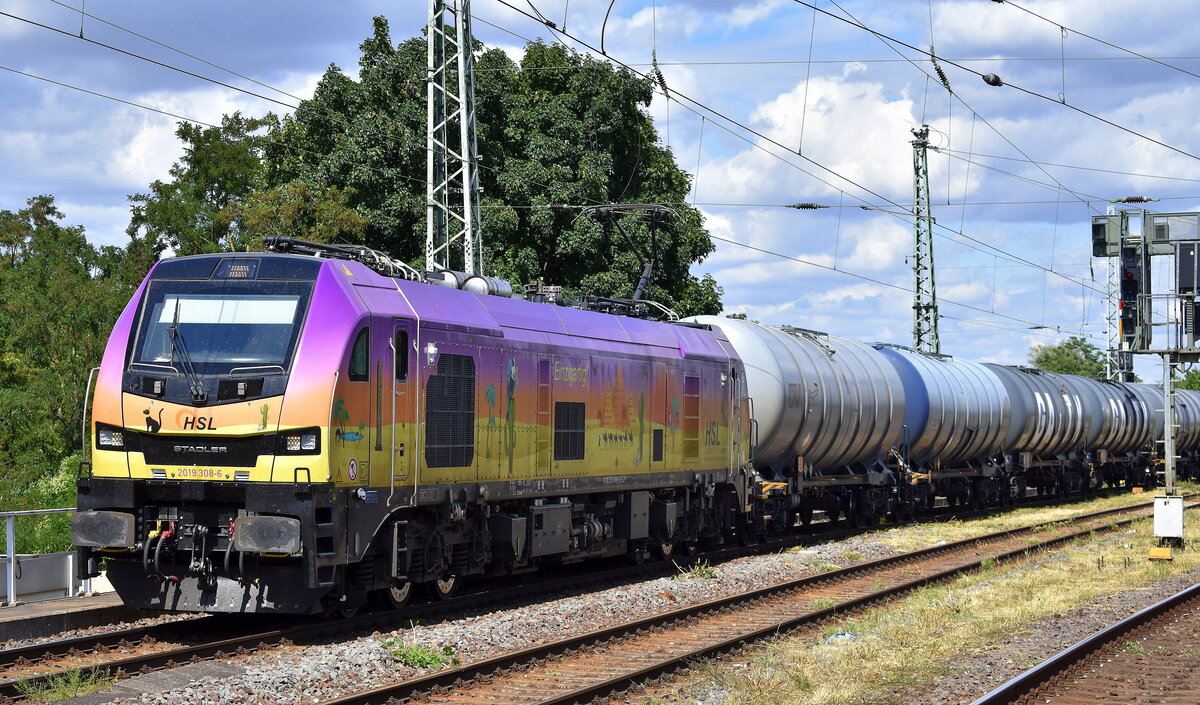 HSL Logistik GmbH, Hamburg [D] mit der geleasten ELP Euro9000 Lok "2019 308-6" [NVR-Nummer: 90 80 2019 308-6 D-ELP] und einem Kesselwagenzug (für Kerosin) am 10.07.25 Höhe Bahnhof Magdeburg-Neustadt. Lothar Stöckmann