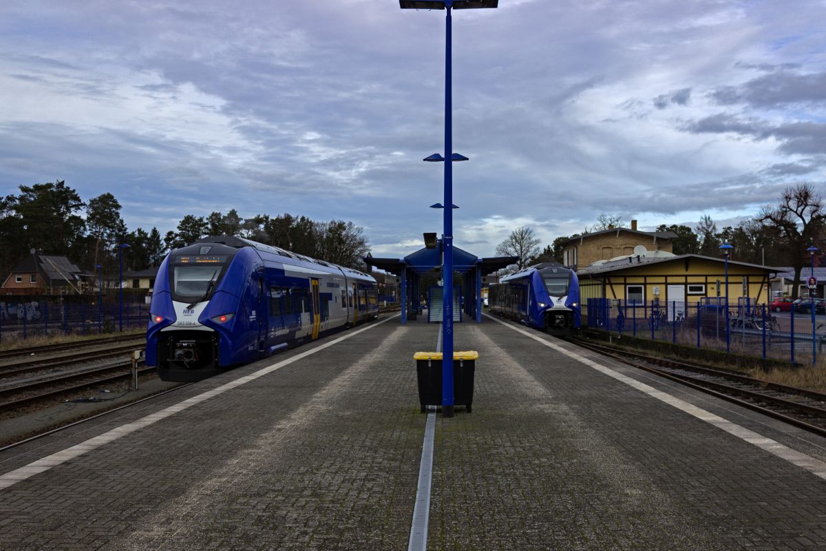 In Basdorf finden die Zugkreuzungen der "Heidekrautbahn" RB 27 statt. Mit 563 008 und 563 009 treffen sich am 27.01.25 zwei der damals erst wenige Monate eingesetzten Wasserstoff-Mireos in Basdorf. Leon Rosendahl
