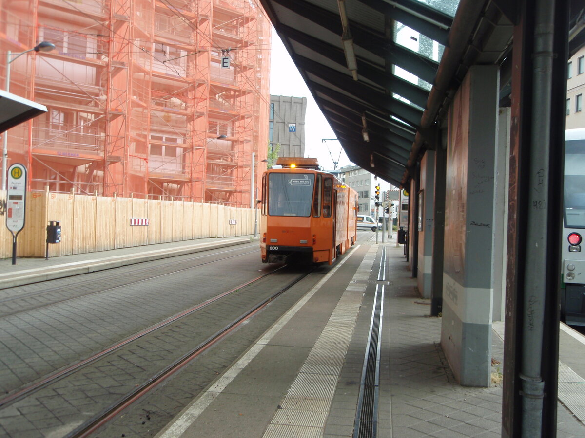 Arbeitswagen 200 der Städtischen Verkehrsbetriebe Zwickau in Zwickau Zentrum. 15.07.2025