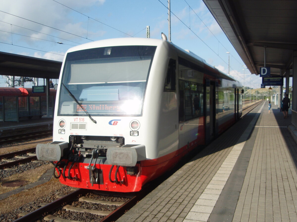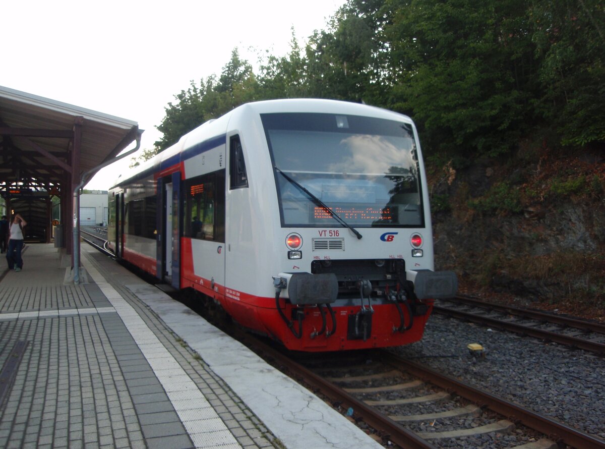 VT 516 der City-Bahn Chemnitz als RB 92 nach Stollberg (Sachs) in Glauchau (Sachs). 15.07.2025