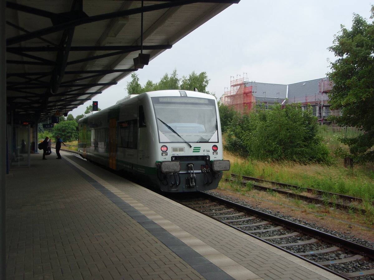 VT 564 der Vogtlandbahn als RB 1 Kraslice - Zwickau Zentrum in Falkenstein (Vogtl). 15.07.2025
