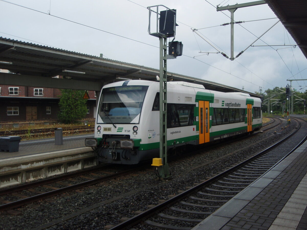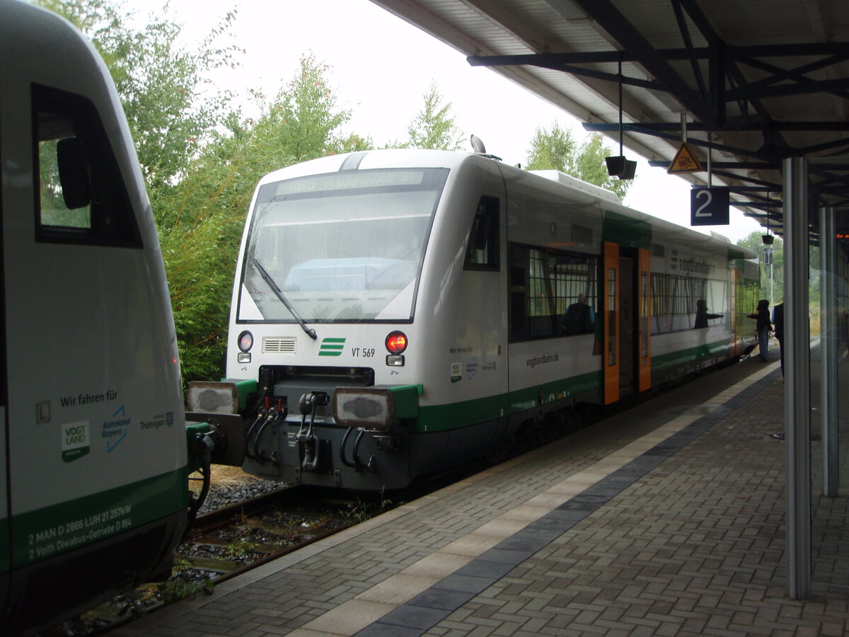 VT 569 der Vogtlandbahn als RB 5 aus Falkenstein (Vogtl) in Plauen (Vogtl) ob Bf. 15.07.2025