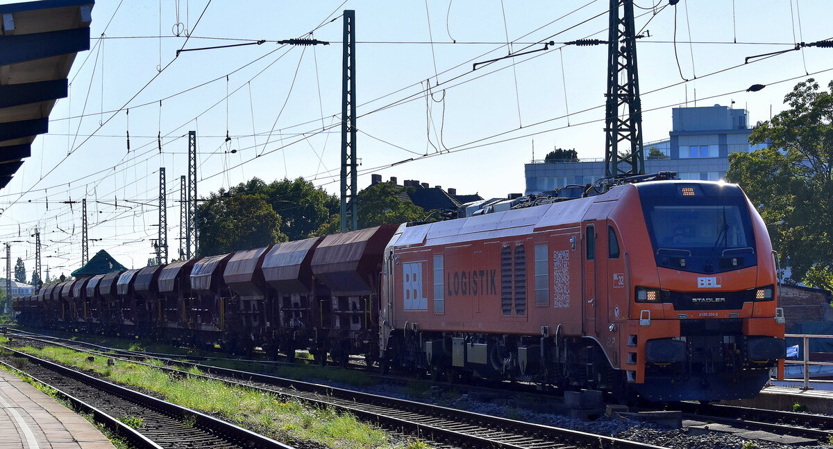 BBL Logistik GmbH, Hannover [D] mit der geleasten ELP Eurodual Lok "BBL 32" [NVR-Nummer: 90 80 2159 254-2 D-RCM] und einem Schotterzug am 11.08.25 Höhe Bahnhof Magdeburg-Neustadt. Lothar Stöckmann