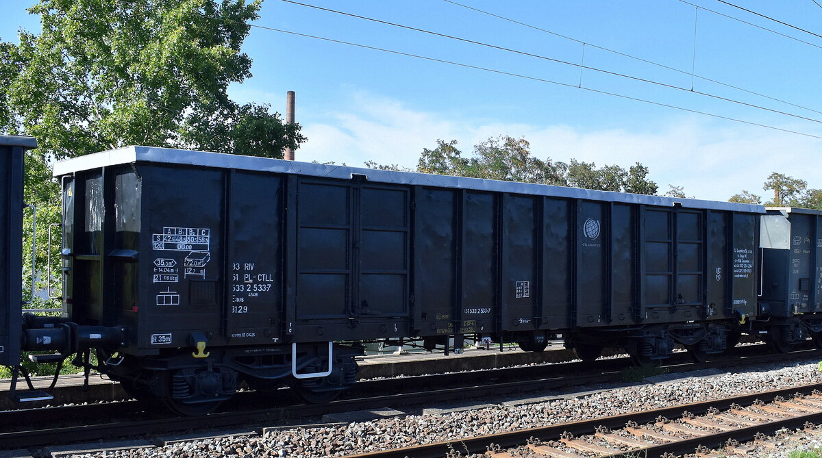 Polnischer Drehgestell-Hochborwagen vom Einsteller CTL Logistics Sp. z o.o. mit der Nr. 33 RIV 51 PL-CTLL 533 2 533-7 Eaus in einem Ganzzug am 11.08.25 Höhe Bahnhof Magdeburg-Neustadt. Lothar Stöckmann