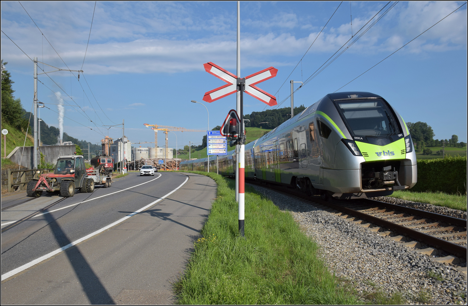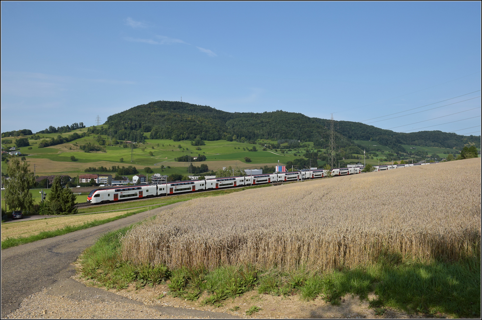 Der Knutsch geht immer heftiger weiter. Mit RABe 512 043 und RABe 512 040 sind wir schon bei den höheren Nummern der Serie angekommen. Frick, August 2025. km0