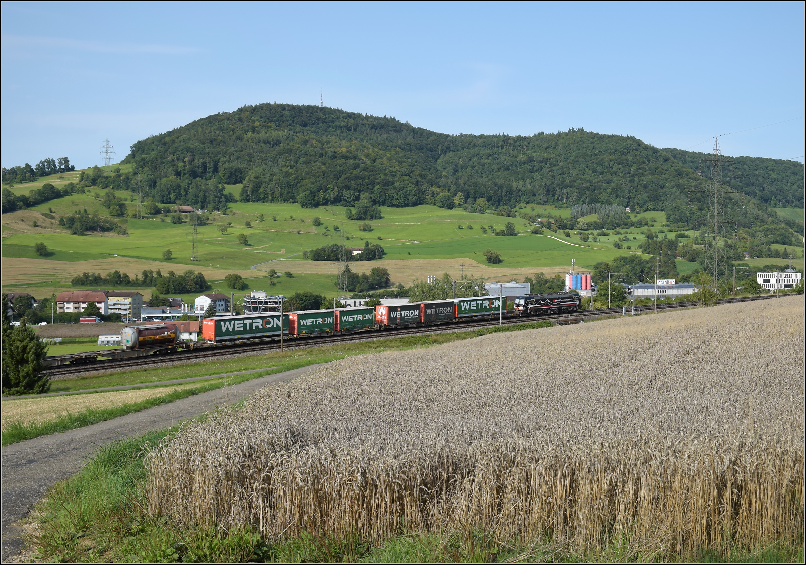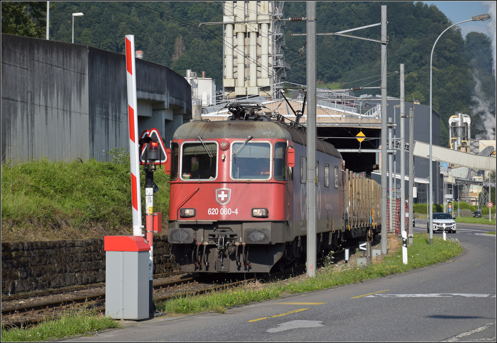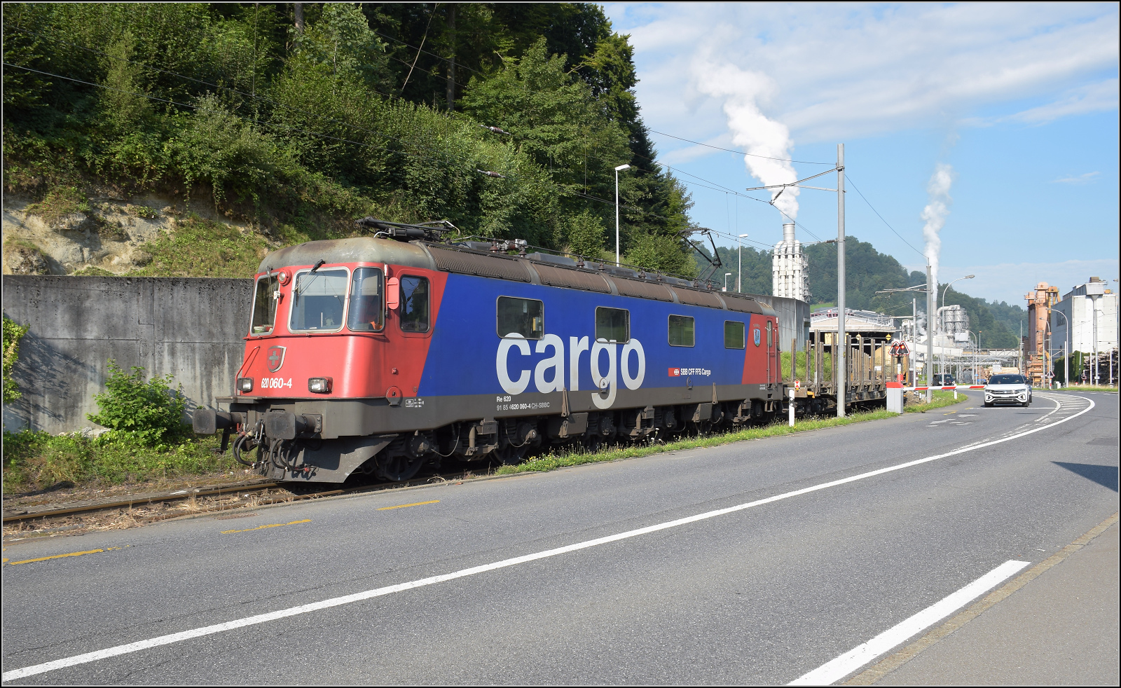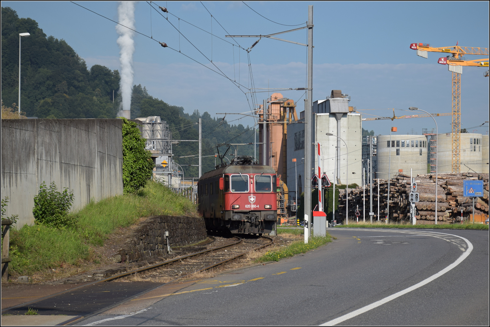 Re 6/6 11660 'Tavannes' fährt vom Gleisanschluss der Krono AG zum Bahnhof Menznau aus, wirklich Zufall im richtigen Moment vorbeizufahren. August 2025. km0