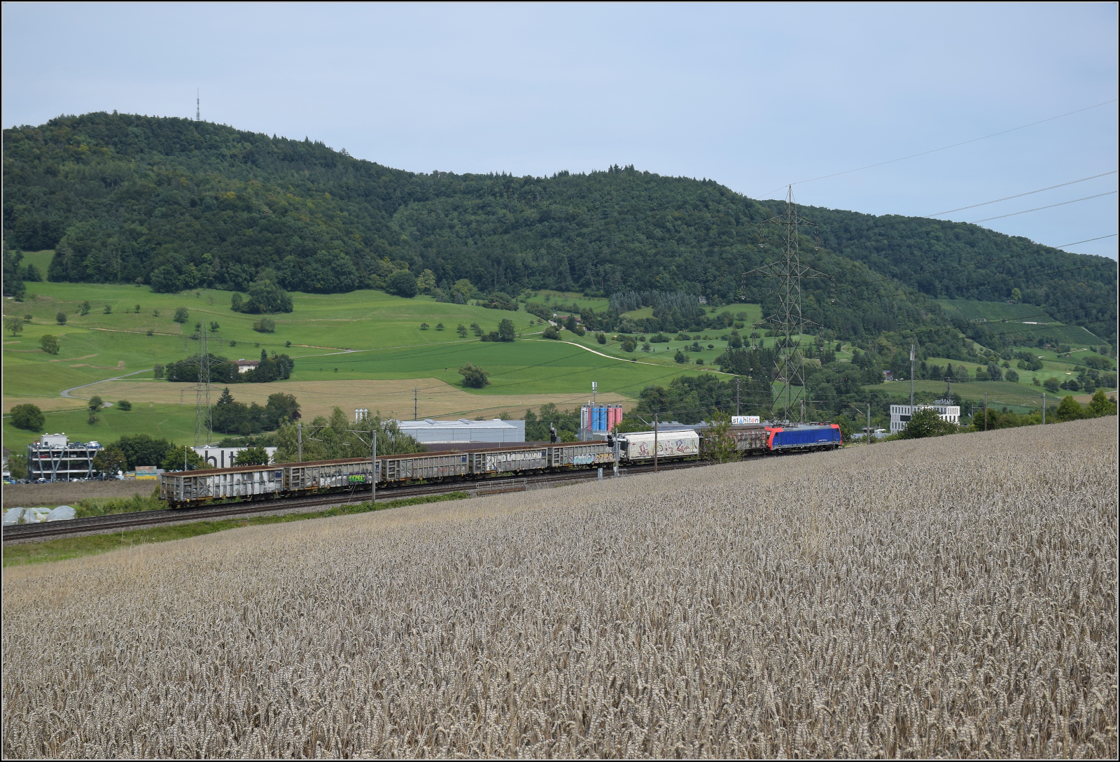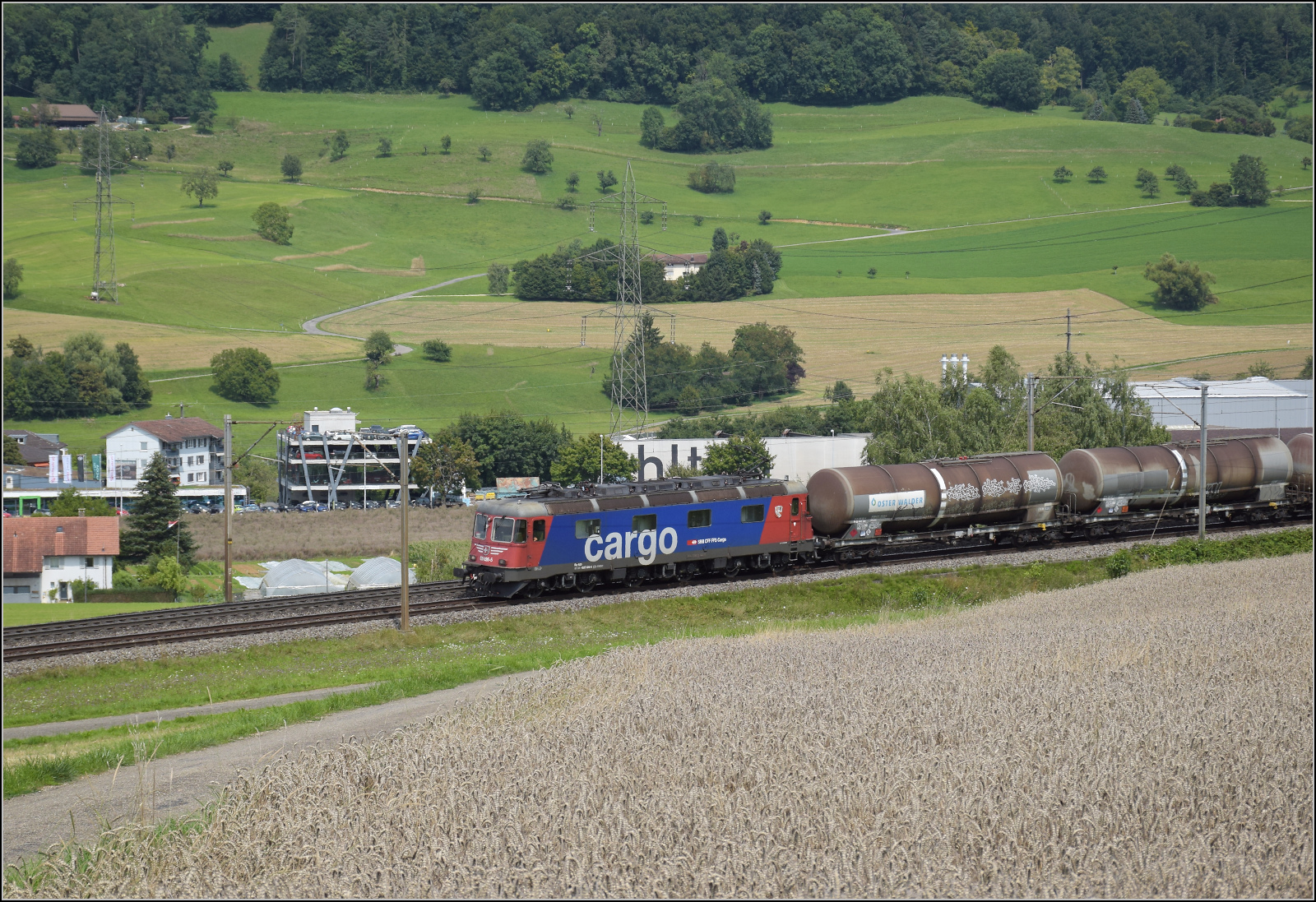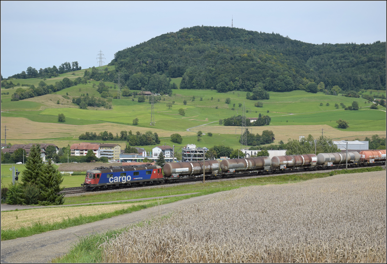 DB Cargo AG, Mainz [D] mit ihrer Vectron "193 562" [NVR-Nummer: 91 80 6193 562-6 D-DB] und einem gemischten Güterzug am 12.08.25 Höhe Bahnhof Saarmund. Lothar Stöckmann