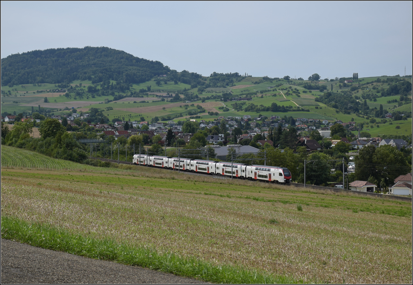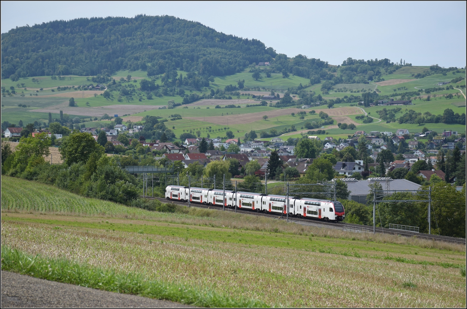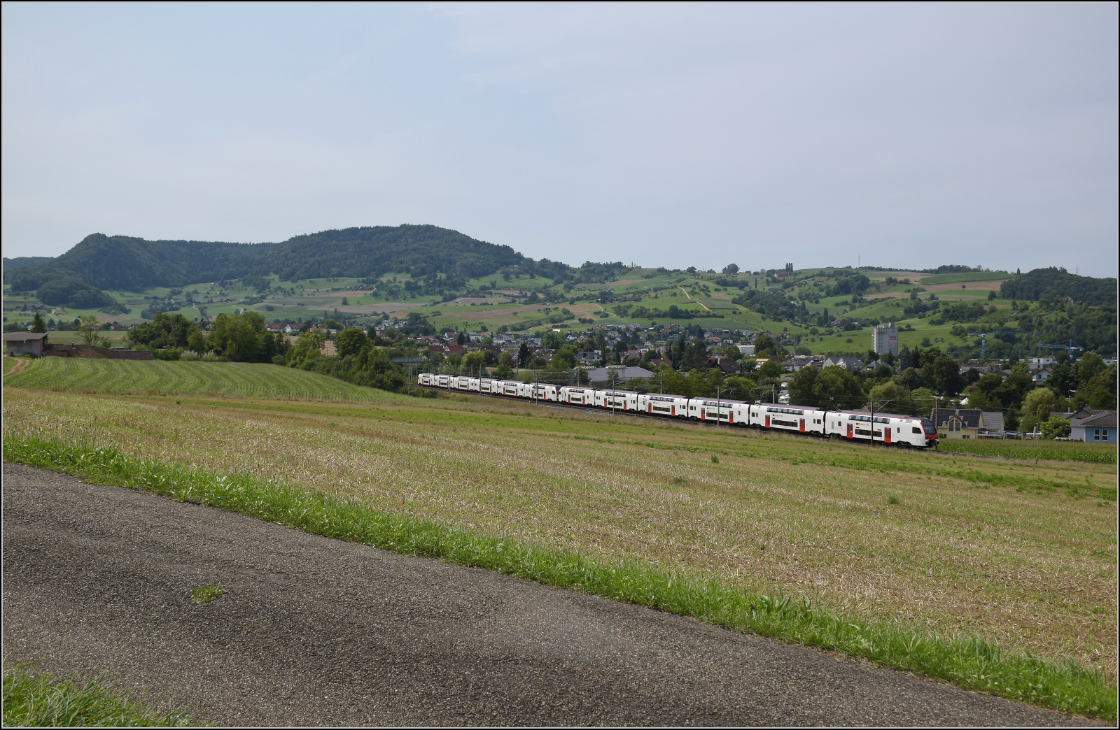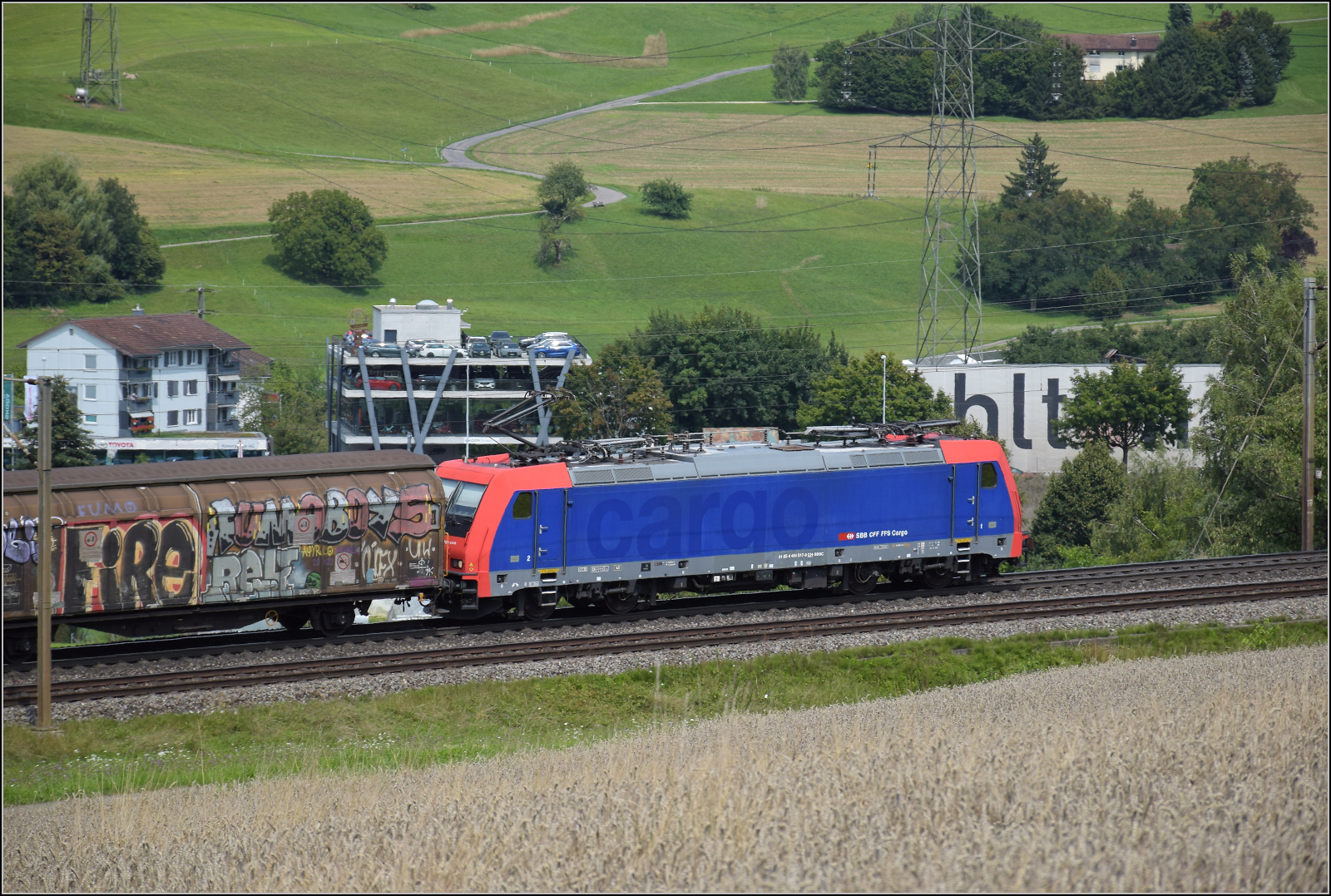 DB Cargo AG, Mainz [D] mit ihrer Vectron "193 562" [NVR-Nummer: 91 80 6193 562-6 D-DB] und einem gemischten Güterzug am 12.08.25 Höhe Bahnhof Saarmund. Lothar Stöckmann
