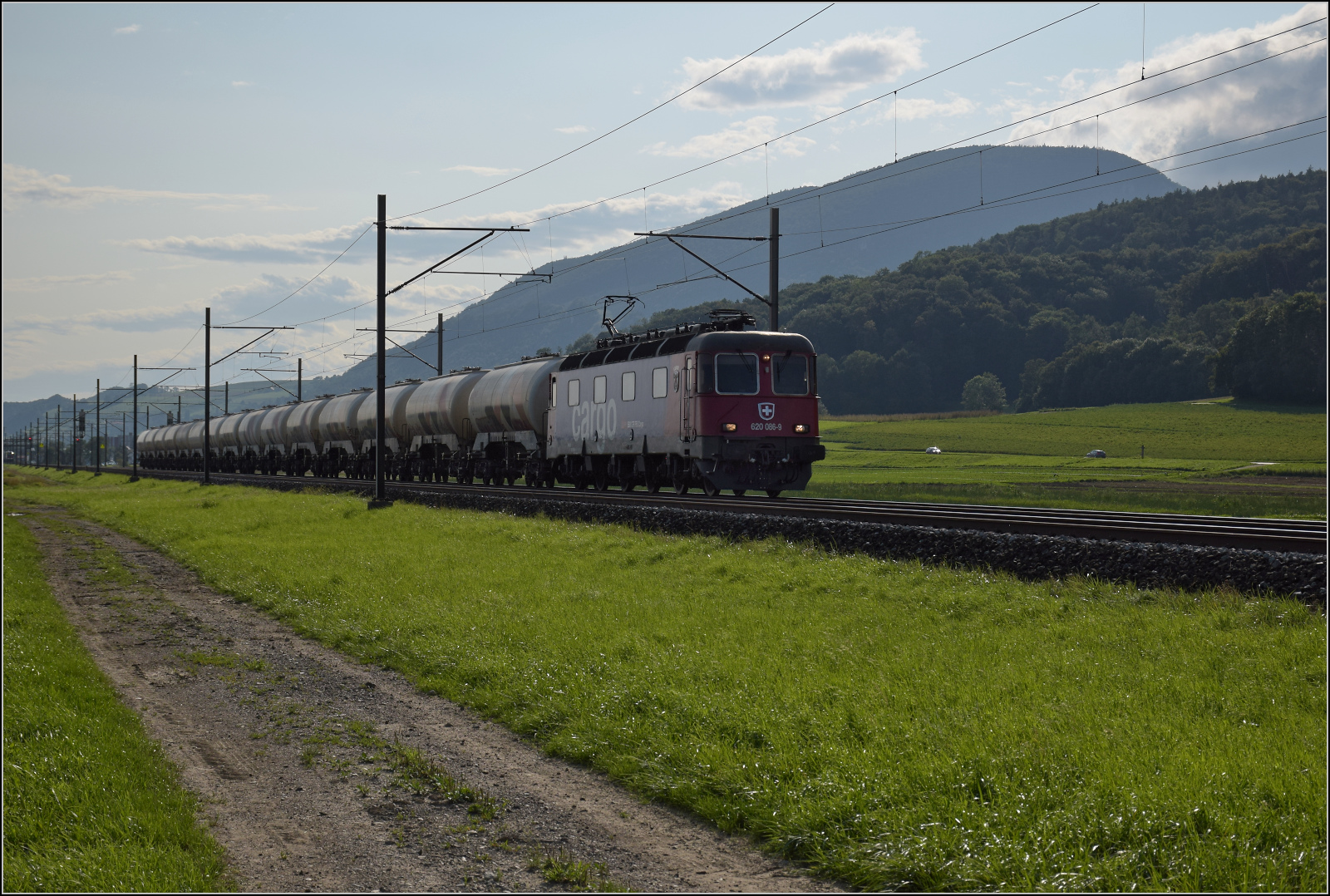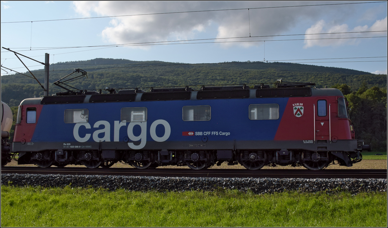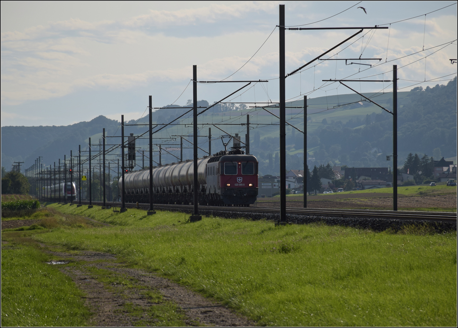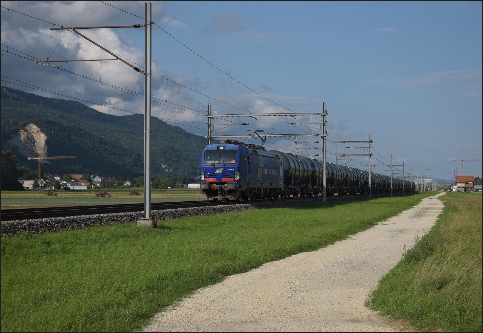 Feindliche Übernahme der Postzüge durch die neuen geleasten Vectronen. 193 074 der SBB Cargo mit dem Postzug bei Neumatten, Oberbuchsiten. August 2025. km0