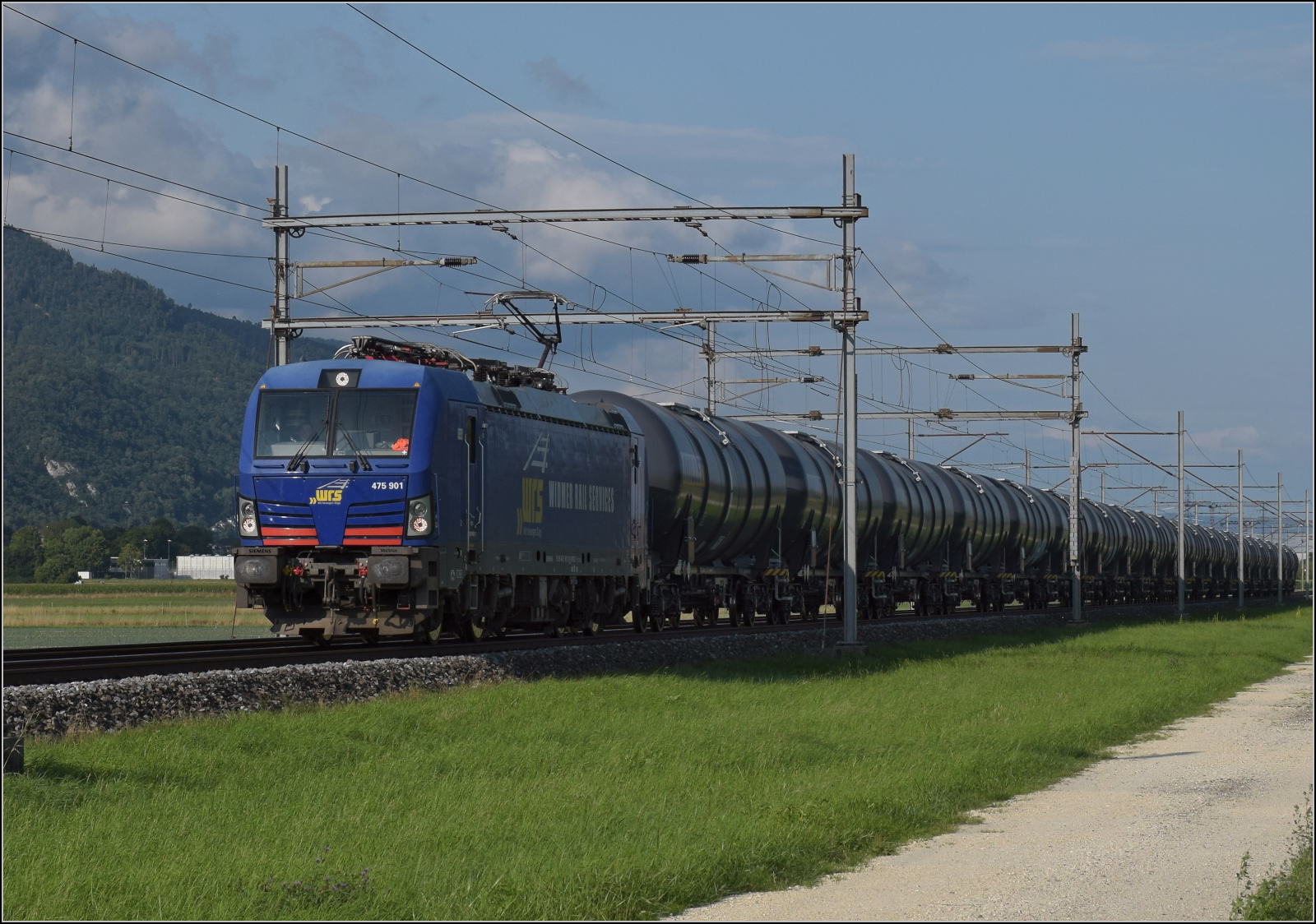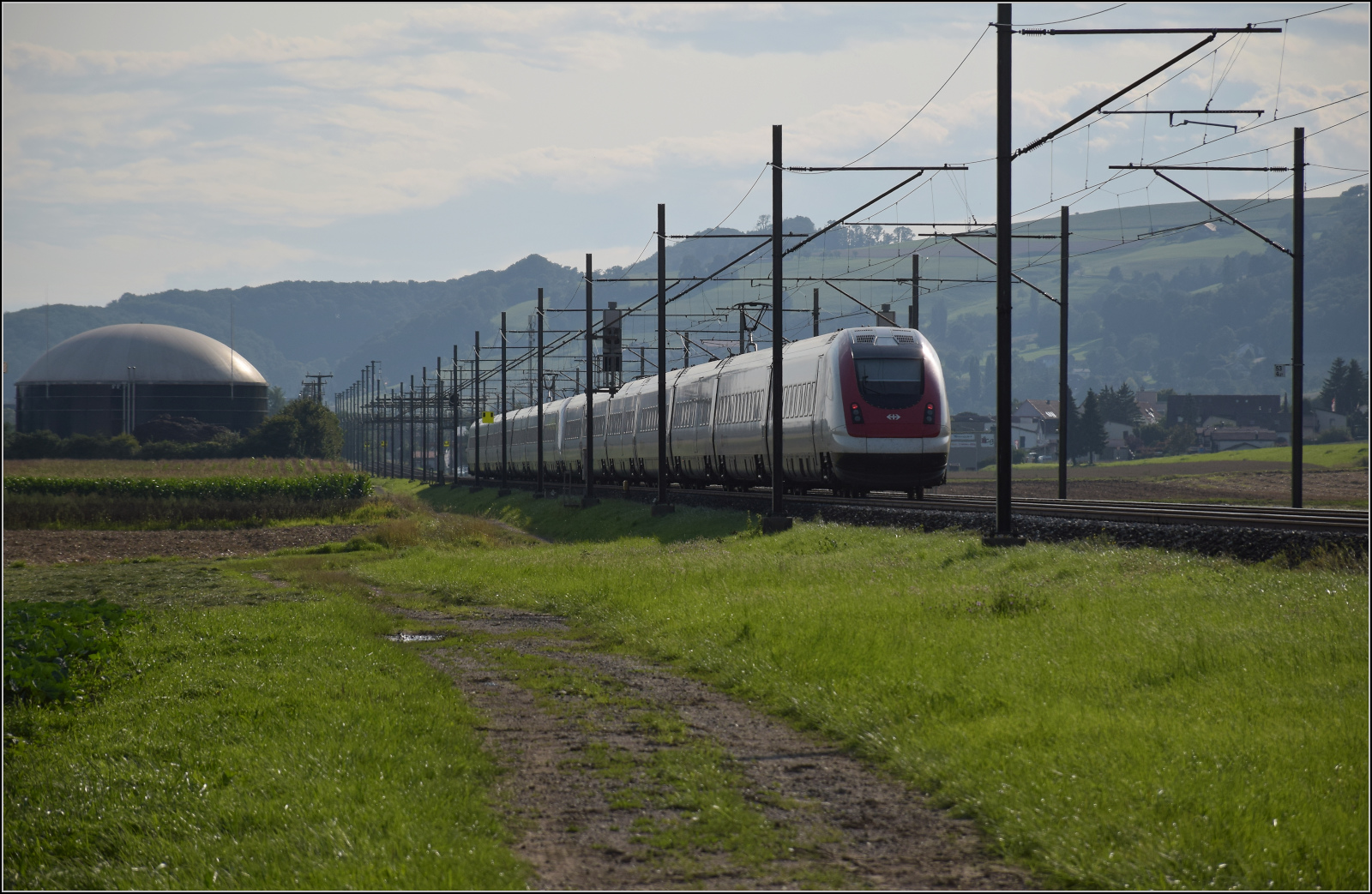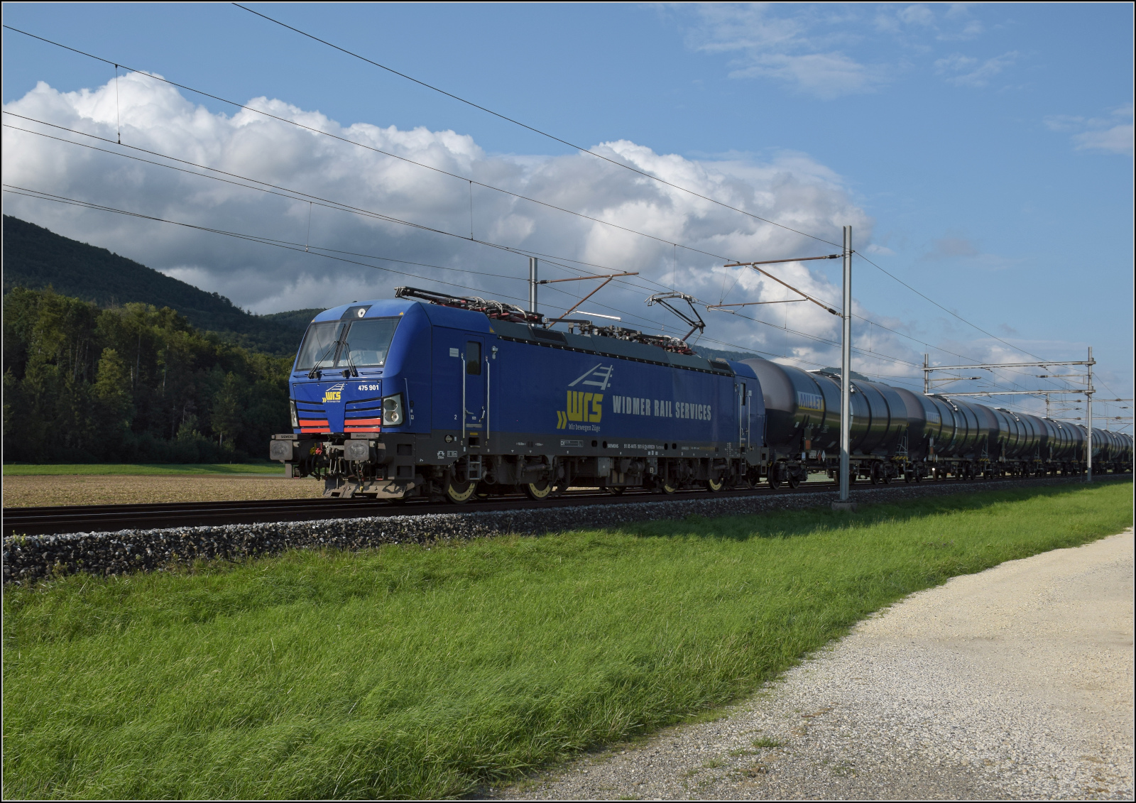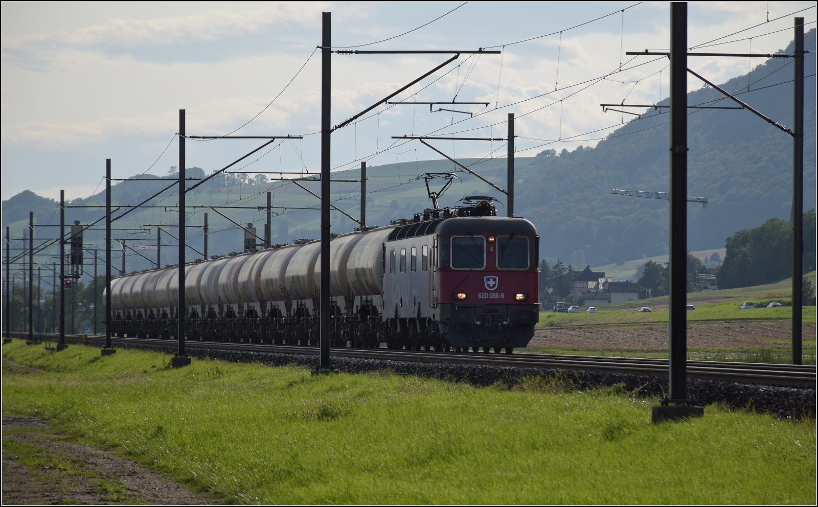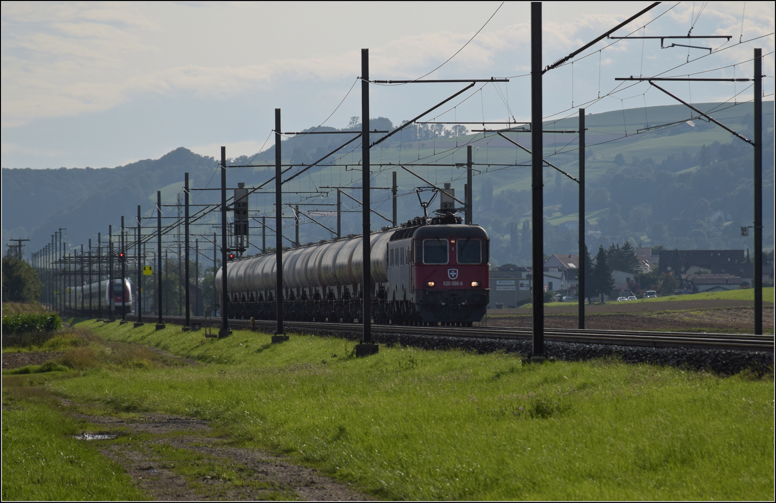 Feindliche Übernahme der Postzüge durch die neuen geleasten Vectronen. 193 074 der SBB Cargo mit dem Postzug bei Neumatten, Oberbuchsiten. August 2025. km0