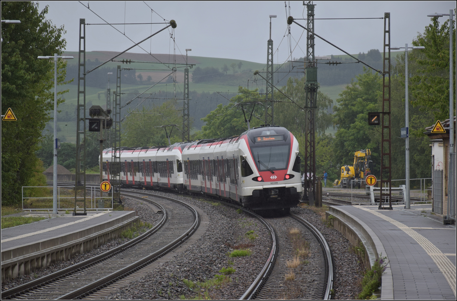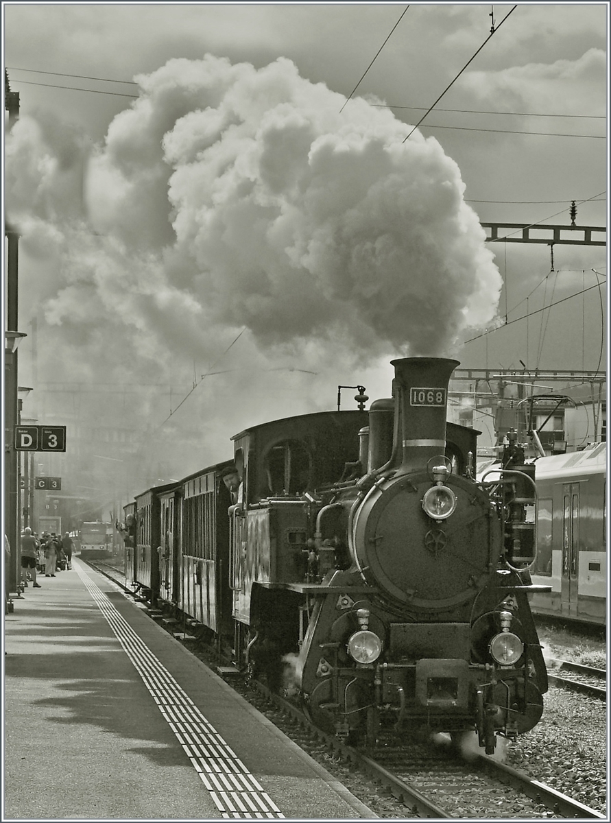 Die SBB Brünigbahnlok HG 3/3 1068 verlässt mit ihrem Extrazug Meiringen in Richtung Brünig Hasliberg. Die HG 3/3 1068 wurde von der SLM 1926 gebaut und war die letzte an die SBB gelieferte Dampflok.