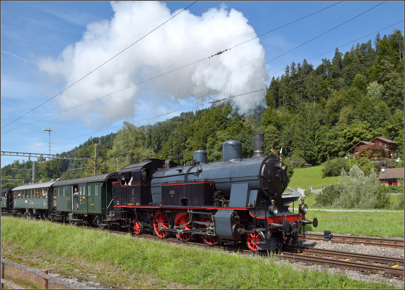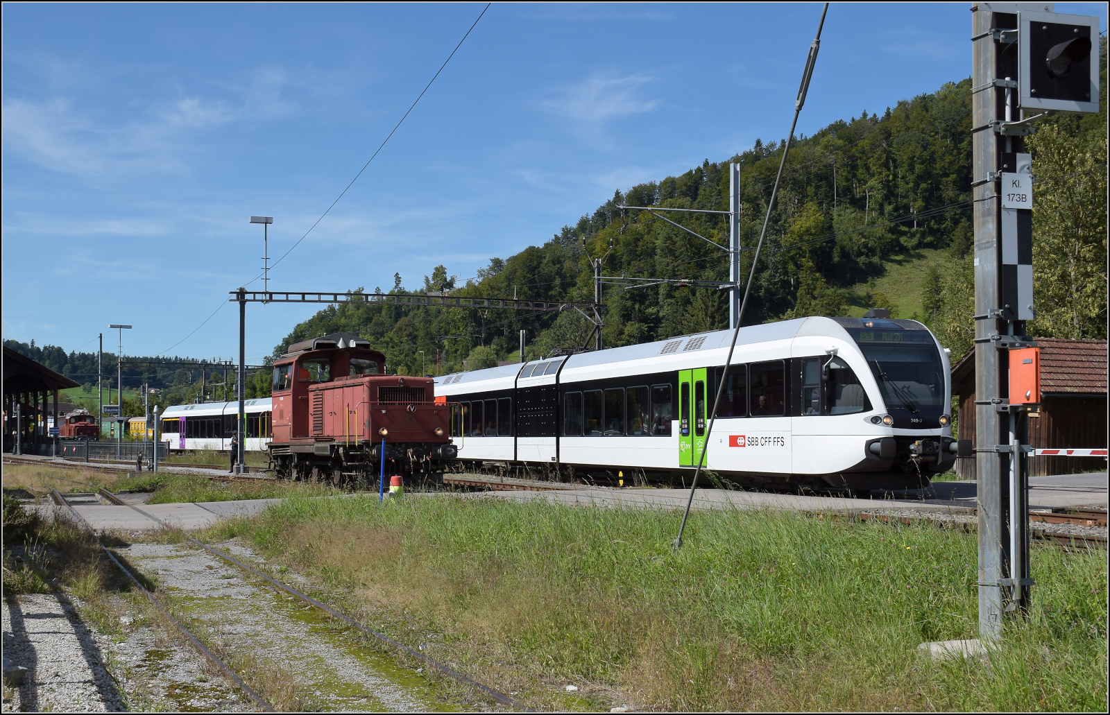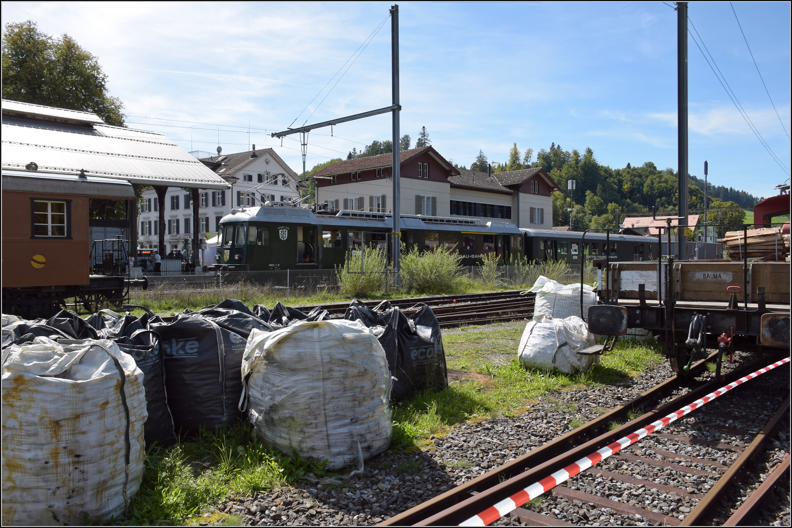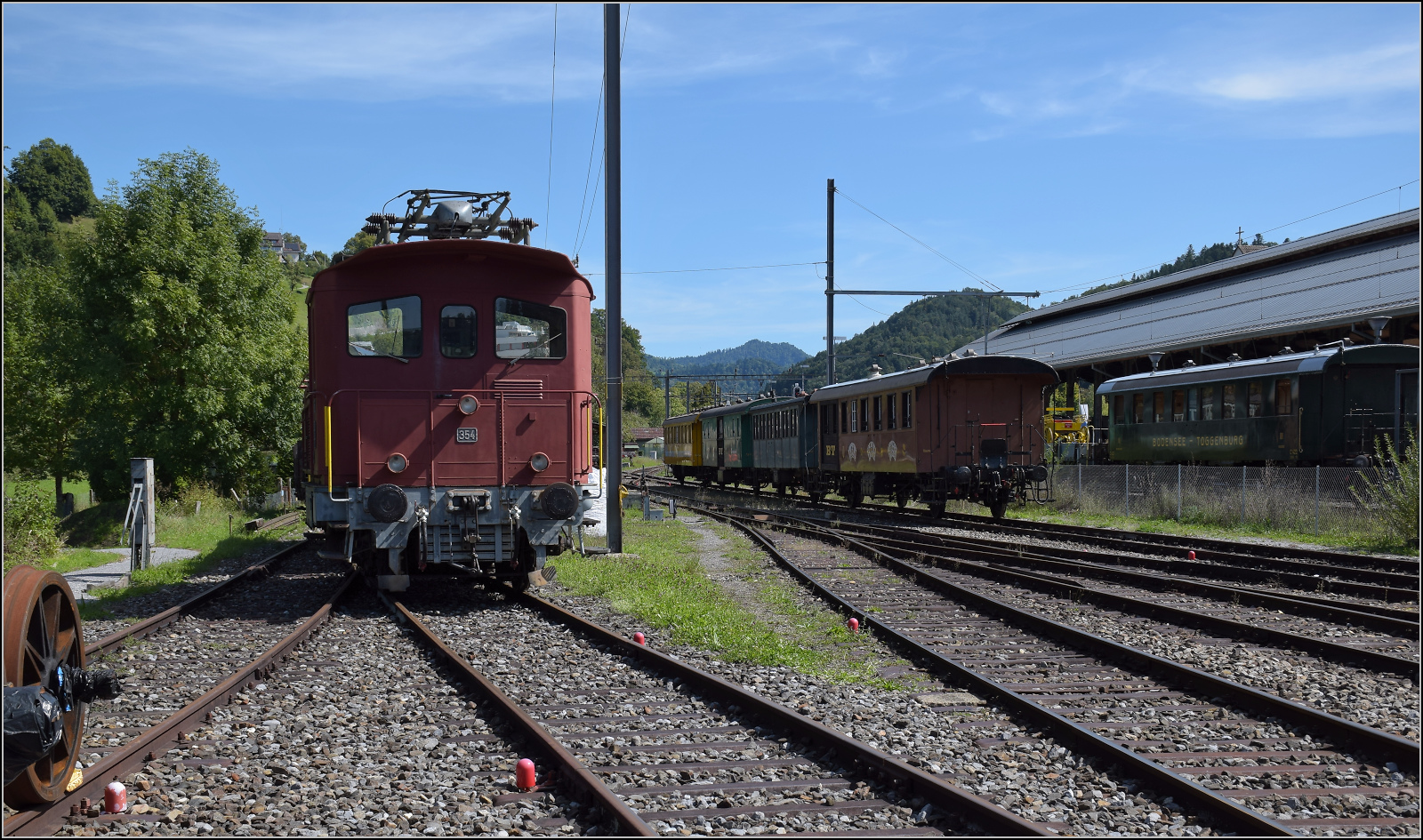 Tem III 354 hat an diesem Festtag eine Auszeit. Denn mit den beiden Em 3/3 hat er Verstärkung bekommen. Bauma, September 2025. km0