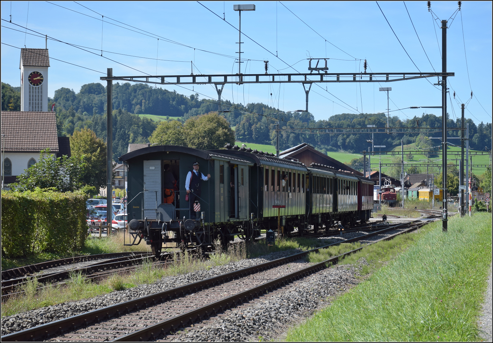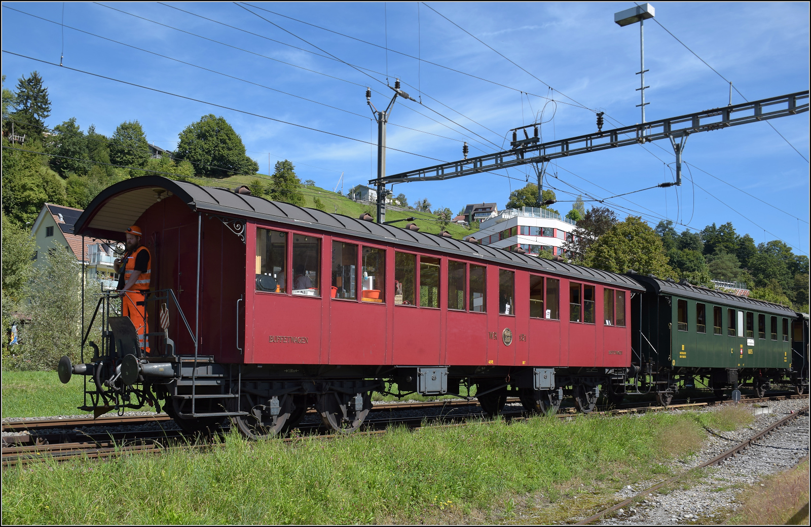 Der Wagen BC 203 wurde 1910 durch die damals noch junge Bodensee-Toggenburg-Bahn von der Waggonfabrik Schlieren AG beschafft. 1978 wurde er von der BT umgebaut und in den ersten Museumszug der Schweiz als Jass-Wagen integriert. 2012 kam er zu Dampflokiclub Herisau und 2015 zum DVZO. Nach heutigen Massstäben ist ein solcher Umbau zwar eine historische Katastrophe, aber durch viele Fernsehübertragungen war der Wagen in der ganzen Schweiz bekannt und nicht zuletzt war der Kitschumbau auch seine Rettung vor dem Schneidbrenner. Bauma, September 2025. km0