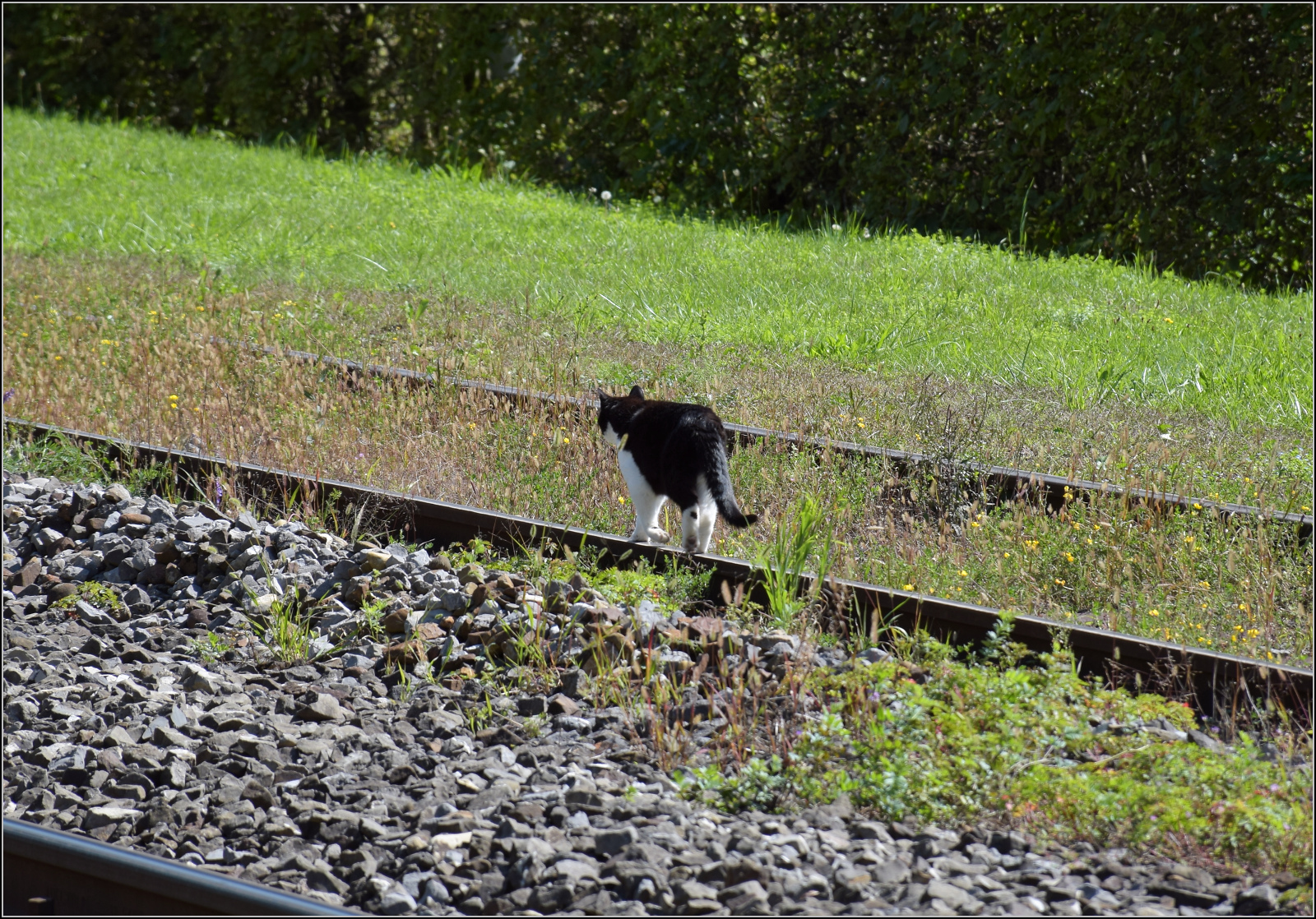 Der BT-Habersack Eb 3/5 9 fährt in Bauma nach Hinwil ab. Immerhin ist der Bahnhof Bauma und das Gleis nebenan das Subjekt des Jubiläums. September 2025. km0