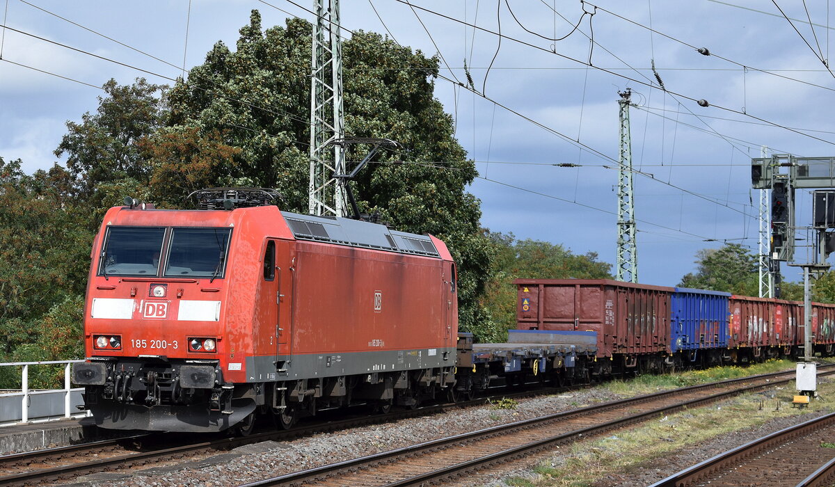 DB Cargo AG, Mainz [D] mit ihrer "185 200-3" [NVR-Nummer: 91 80 6185 200-3 D-DB] und einem gemischten Güterzug am 18.09.25 Höhe Bahnhof Magdeburg-Neustadt. Lothar Stöckmann