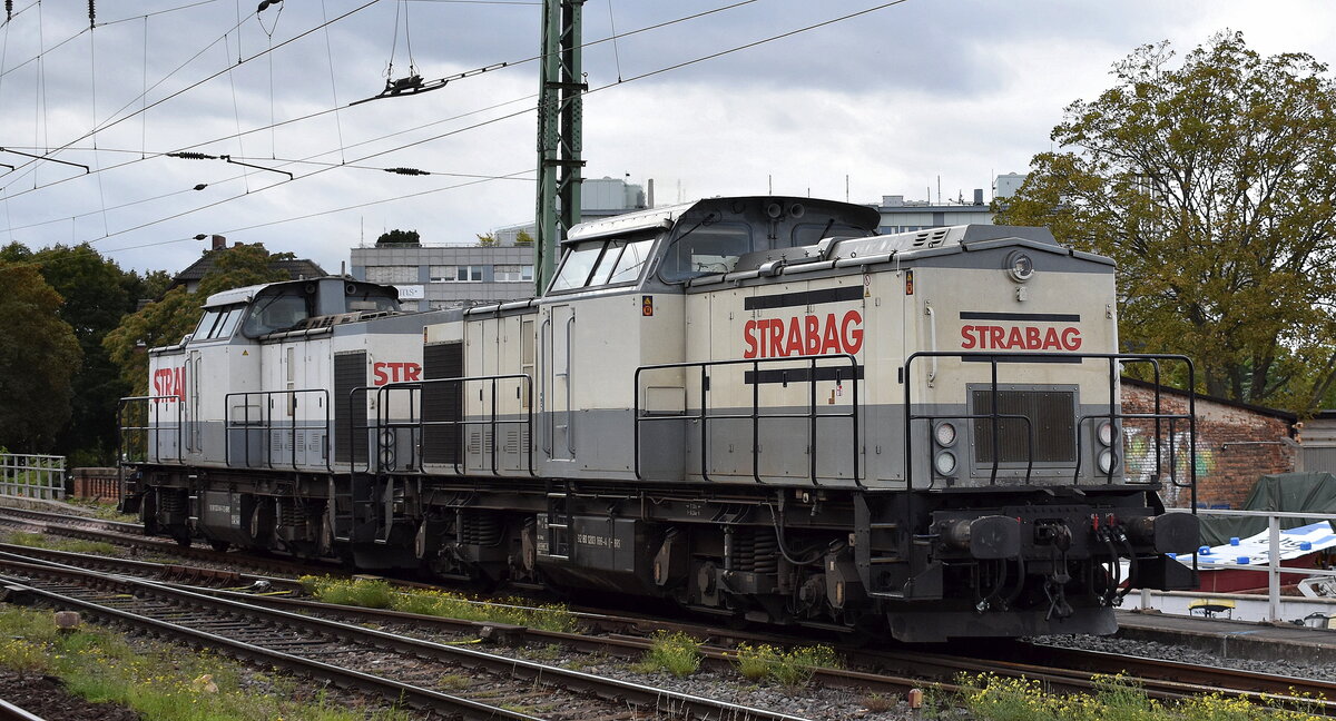 STRABAG BMTI Rail Service GmbH mit ihre beiden V 100 Loks "203 841-2" [NVR-Nummer: 92 80 1203 841-2 D-BRS] + "203 166-4" [NVR-Nummer: 92 80 1203 166-4 D-BRS] am 18.09.25 Höhe Bahnhof Magdeburg-Neustadt. Lothar Stöckmann